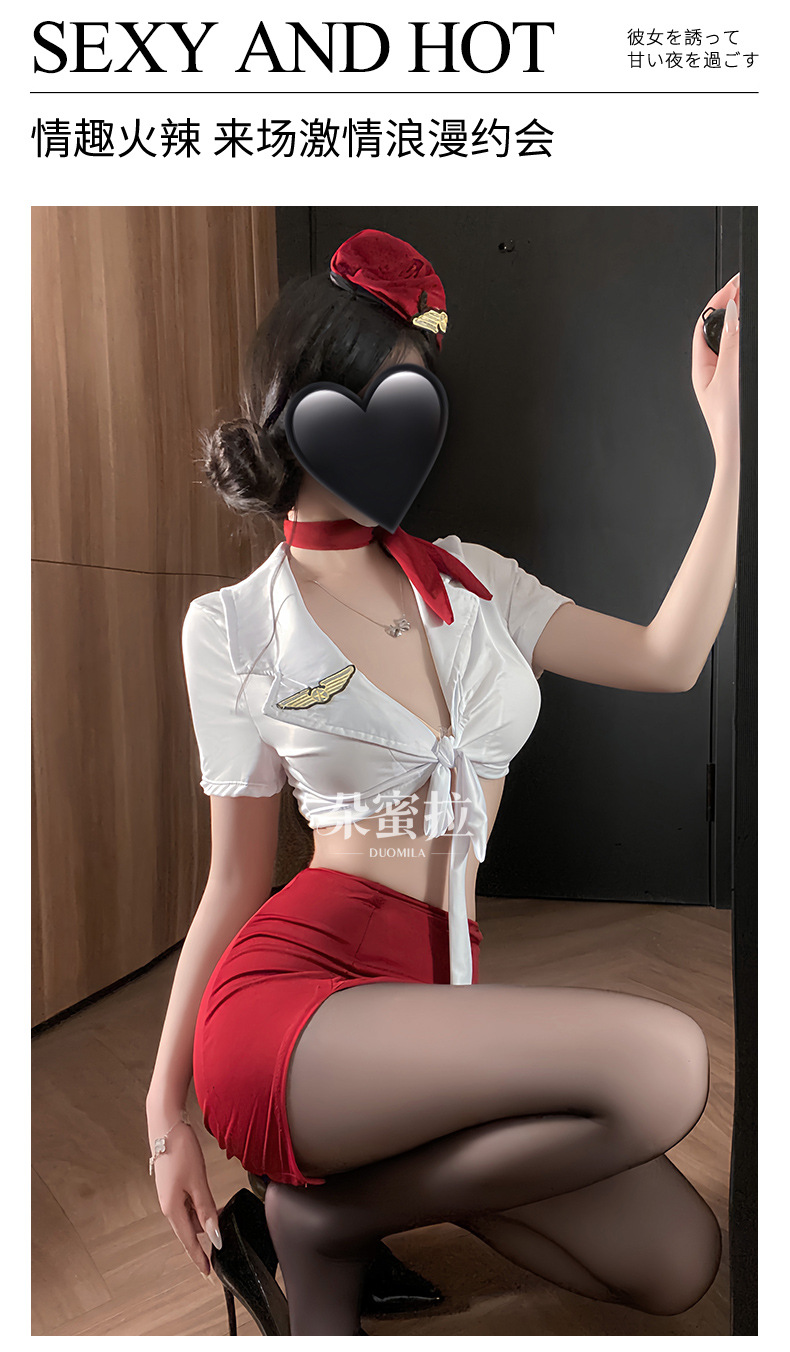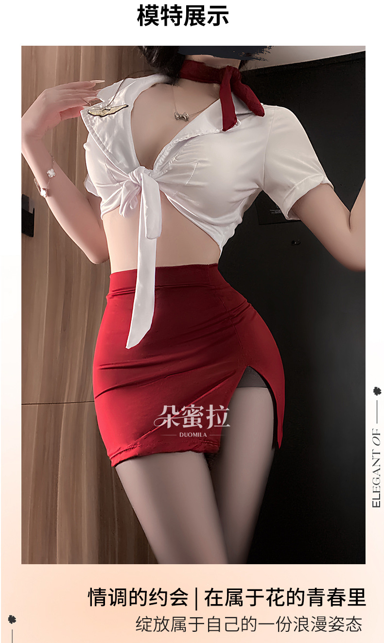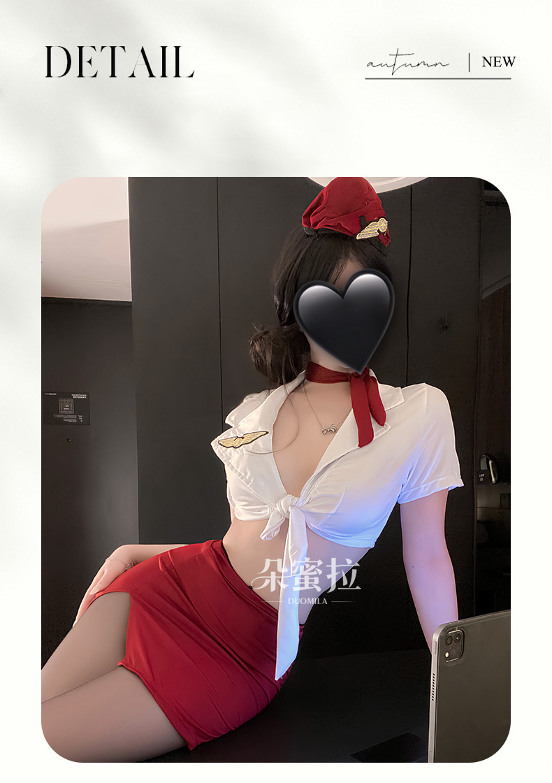 情趣内衣女纯欲空姐制服性感深V免脱套装小胸显大诱惑睡衣qqny