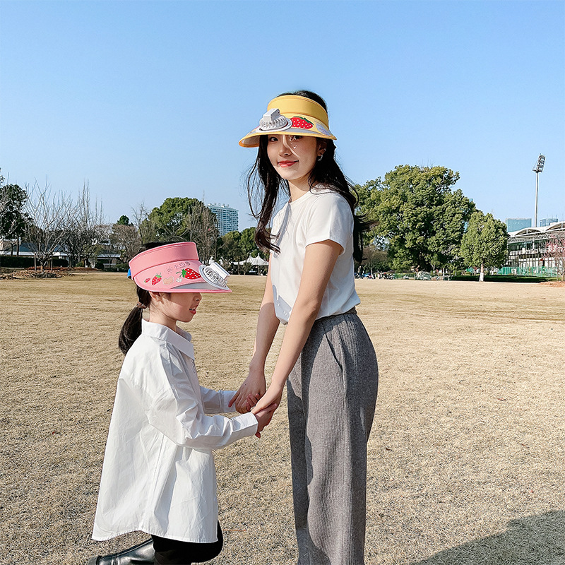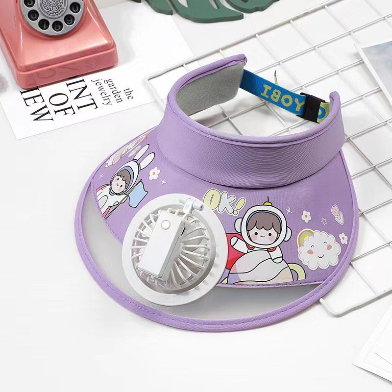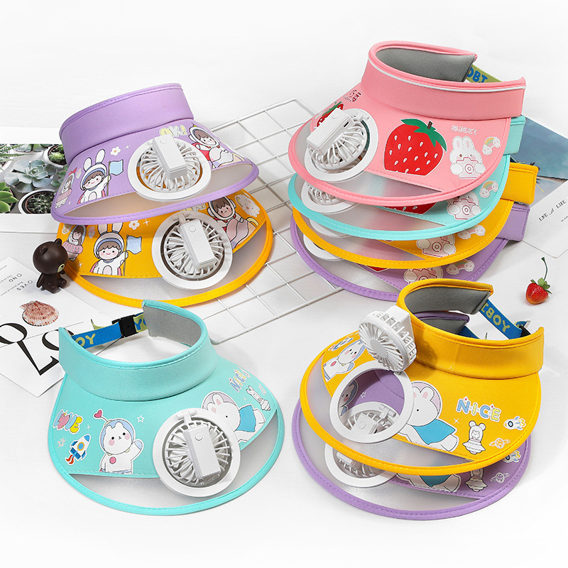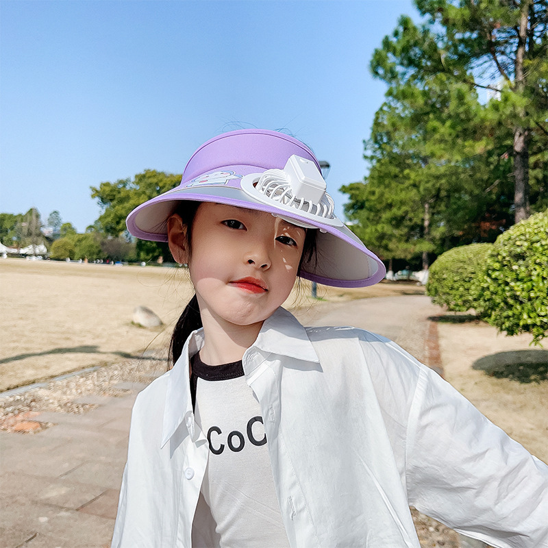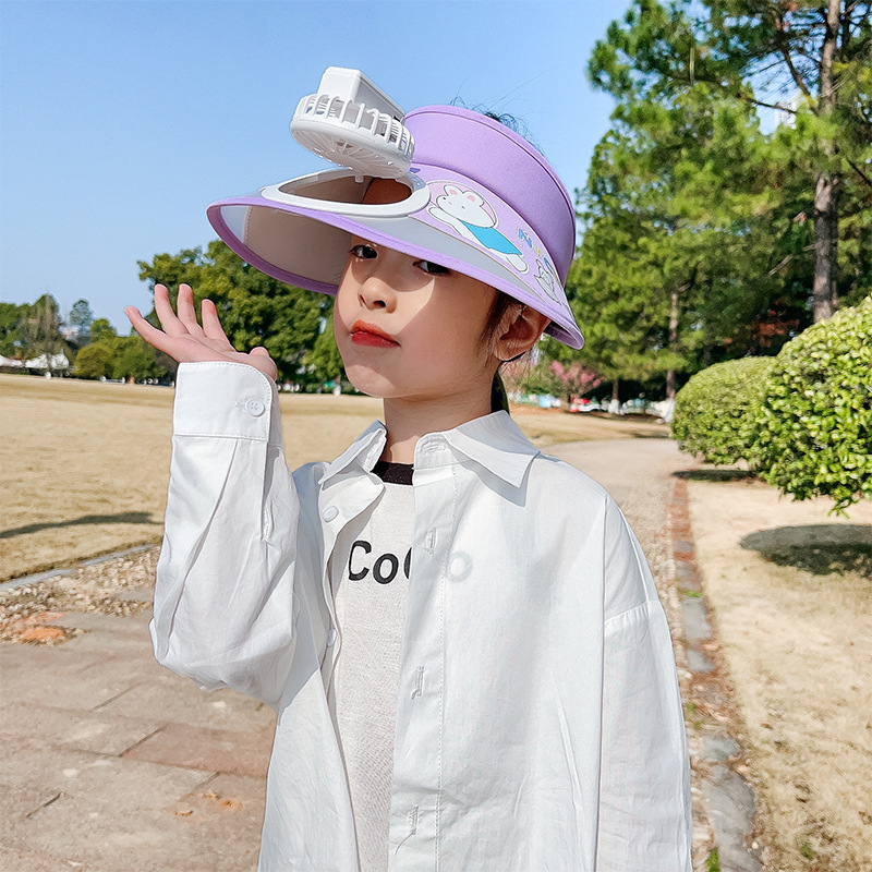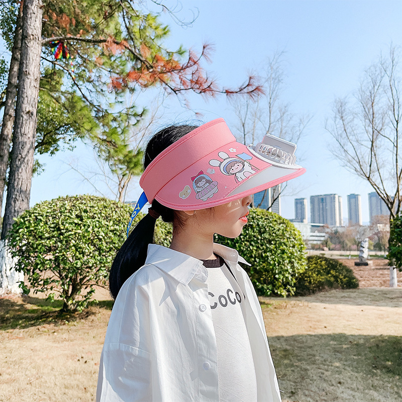 儿童帽子空顶夏季防晒帽带风扇夏季防紫外线宝宝遮阳帽男童女童