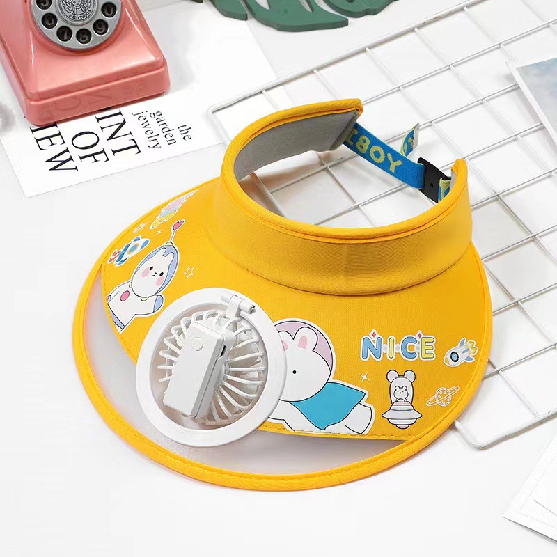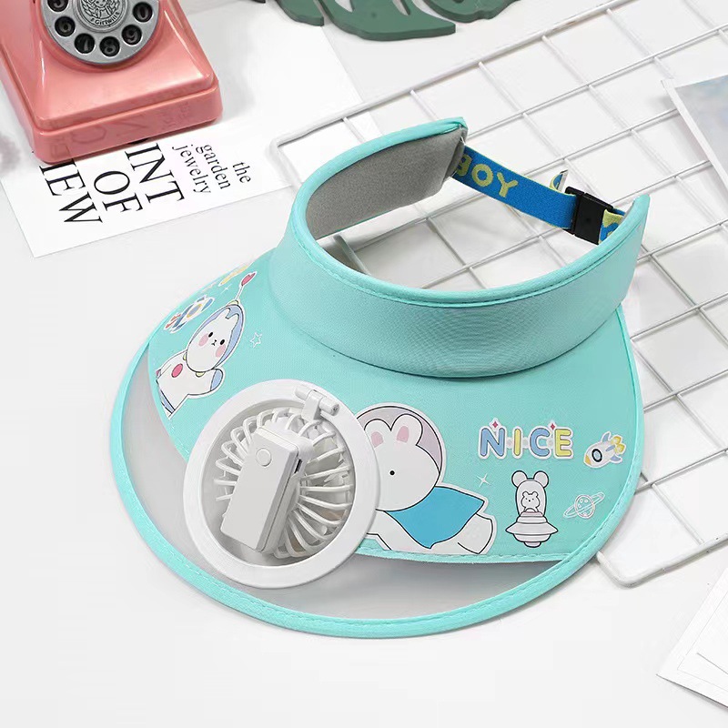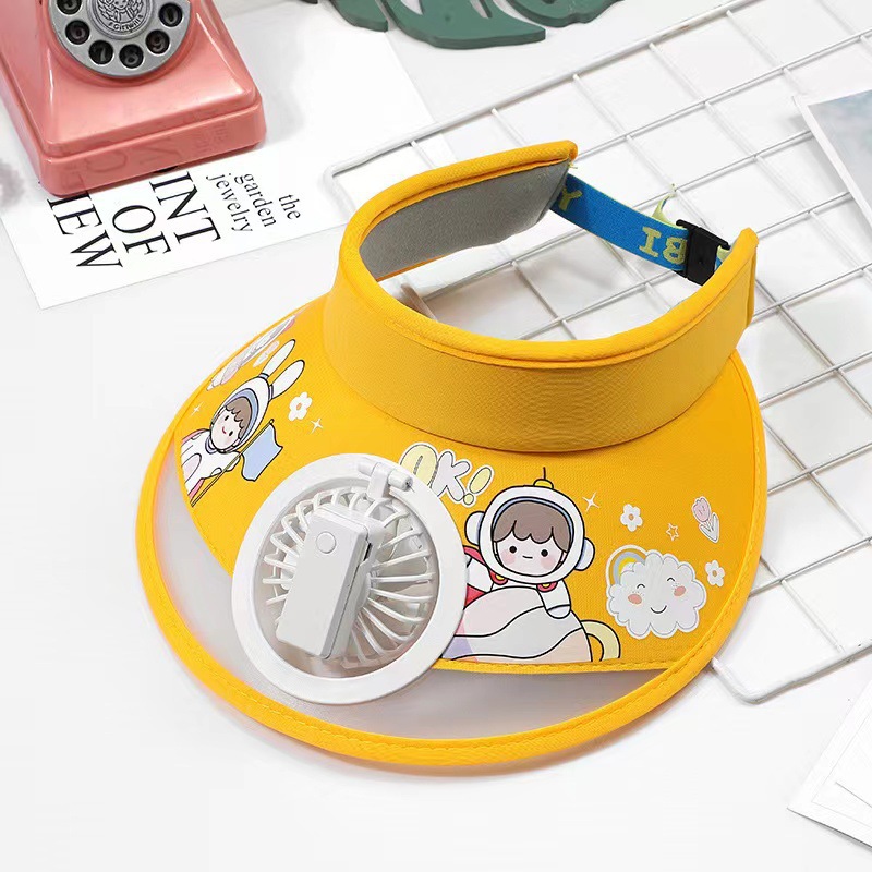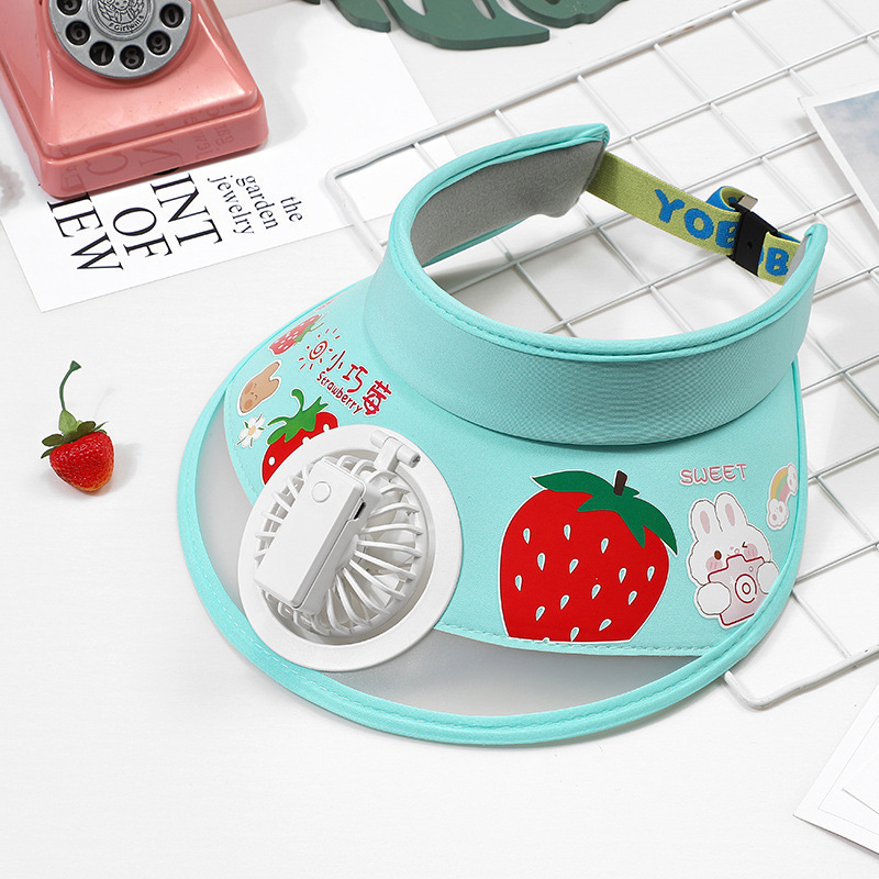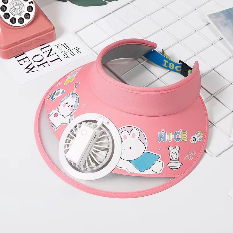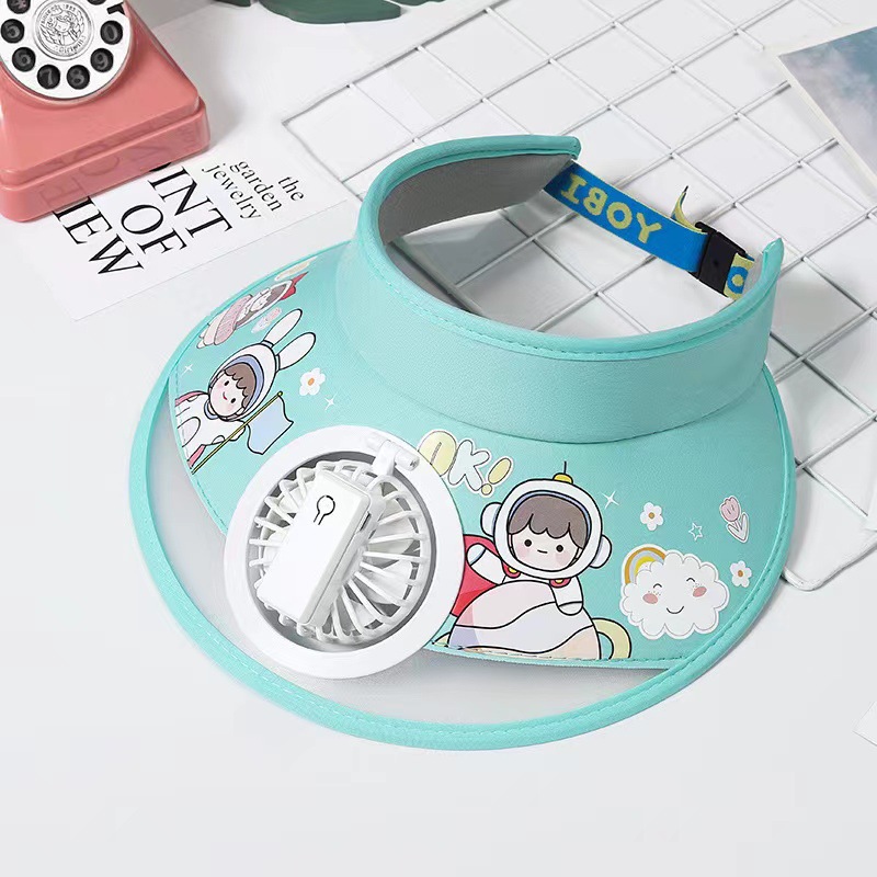 儿童帽子空顶夏季防晒帽带风扇夏季防紫外线宝宝遮阳帽男童女童