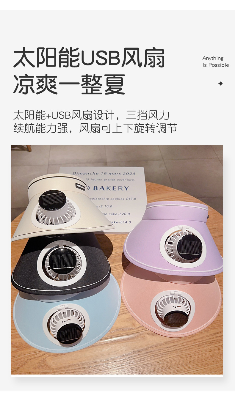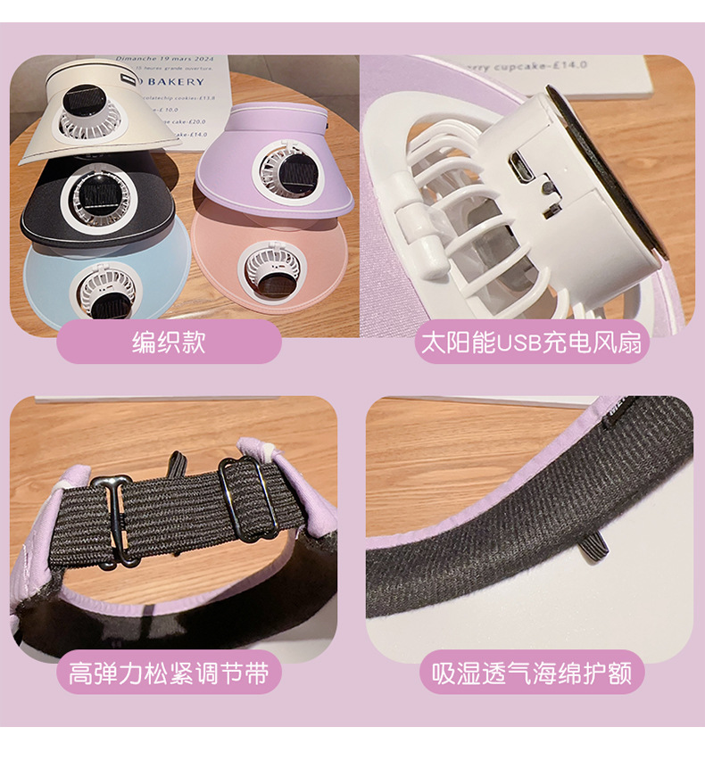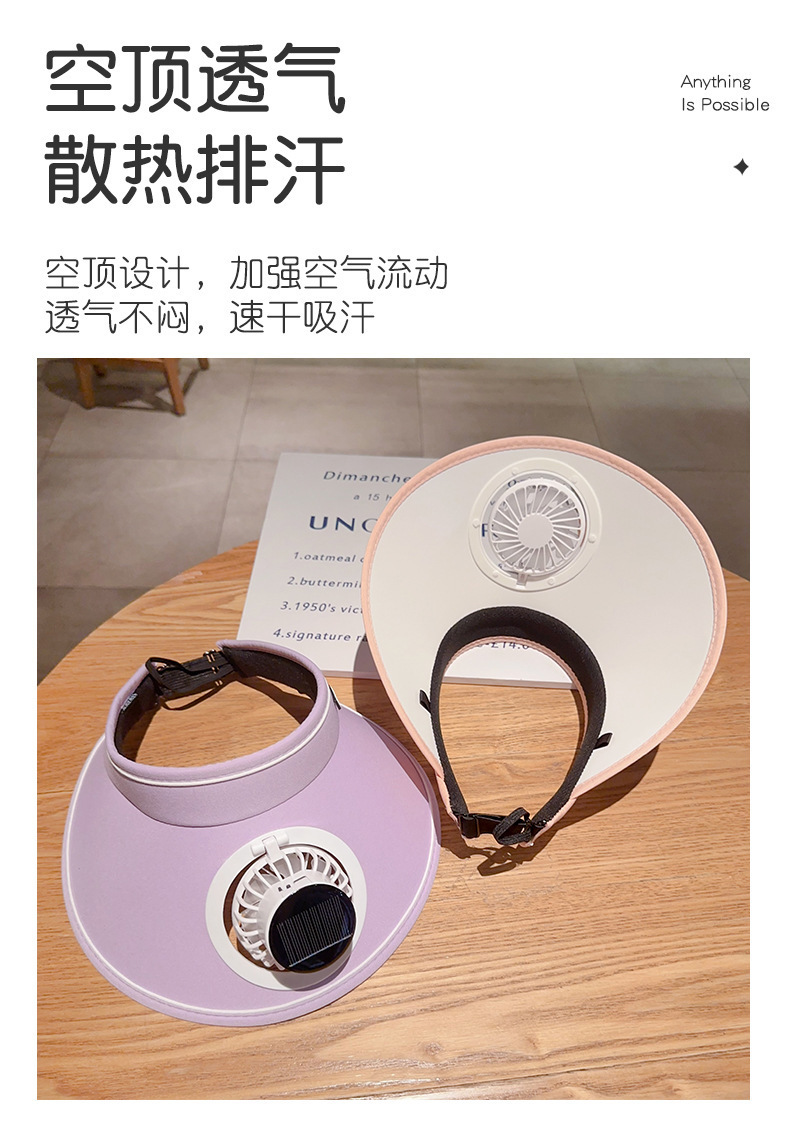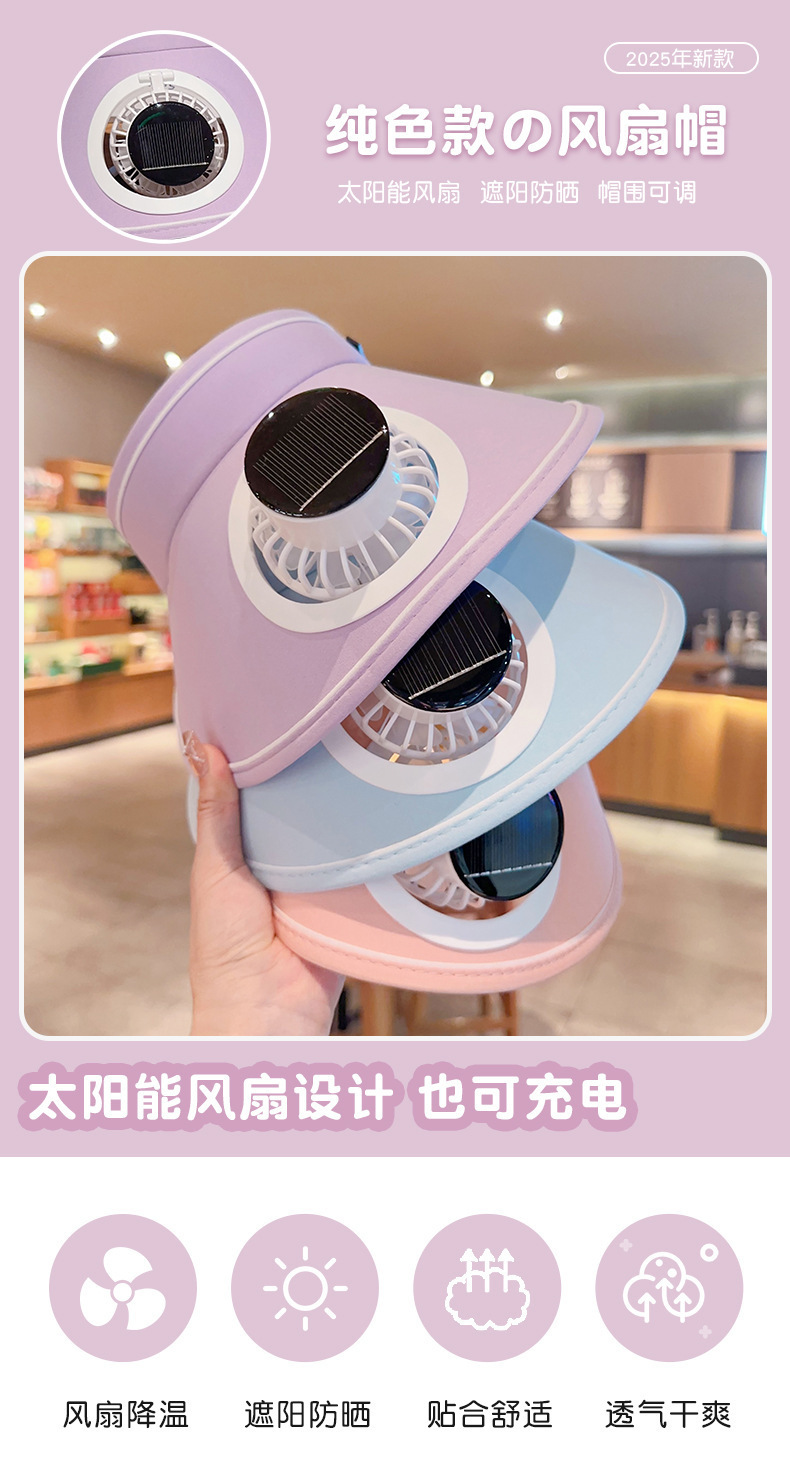 夏季新款风扇防晒太阳能帽子遮阳空顶充电太阳帽户外遮阳帽紫外线