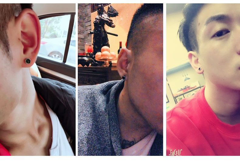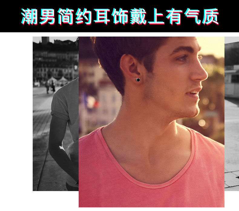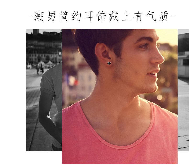潮男几何耳钉韩版单只时尚网红男士耳环简约百搭潮流个性小众耳饰