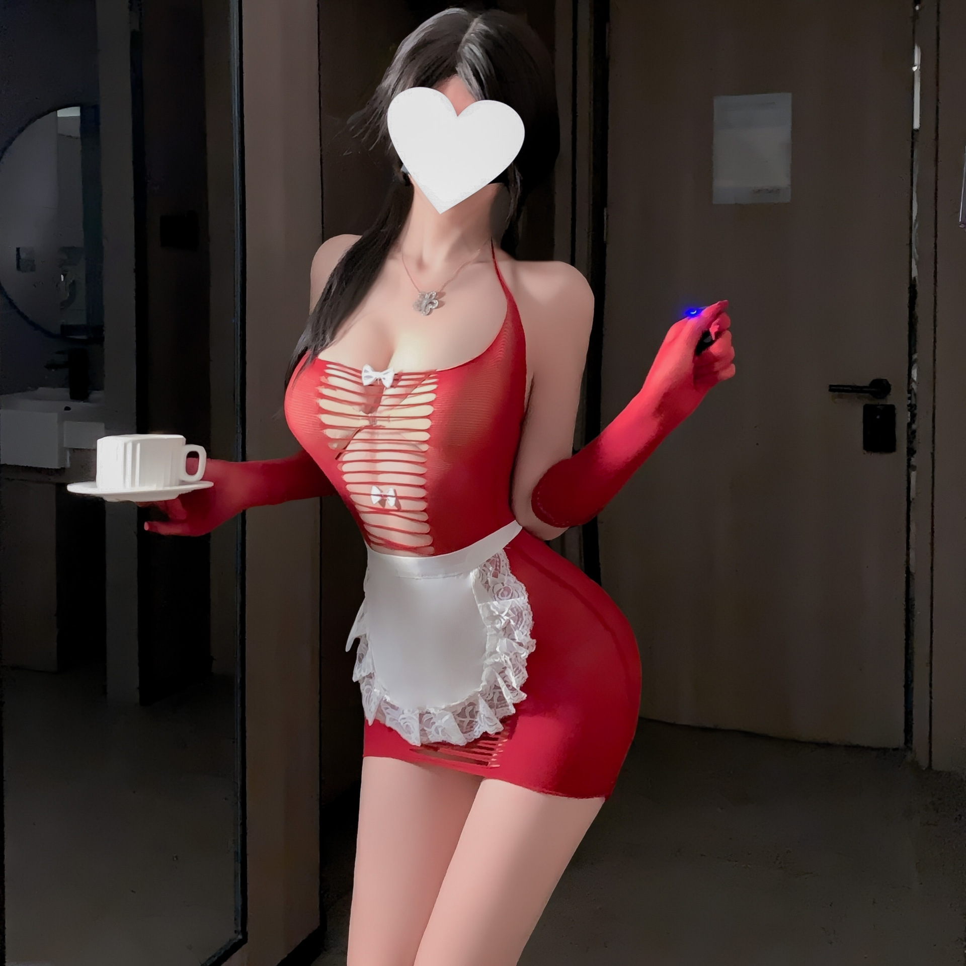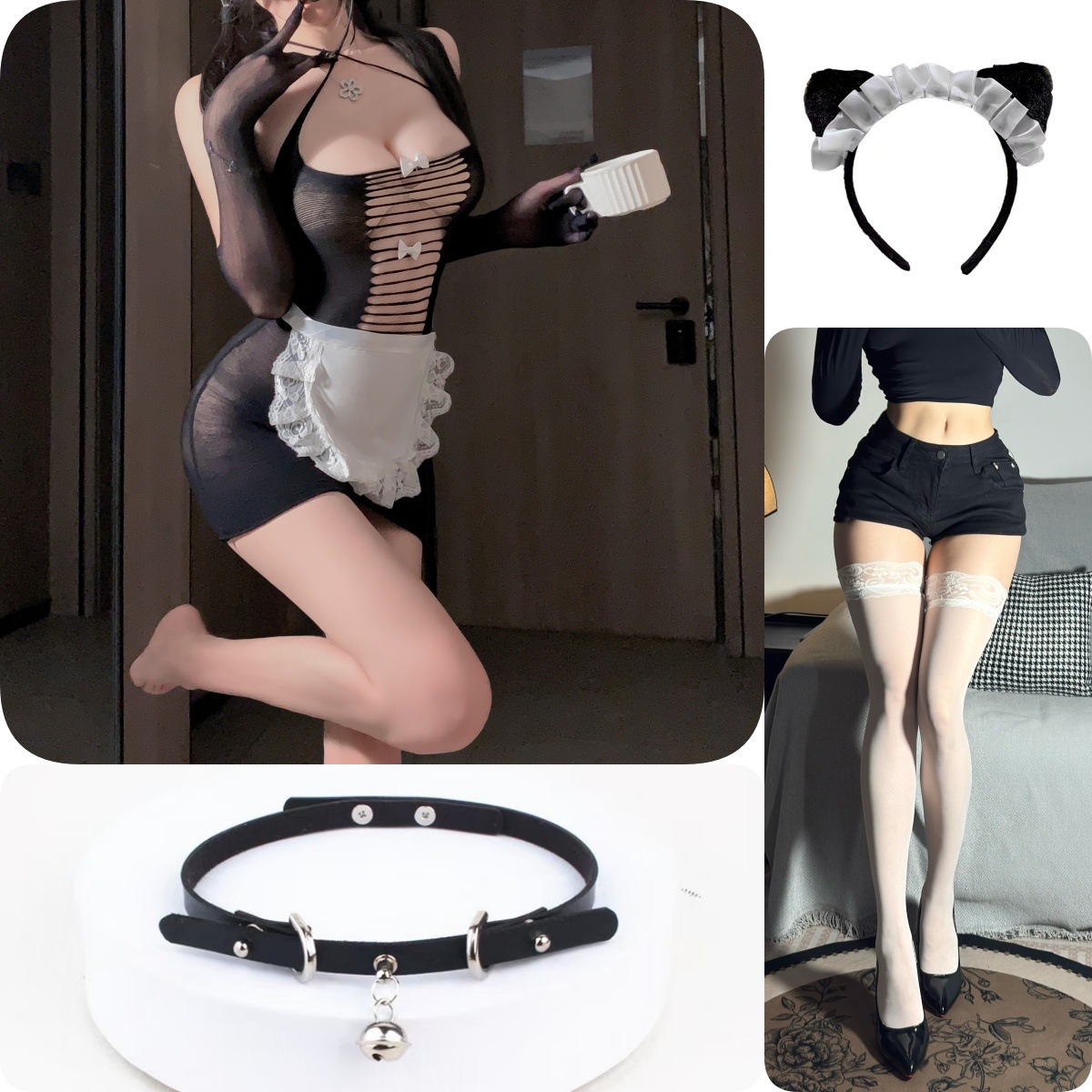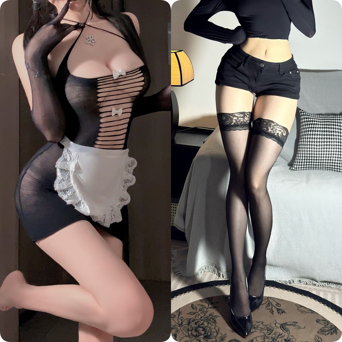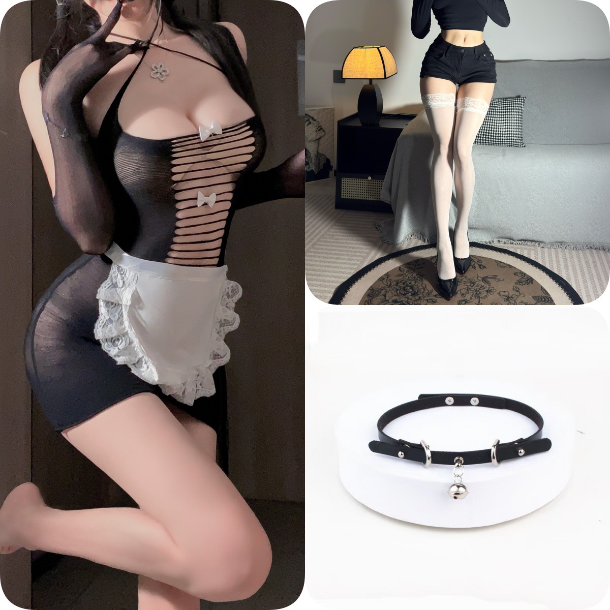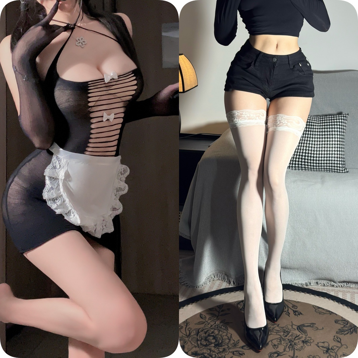 情趣内衣可撕娇俏露臀女仆网衣紫色韵味套装透视露胸调情制服诱惑