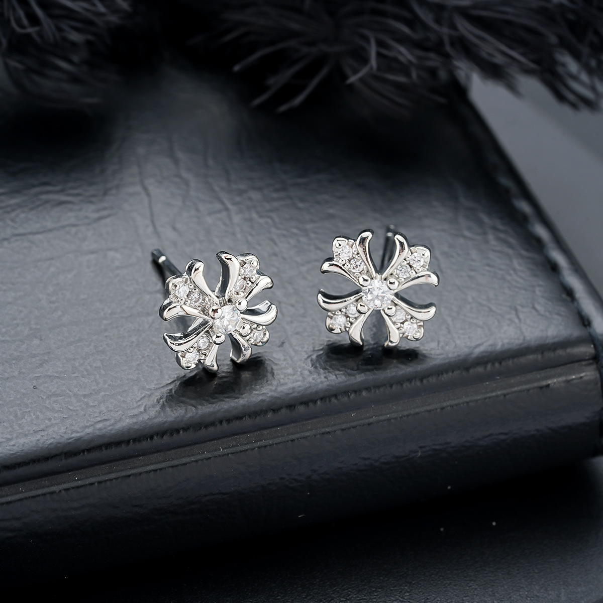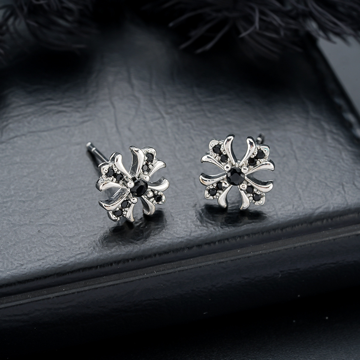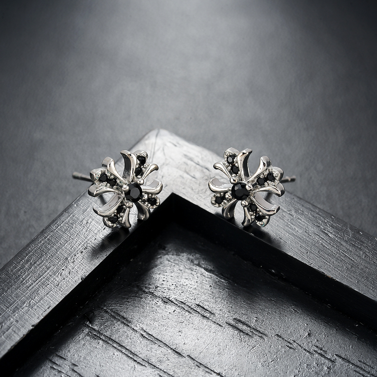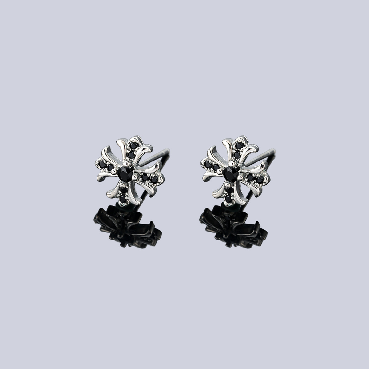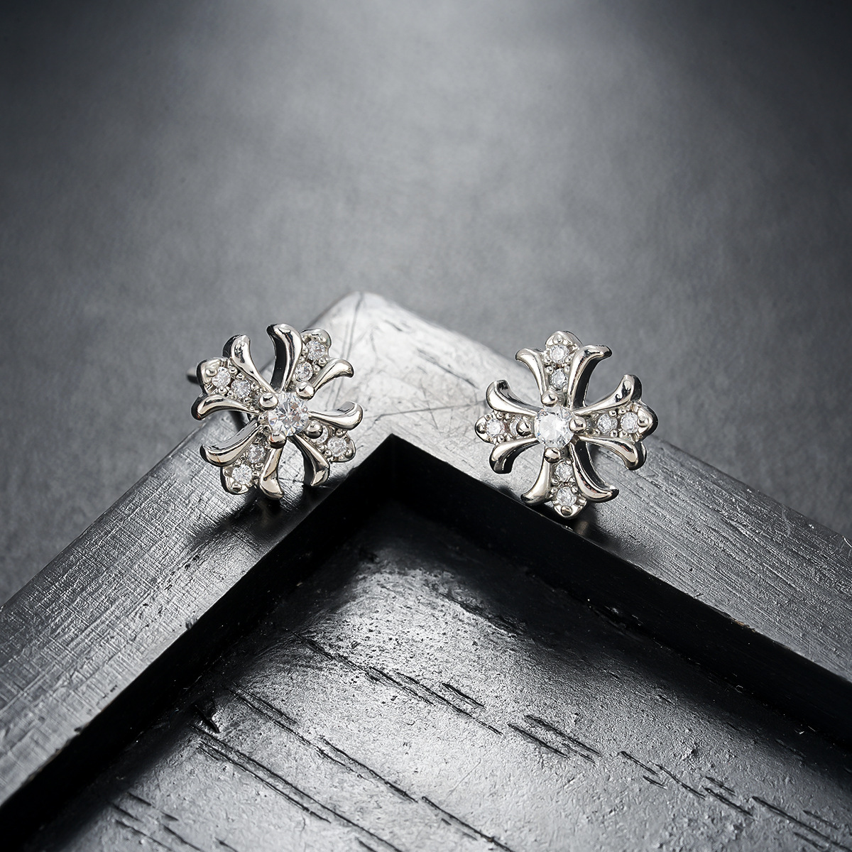 复古嘻哈十字架锆石满钻耳钉男女潮个性冷淡风小众轻奢耳饰品批发