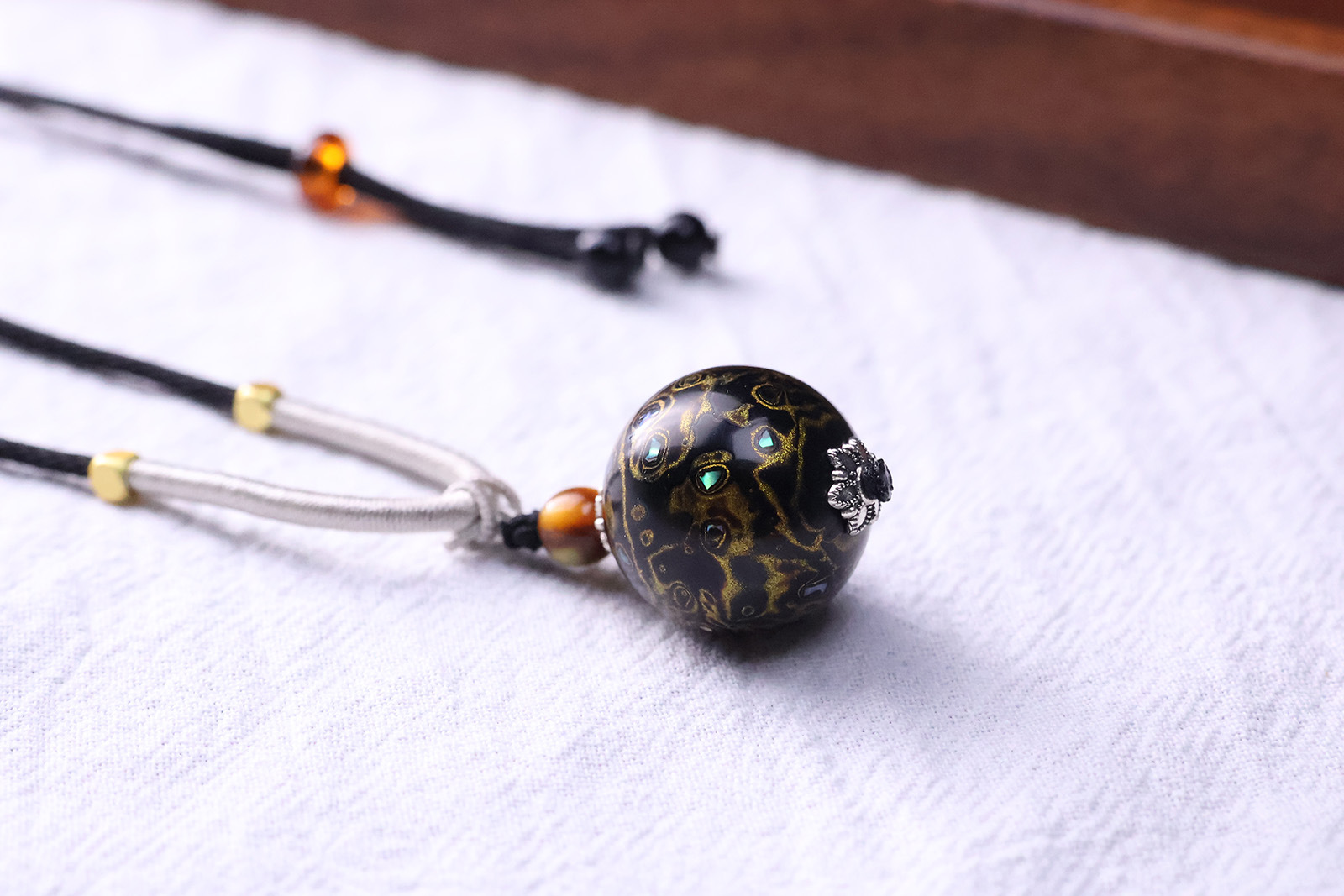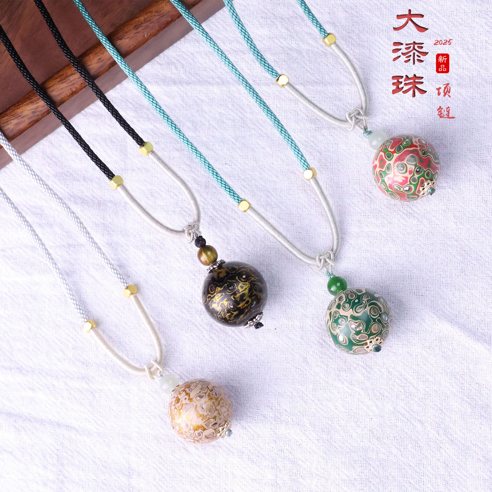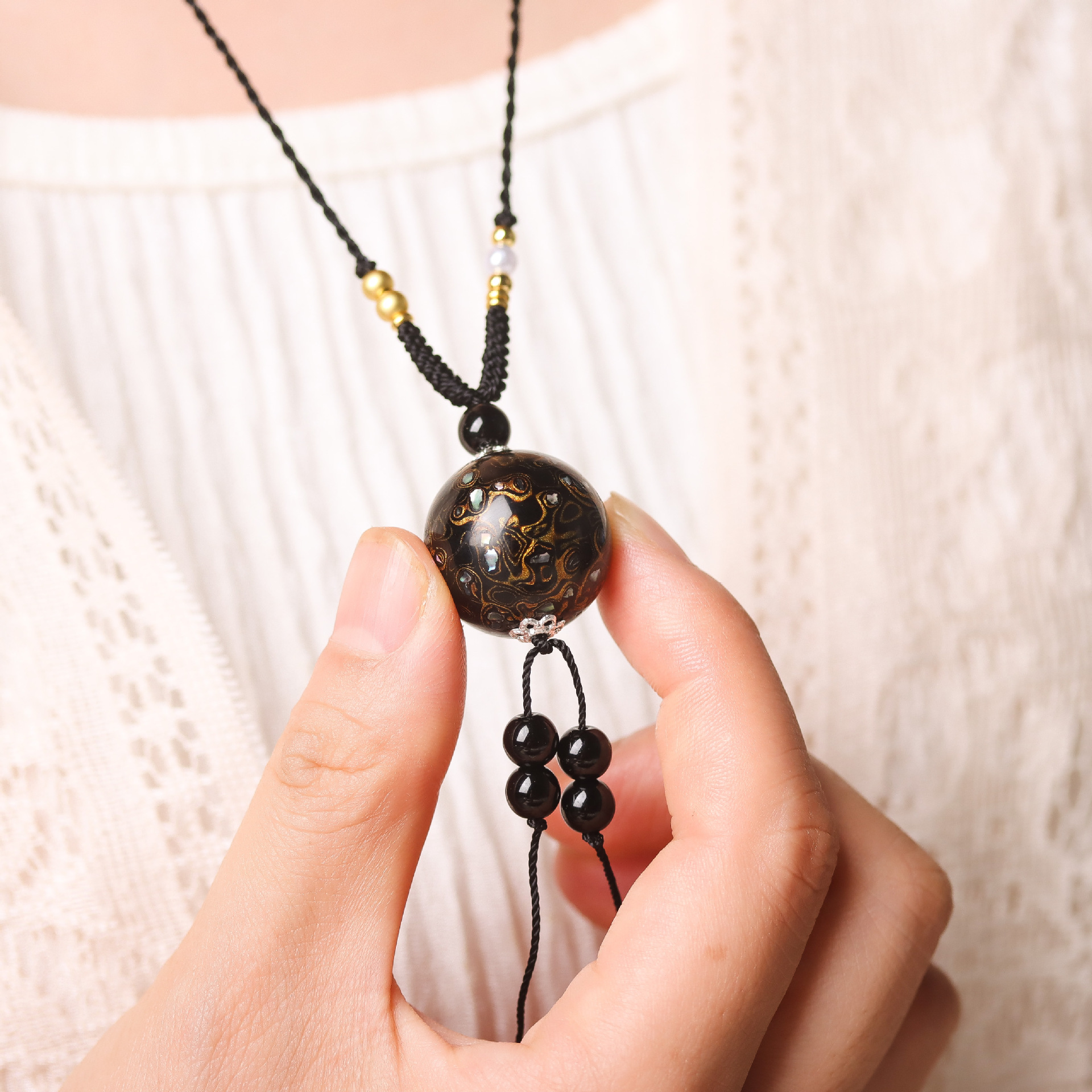 非遗大漆珠项链中国风锁骨链DIY原创设计镶嵌满螺钿非遗工艺