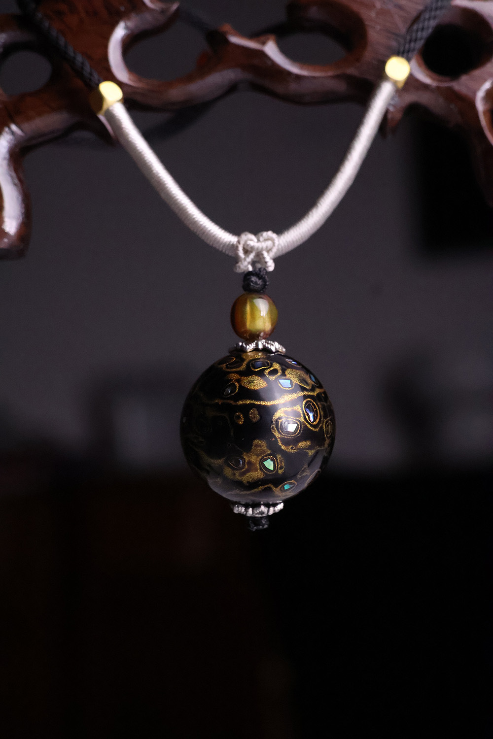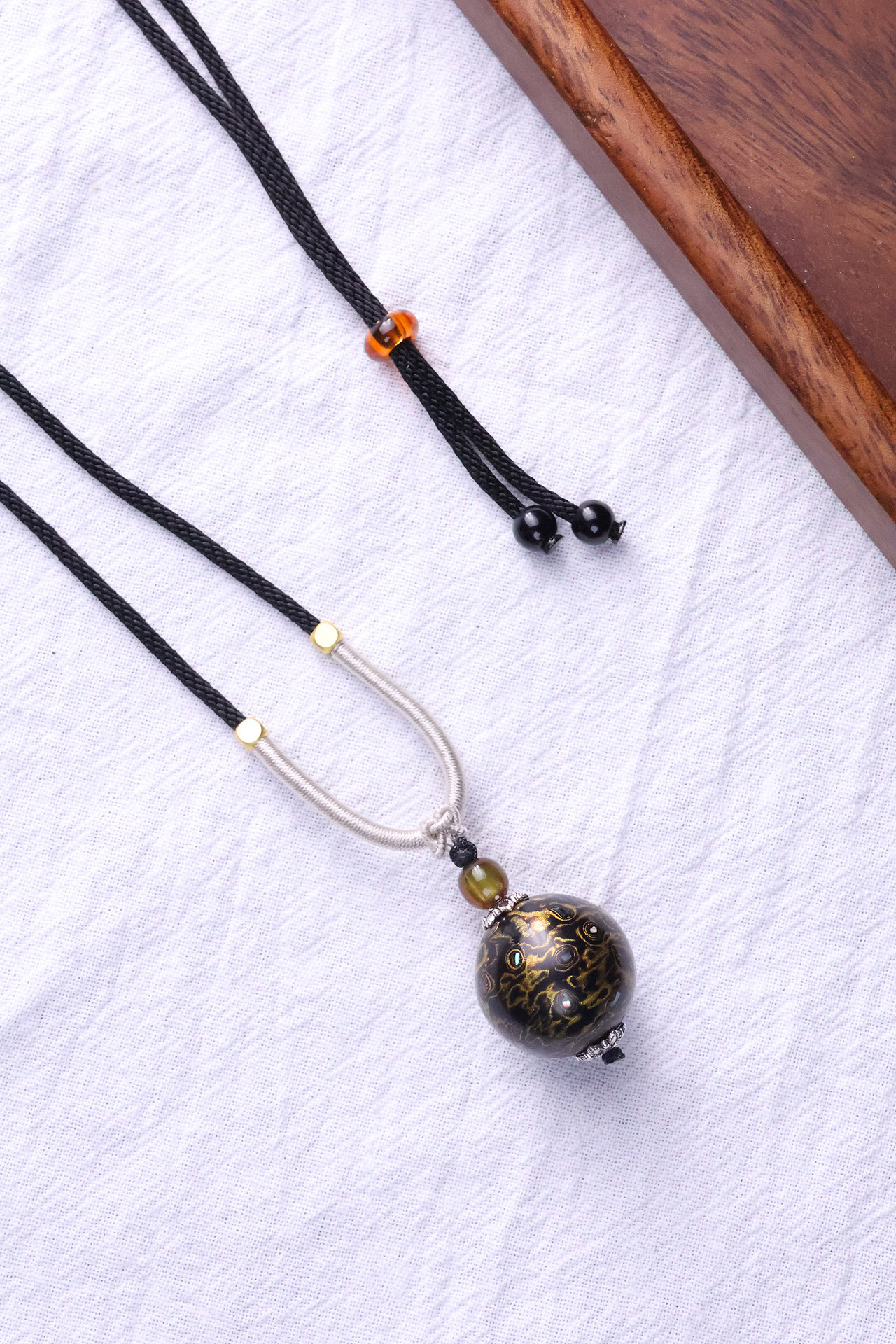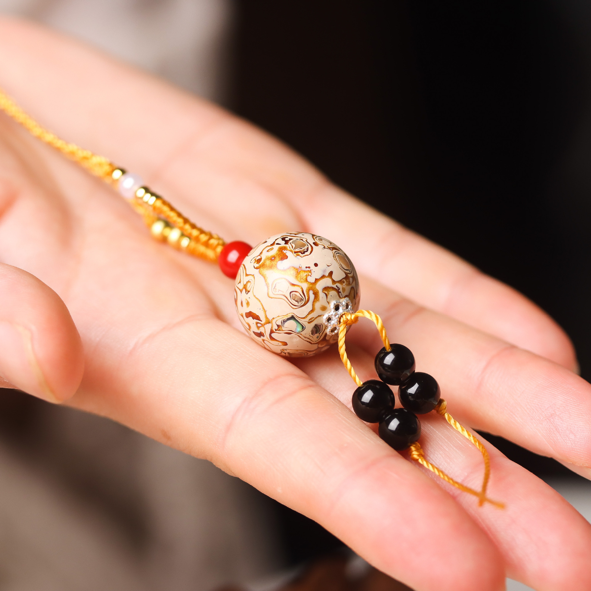 非遗大漆珠项链中国风锁骨链DIY原创设计镶嵌满螺钿非遗工艺