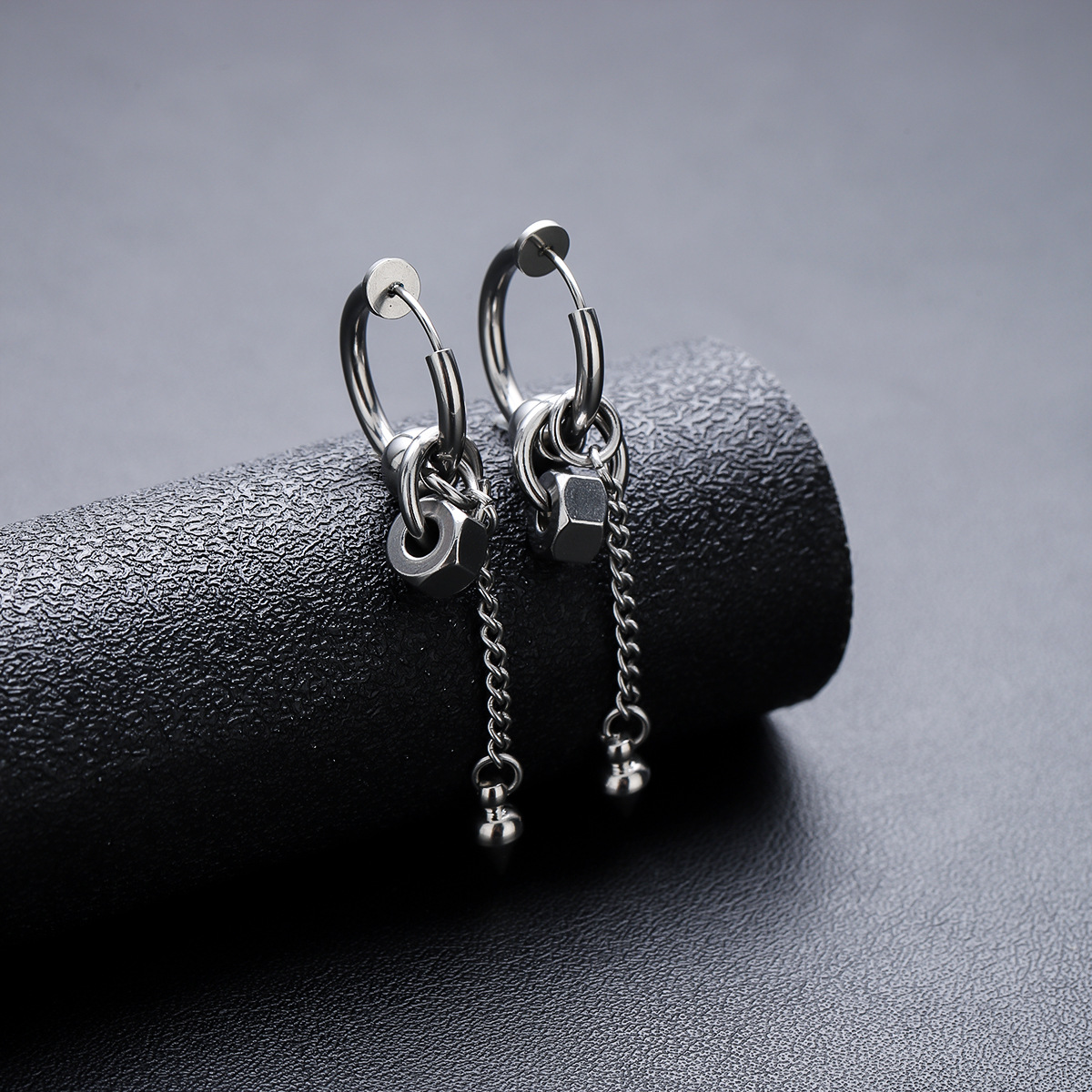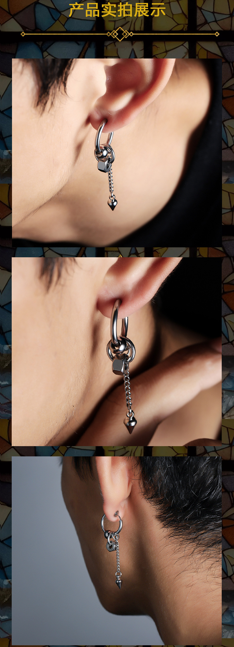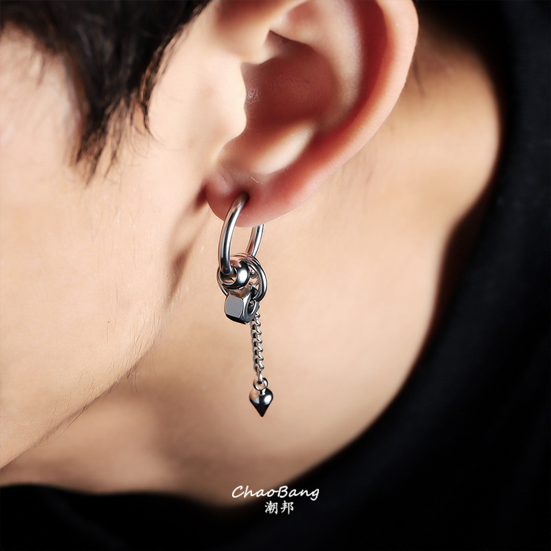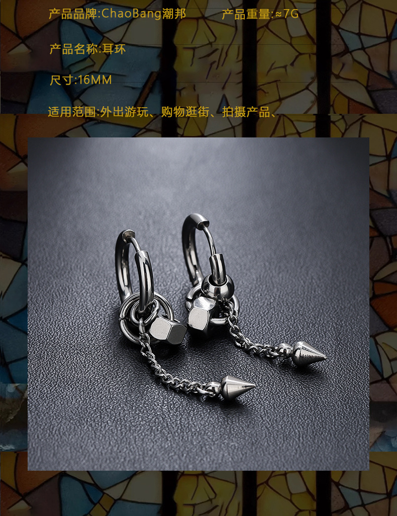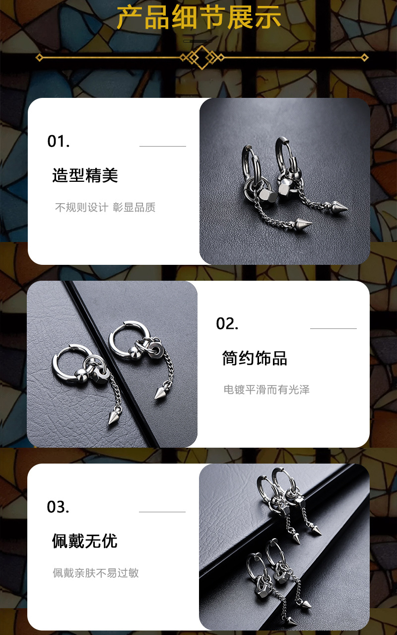 圆锥长链耳环男钛钢不掉色高级感百搭耳夹女小众设计感耳饰品批发