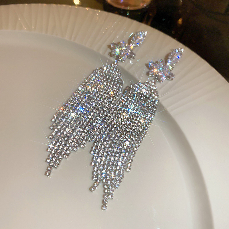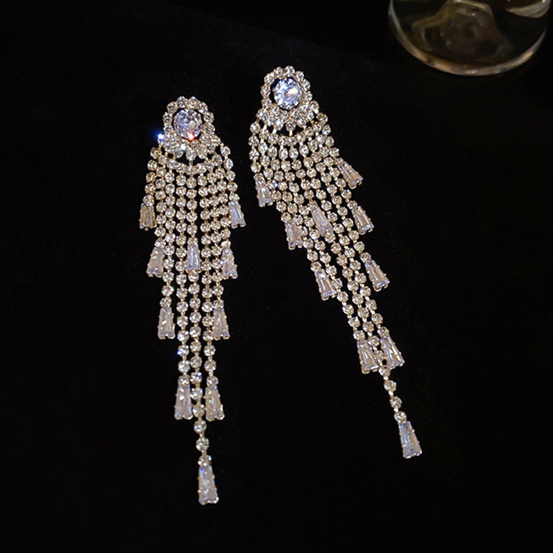 欧美跨境银针锆石流苏耳环轻奢高级感大气耳坠时尚小众耳饰批发女