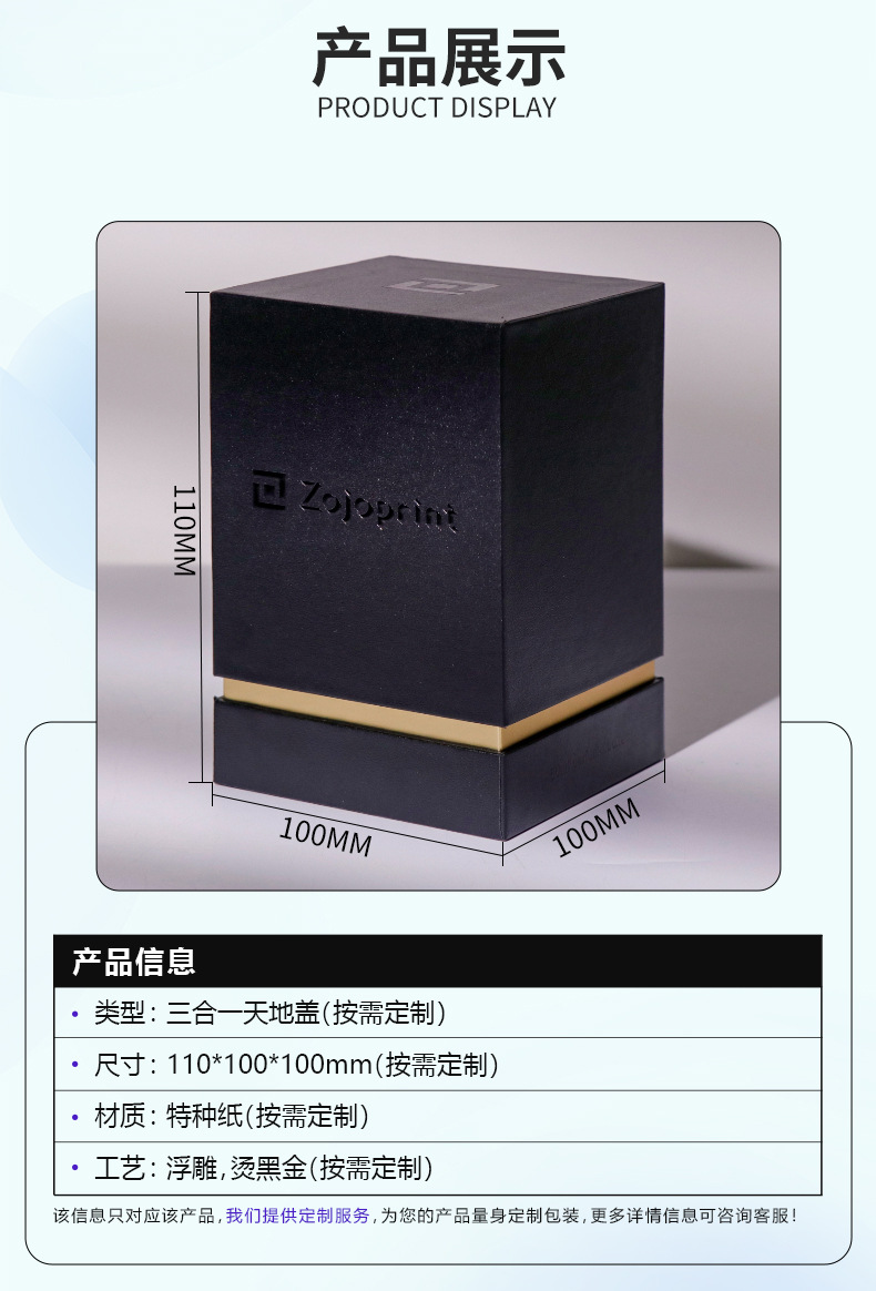 高级感三合一天地盖礼盒定制香水香薰蜡烛包装盒浮雕烫黑金礼品盒