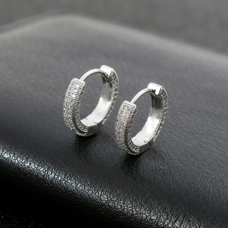 欧美满钻耳环新款耳扣百搭耳钉男士黄金色耳圈女耳饰义乌热销配饰