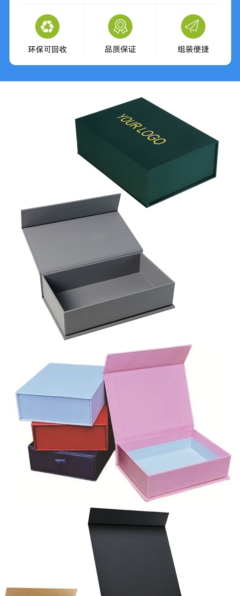 高端定制磁吸翻盖书型礼盒定制 化妆品包装盒精装 批发 LOGO 印刷