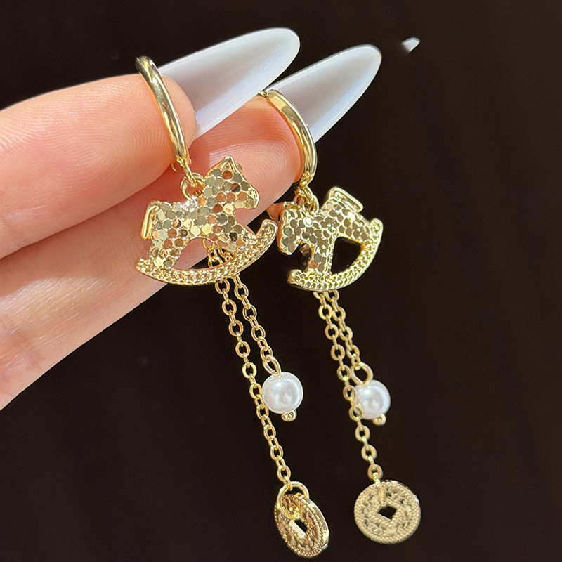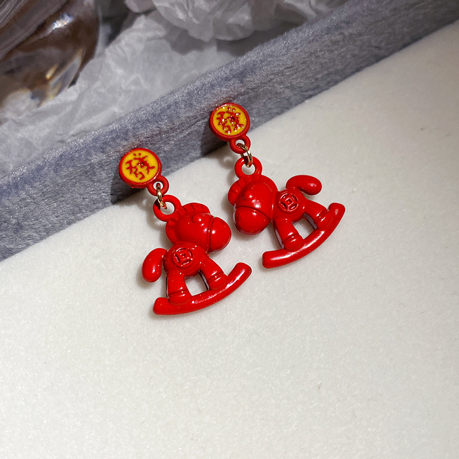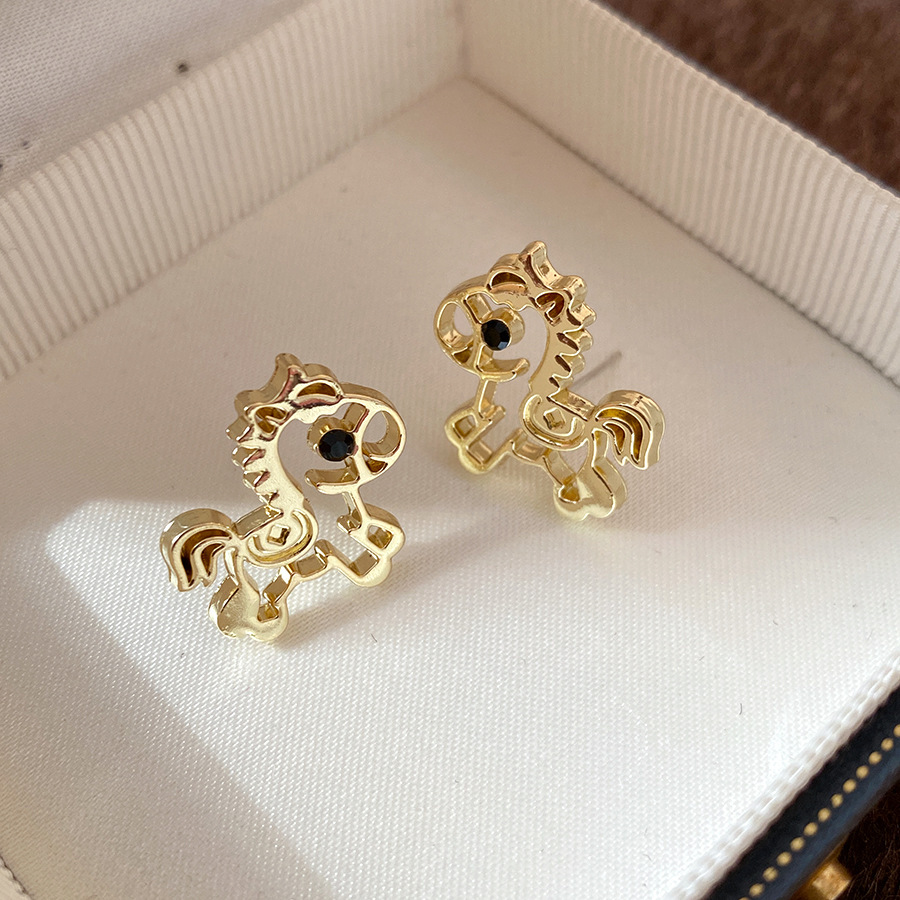 明星同款本命年小马吊坠耳扣新中式个性百搭耳环设计感小众耳饰女
