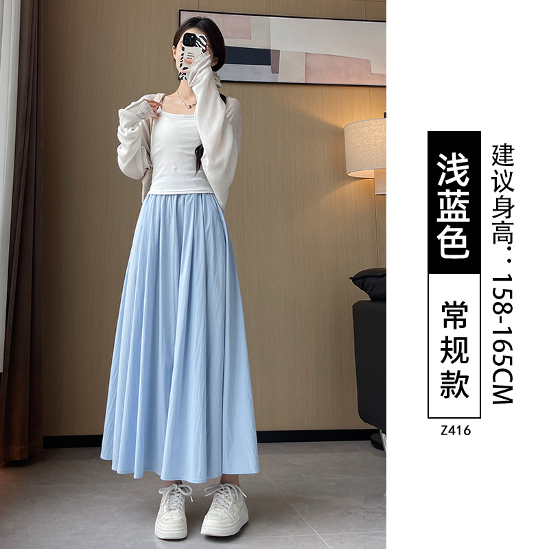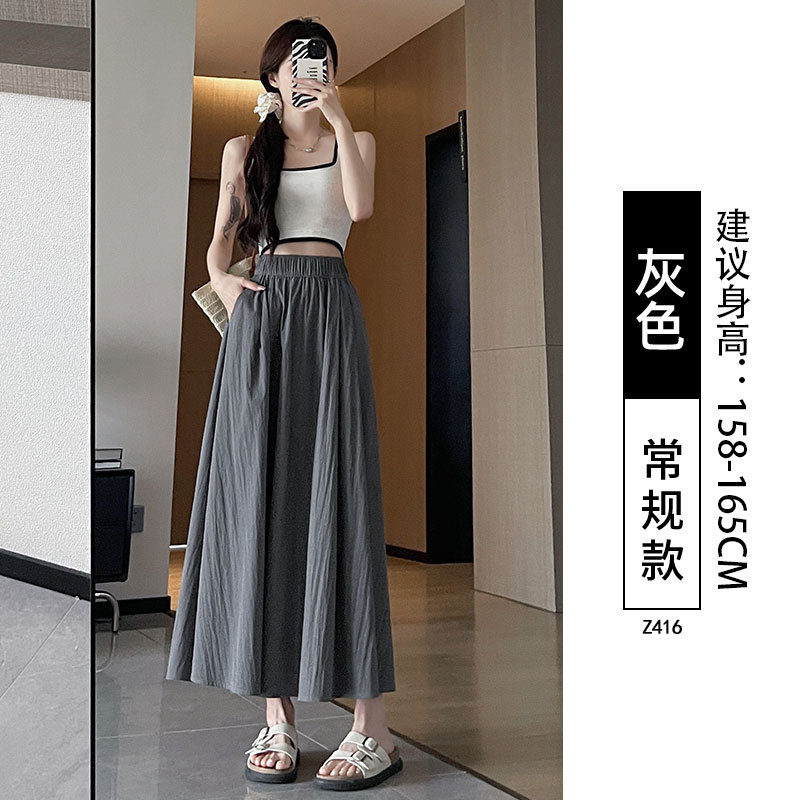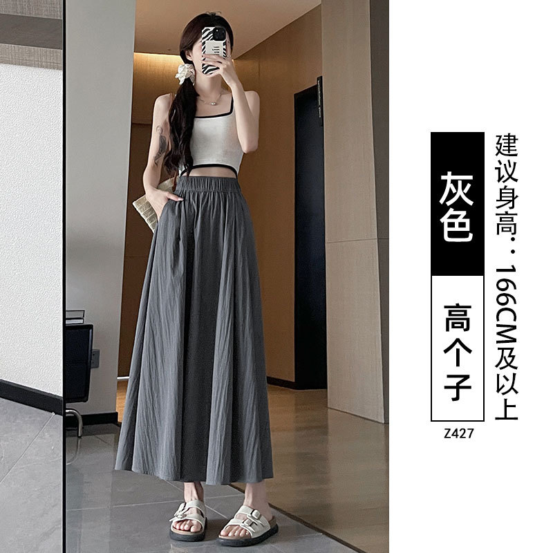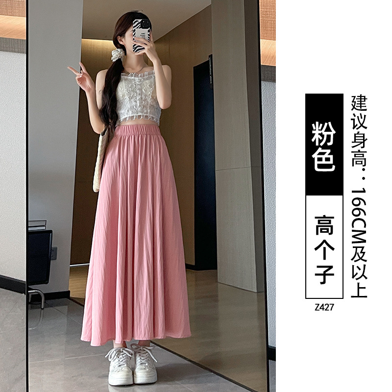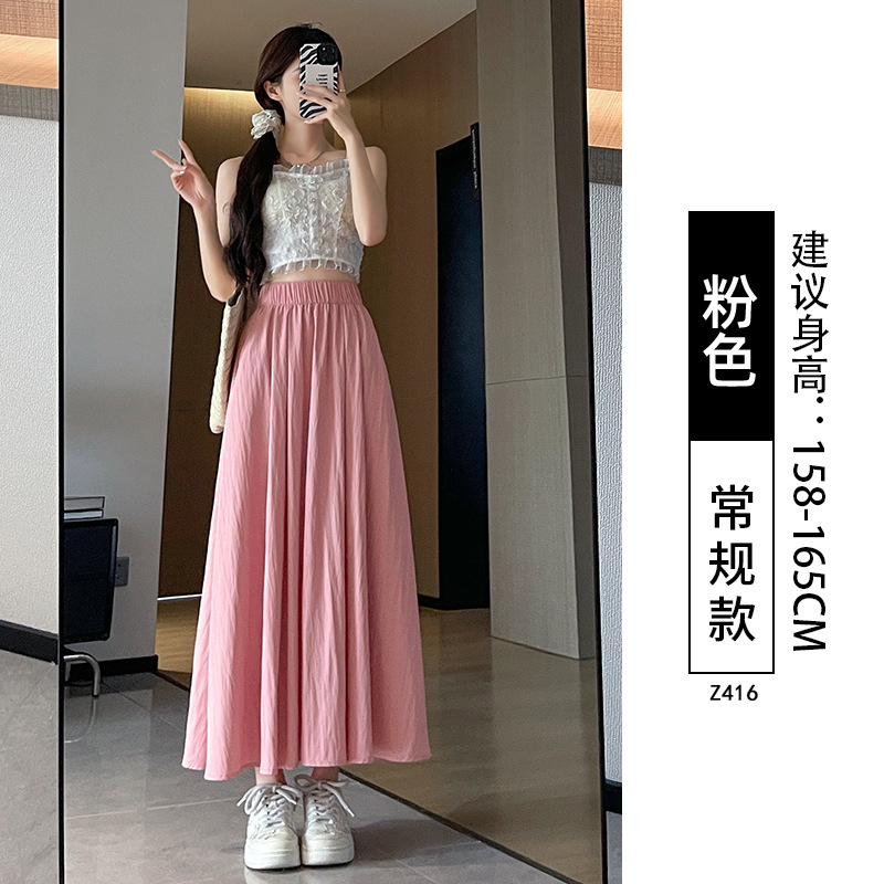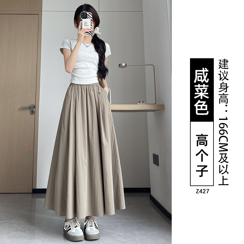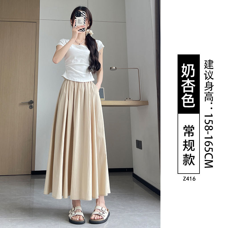 半身裙女2025新款夏季高腰a字显瘦伞裙百褶长裙小个子杏色山本裙