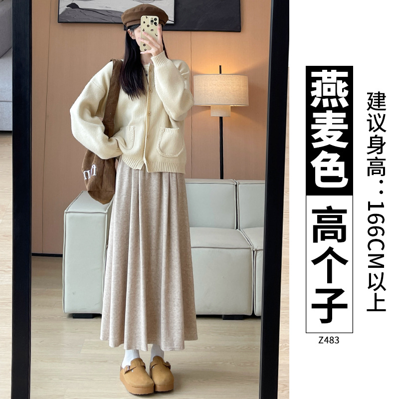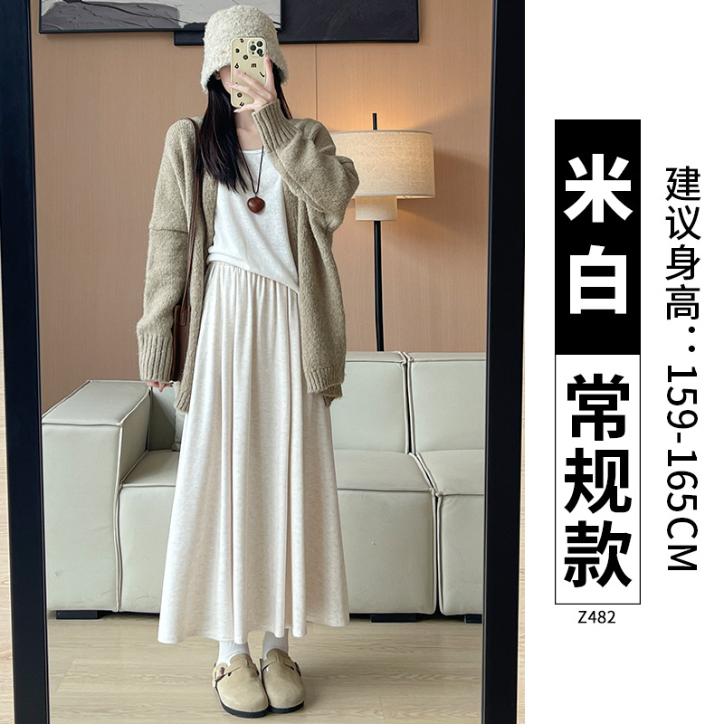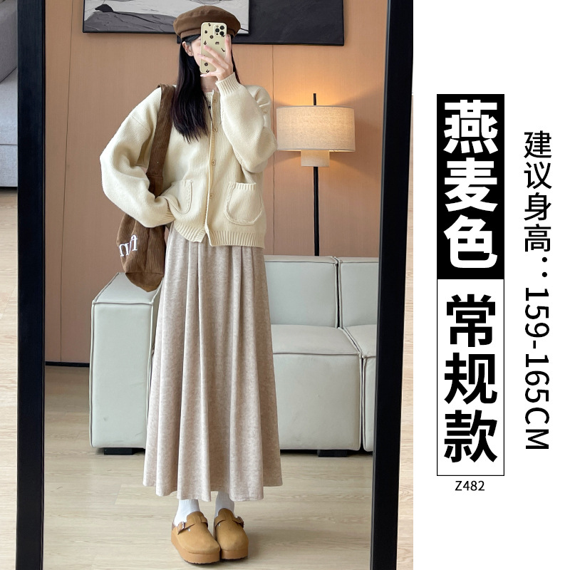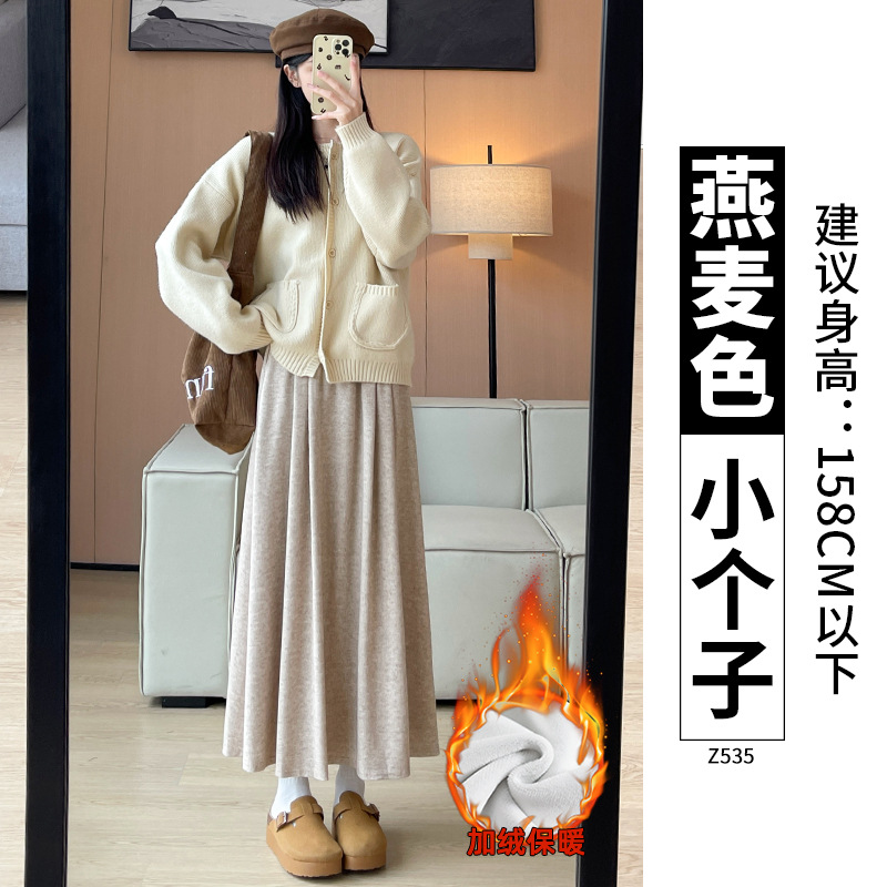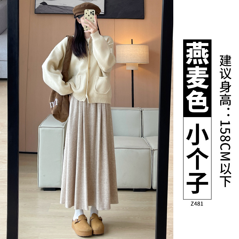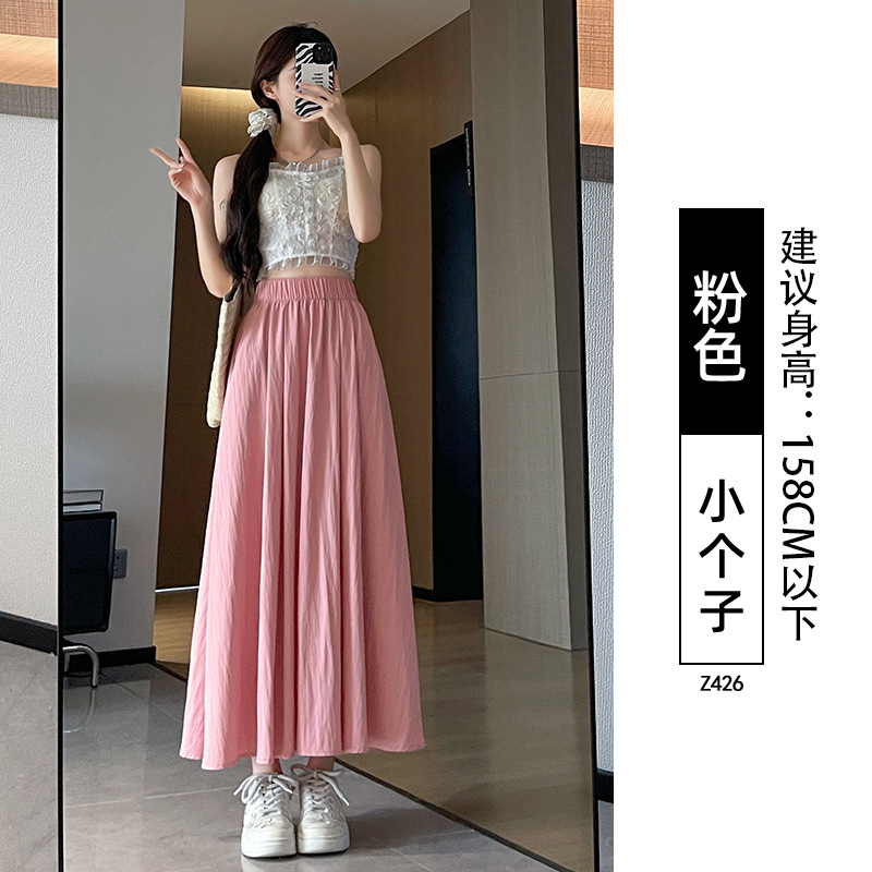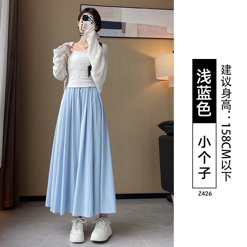 半身裙女2025新款夏季高腰a字显瘦伞裙百褶长裙小个子杏色山本裙