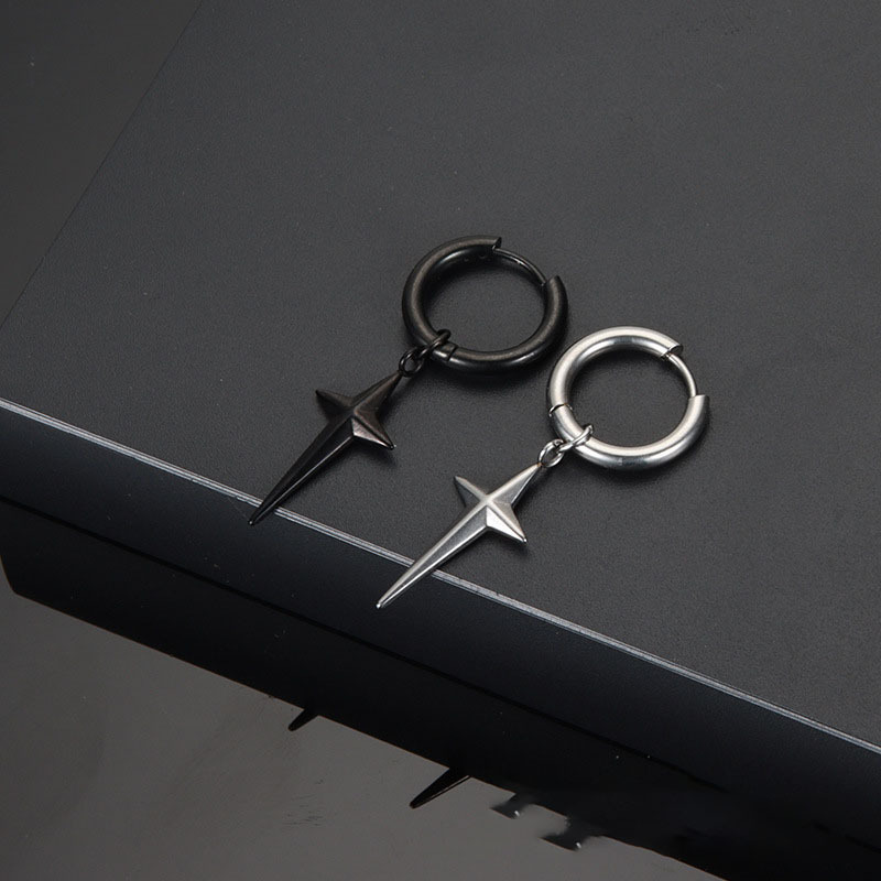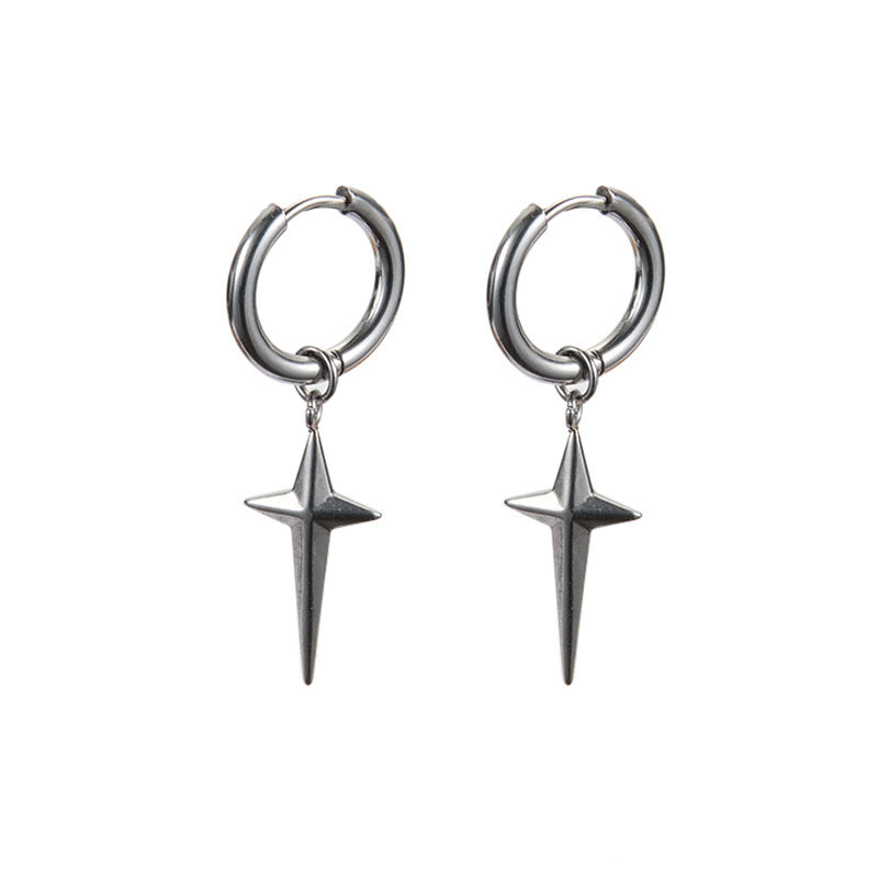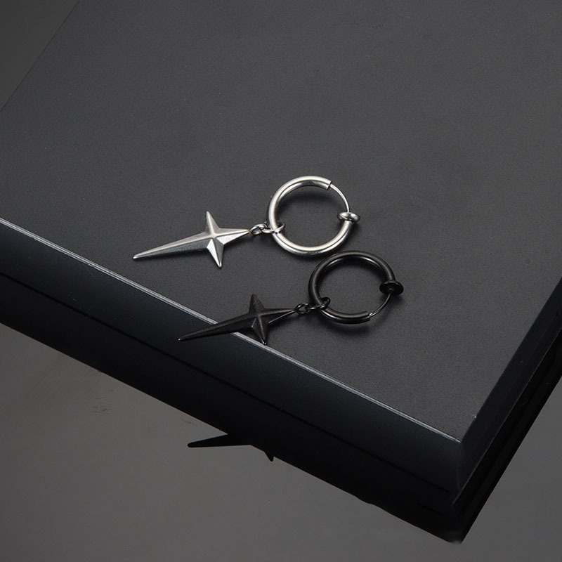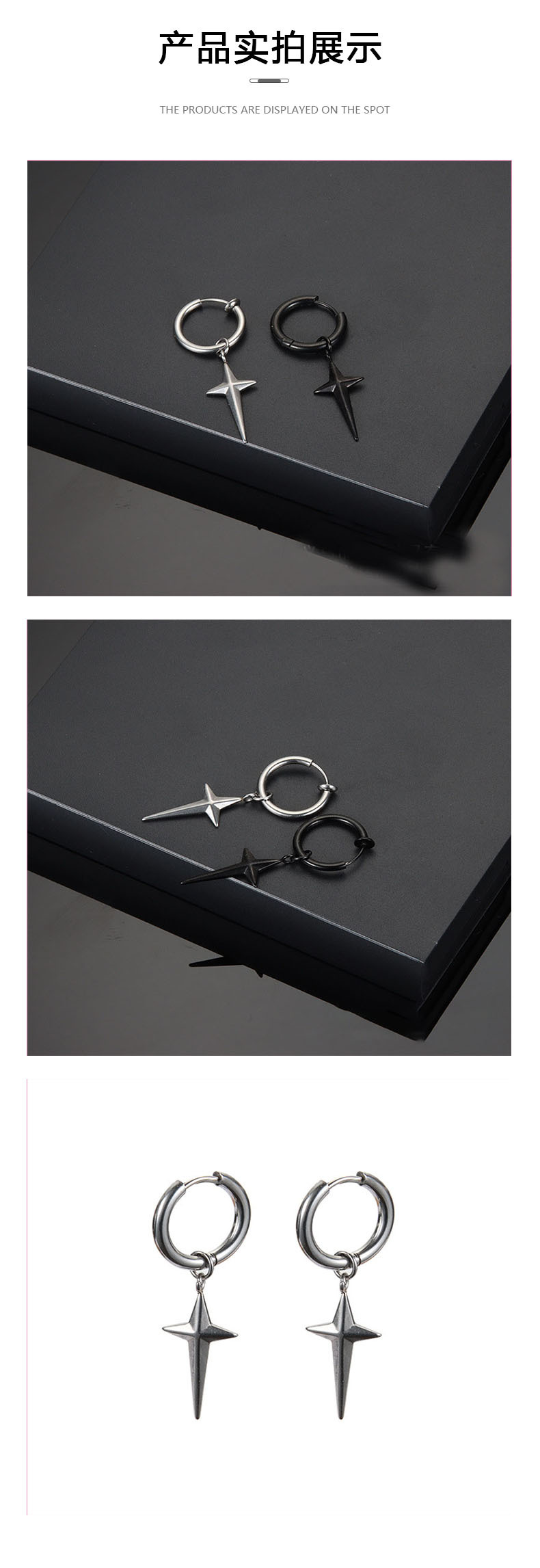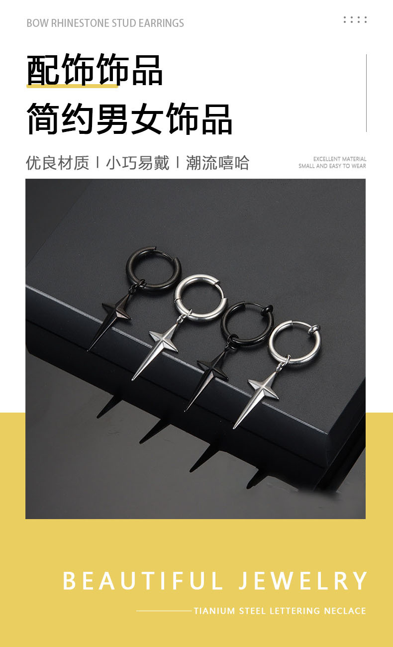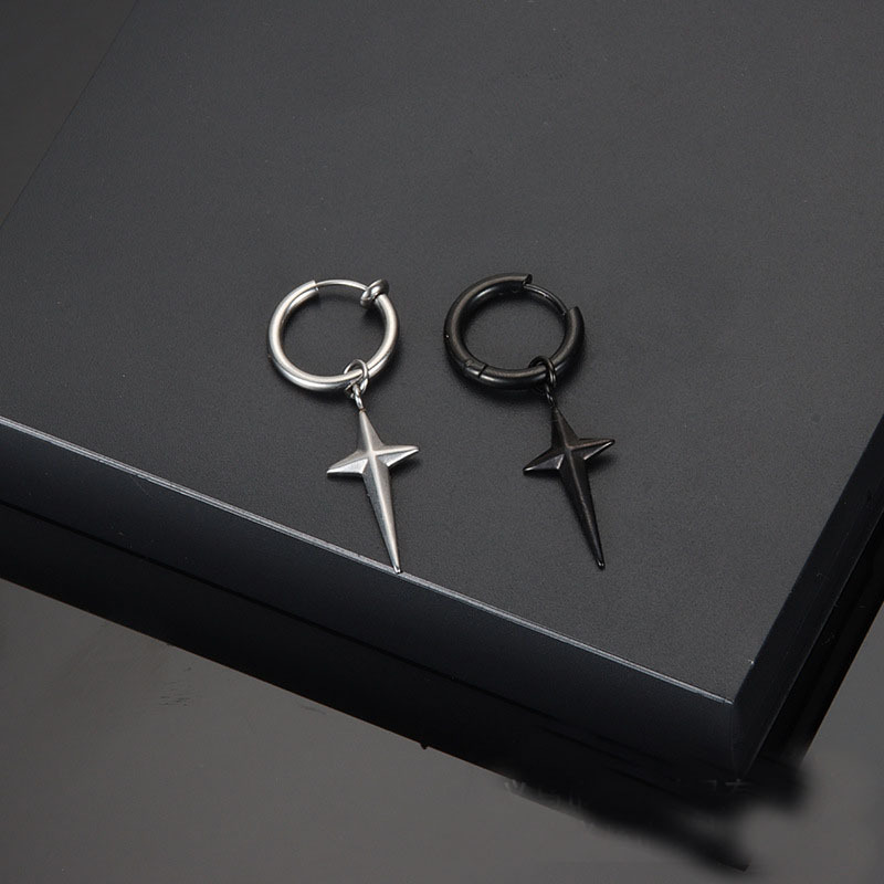 耳环男十字星钛钢不掉色耳夹女嘻哈朋克简约高级感复古潮配饰饰品