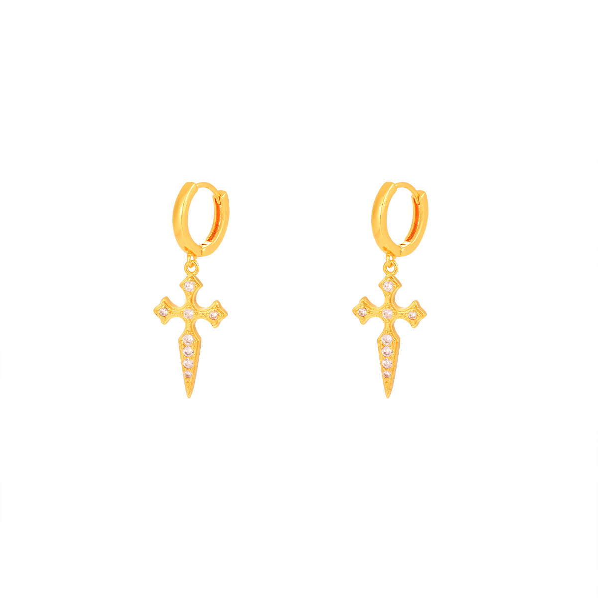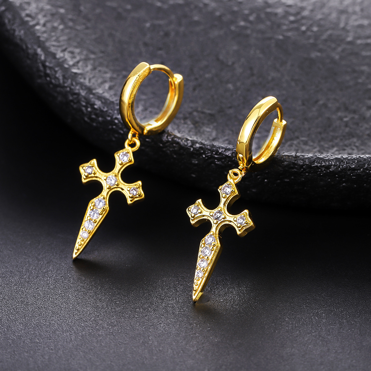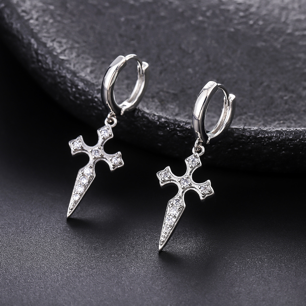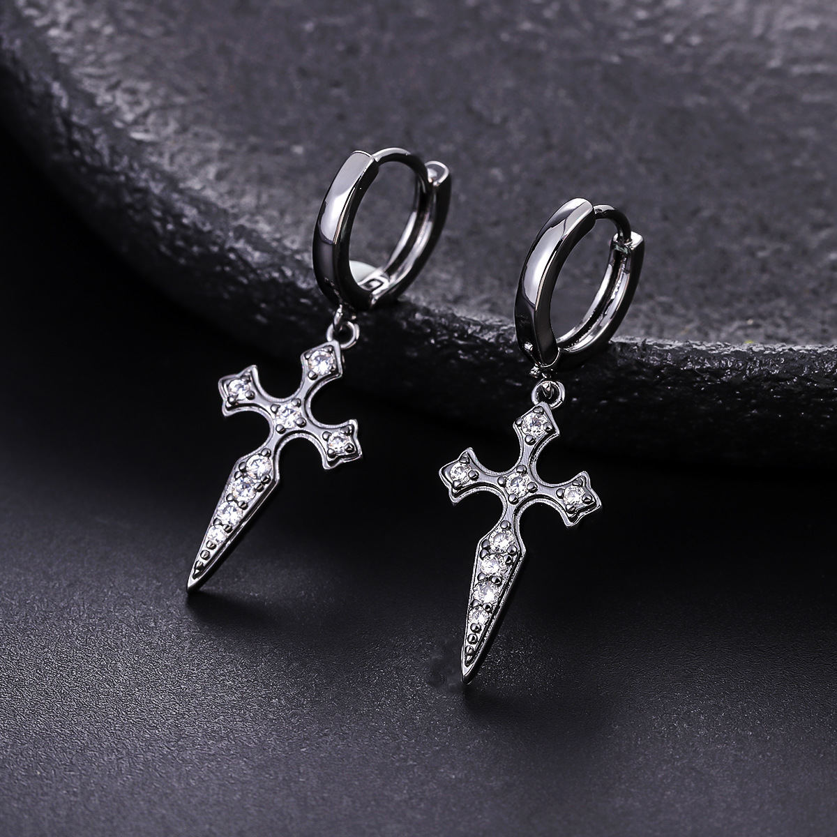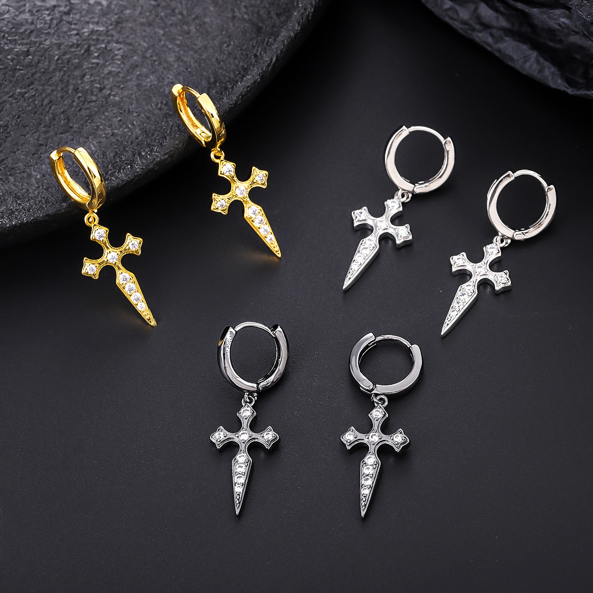锆石十字架耳环男士洛克风轻奢高级感欧美设计耳饰女耳扣潮流饰品