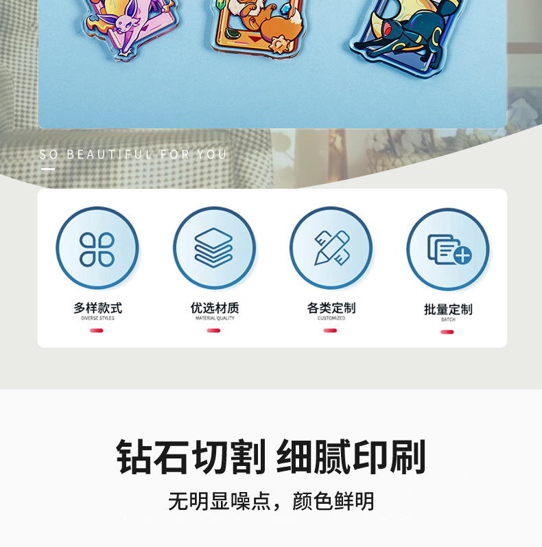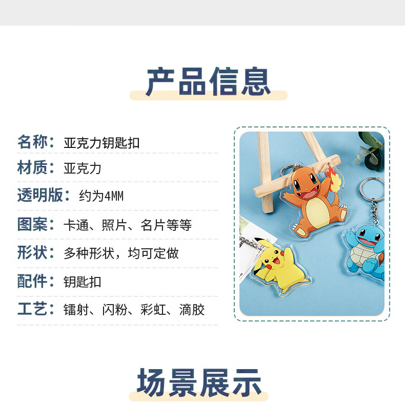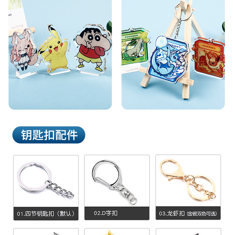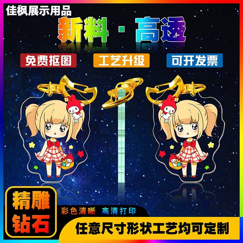 亚克力钥匙扣diy卡通情侣照片diy双面动漫个性立牌文字挂件定 做