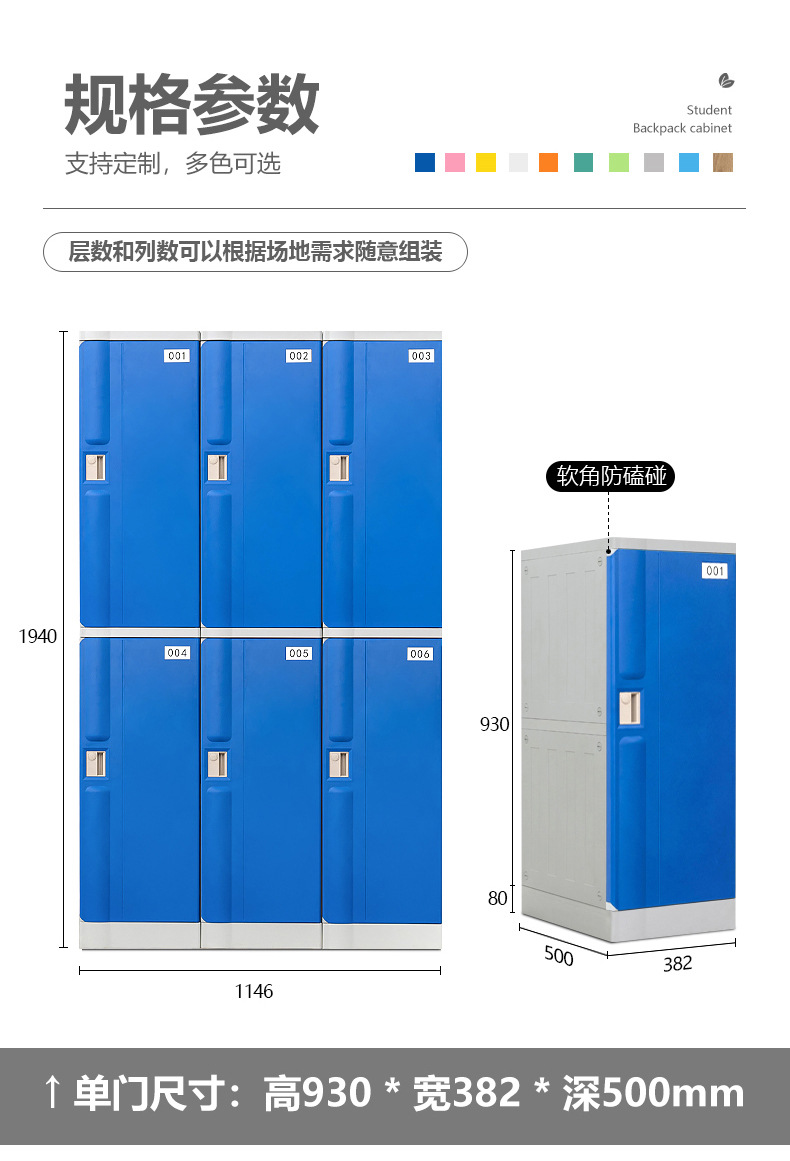 ABS塑料书包柜中小学生幼儿园教室收纳柜学校防水独立带锁储物柜