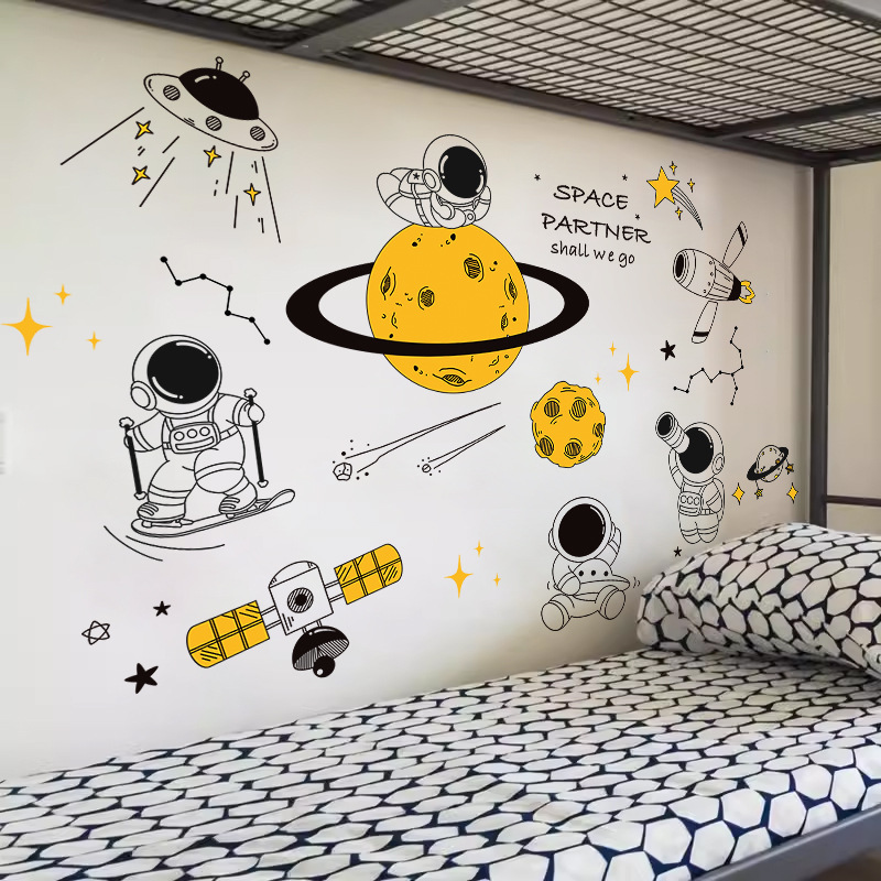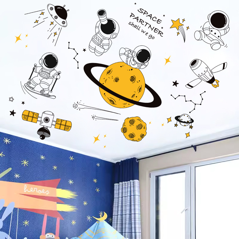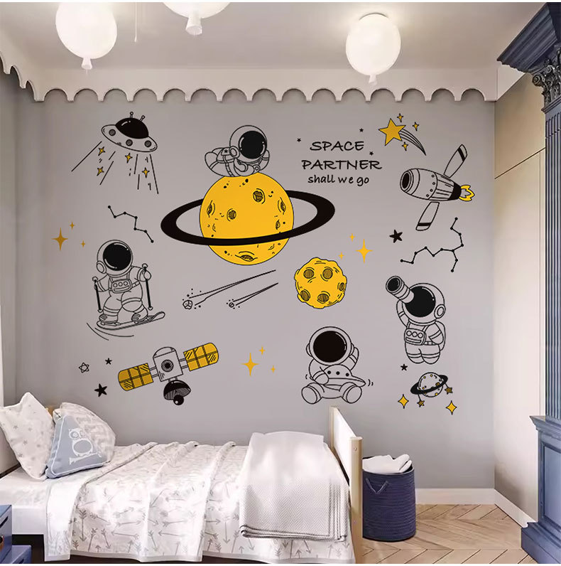 太空宇航员墙贴纸卡通儿童房男宝宝卧室幼儿园教室主题布置贴定制