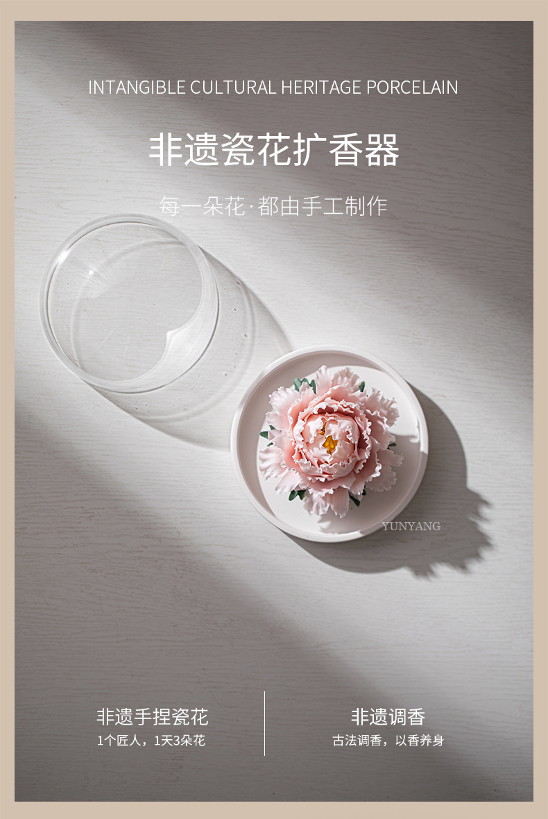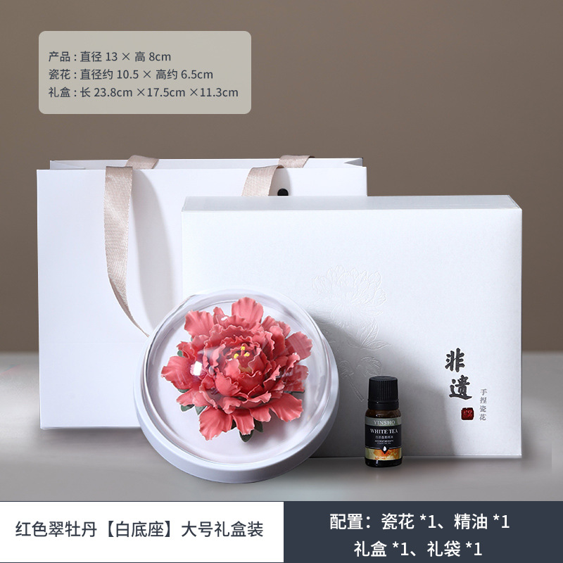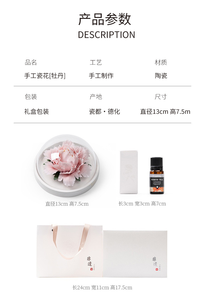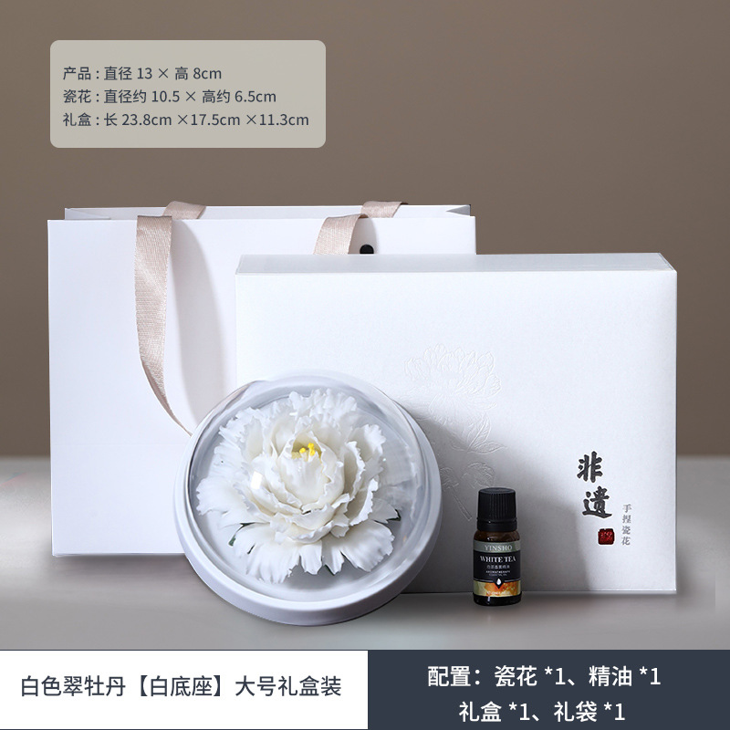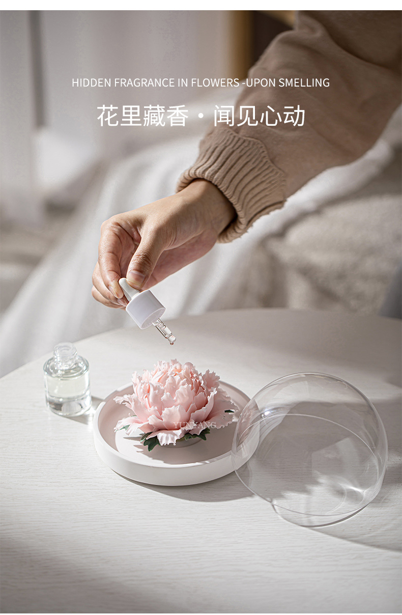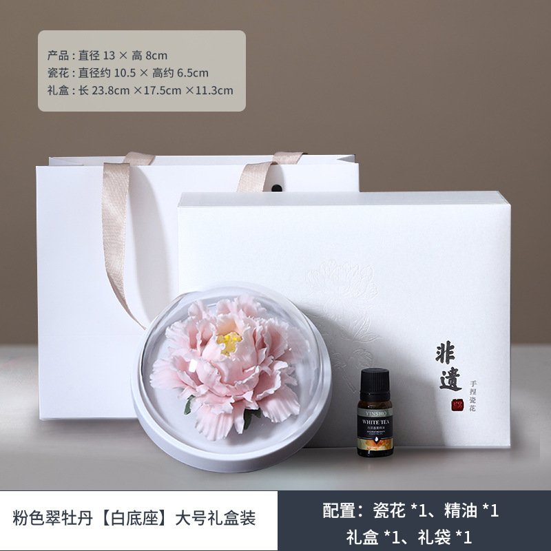 德化陶瓷手捏瓷花牡丹花手工花扩香器香薰车载家用摆件结婚伴手礼