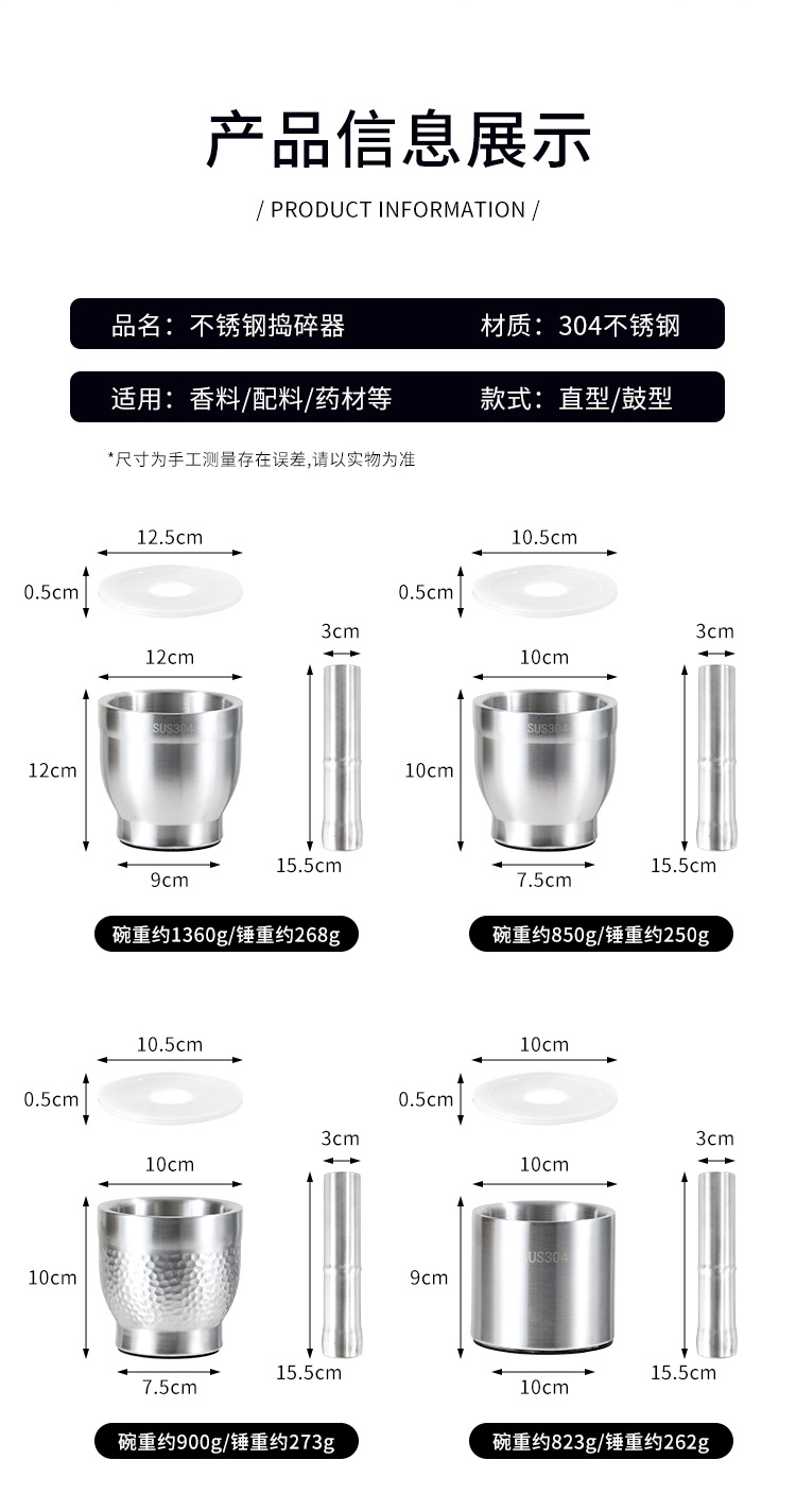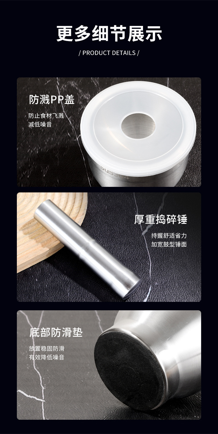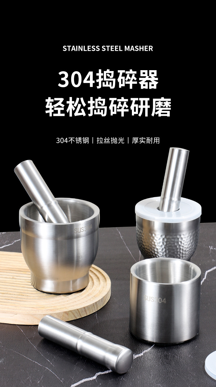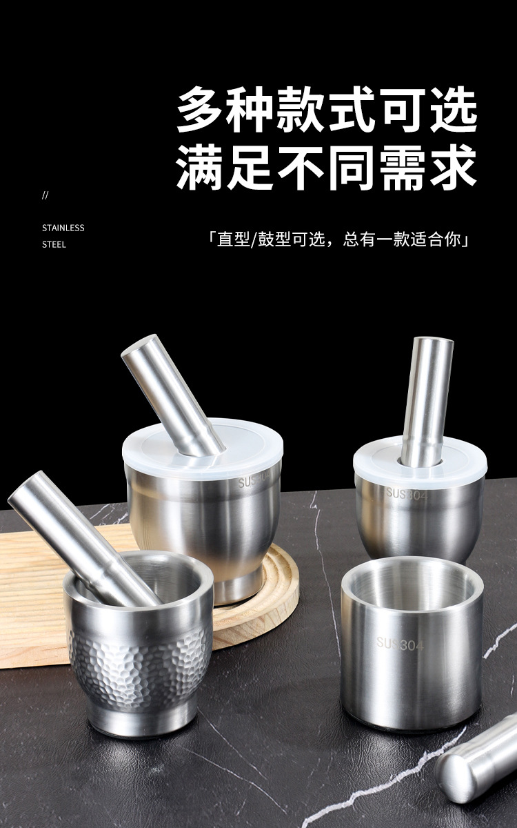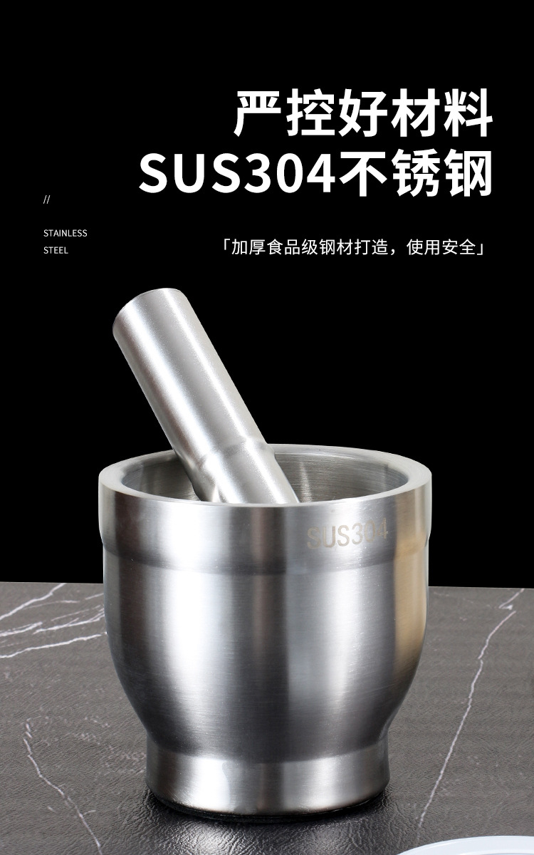 304不锈钢捣蒜器家用捣碎罐手动研磨器蒜臼子捣药器研钵打蒜器