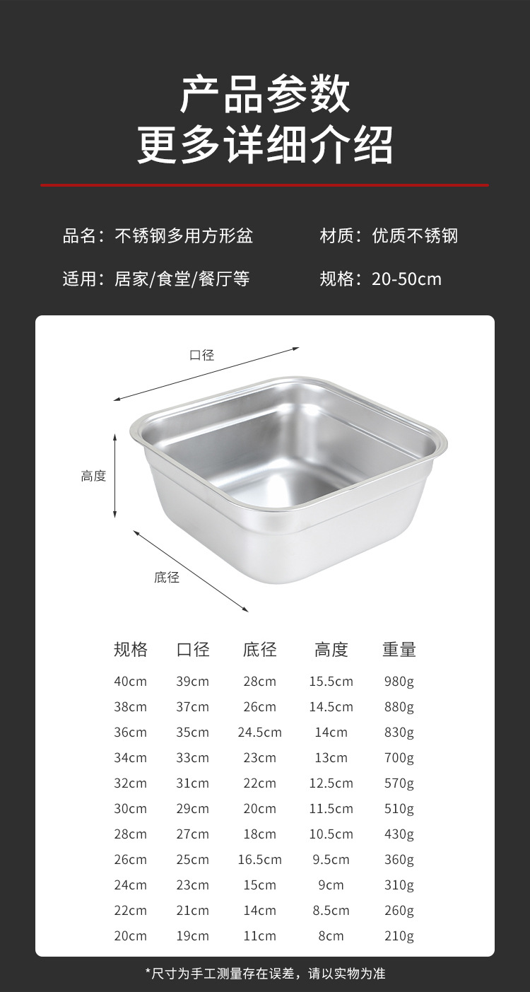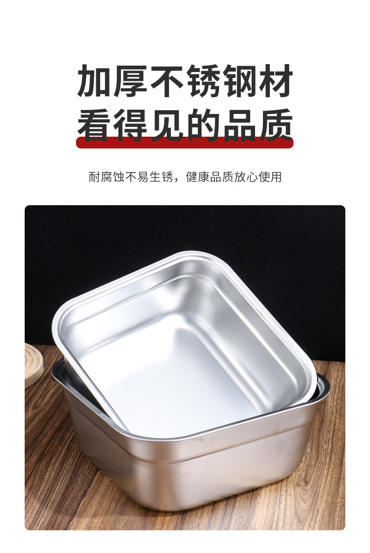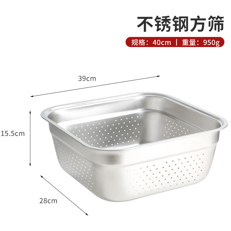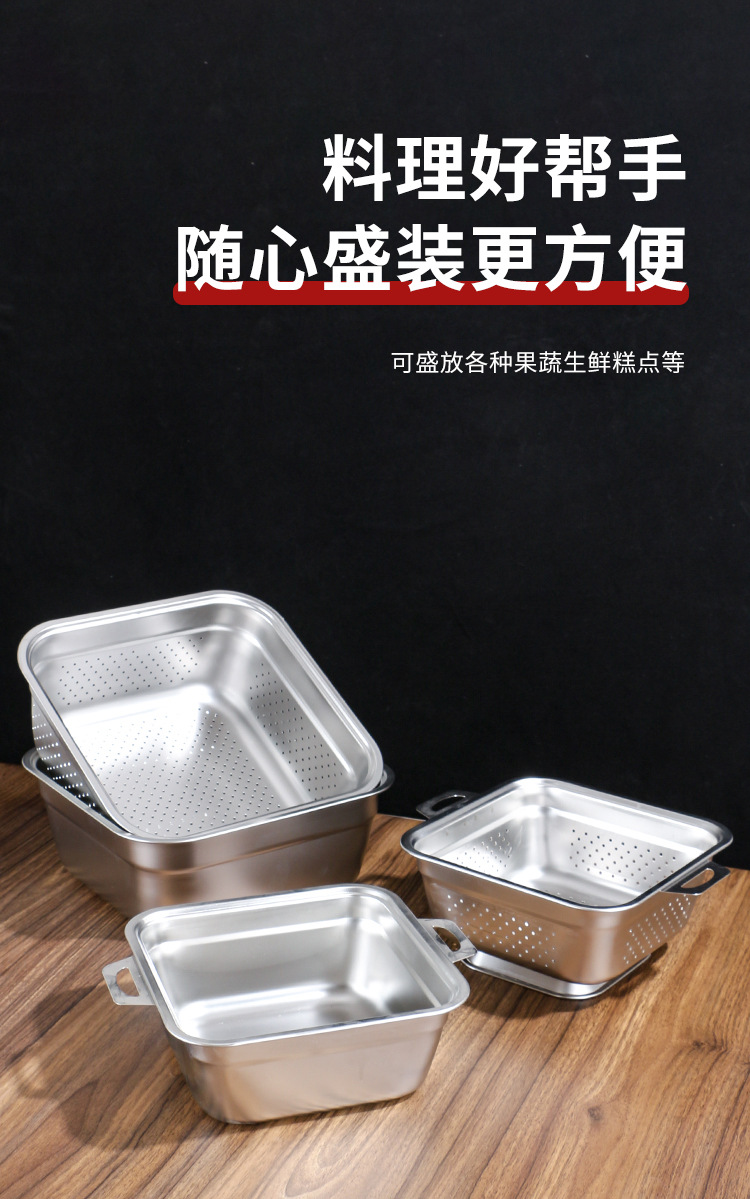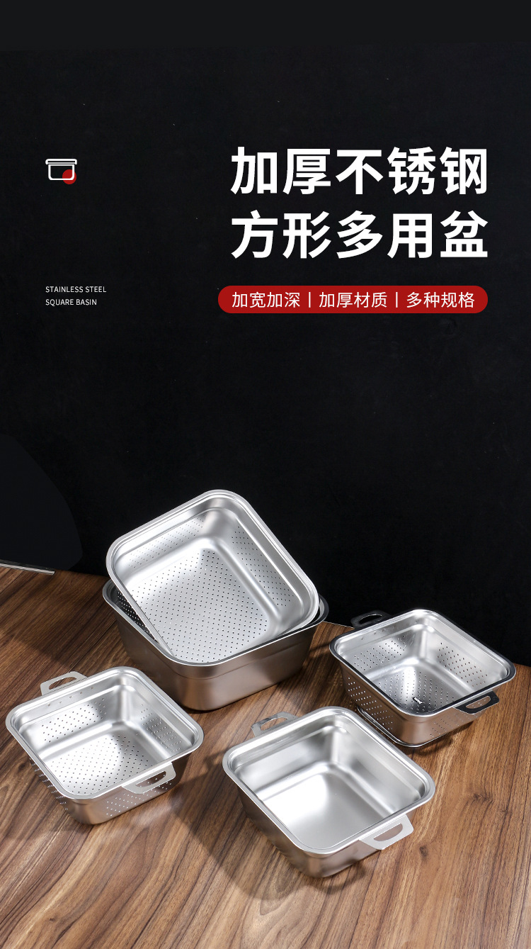 不锈钢方形盆厨房多用沥水洗菜盆韩式加厚方盆加深带把手漏盆批发
