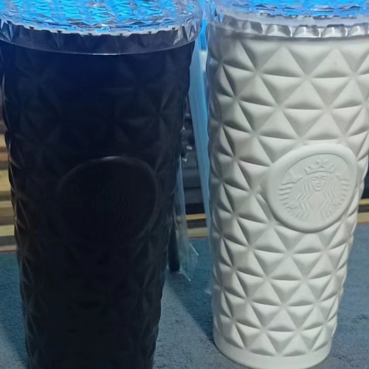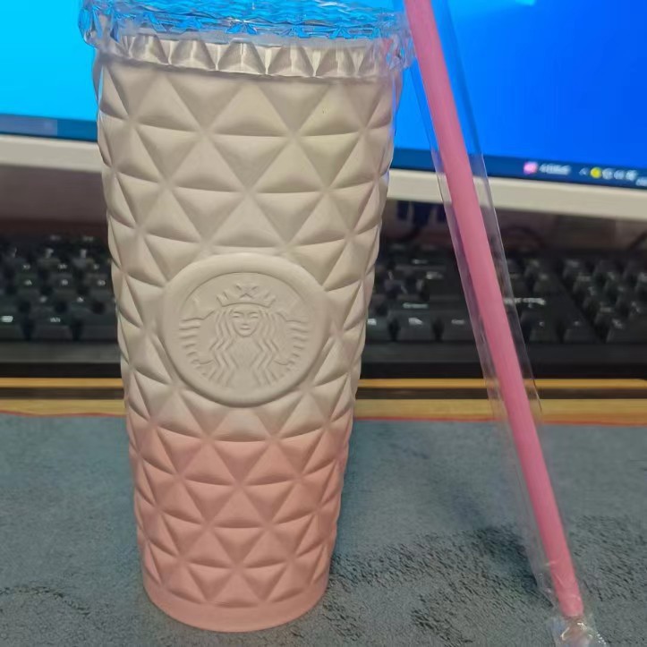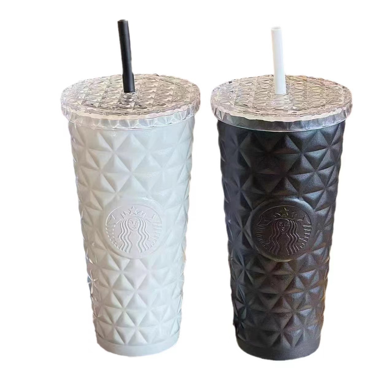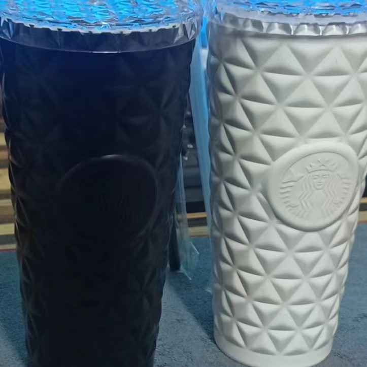 现货星爸爸新款菱格纹不锈钢吸管杯大容量水杯高颜值保温保冷杯批