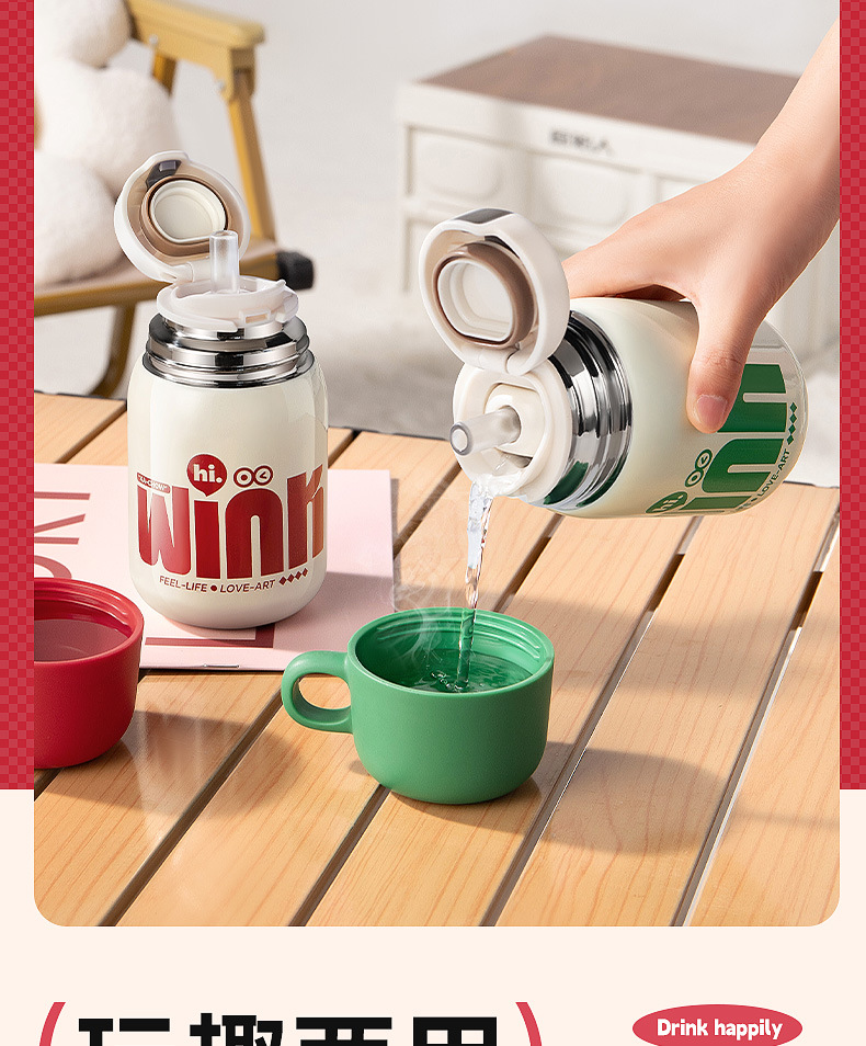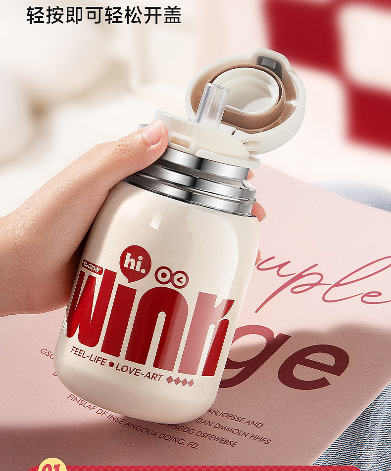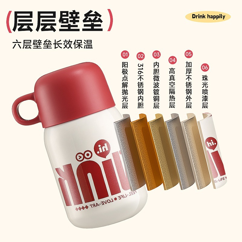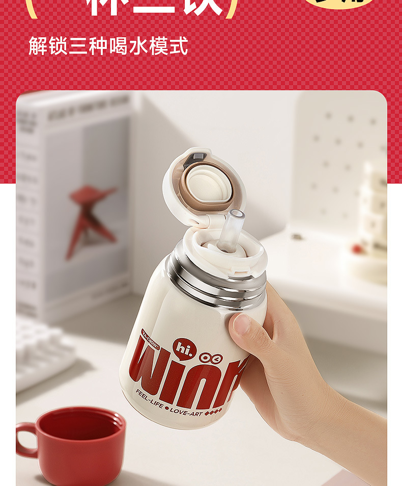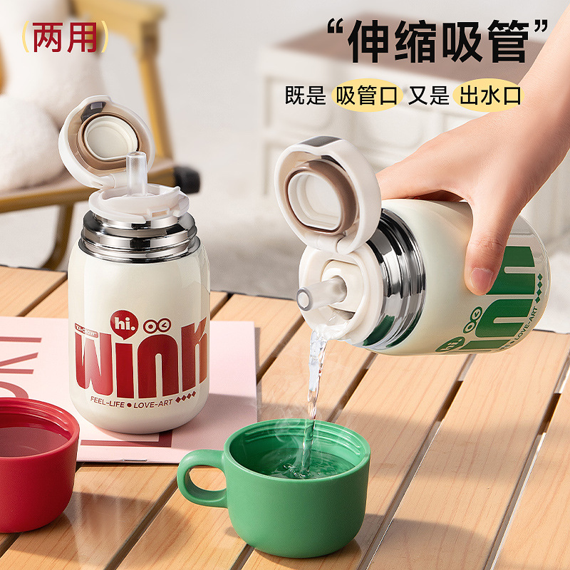 卡西诺保温杯女生高颜值小巧便携吸管水杯学生儿童316不锈钢杯子