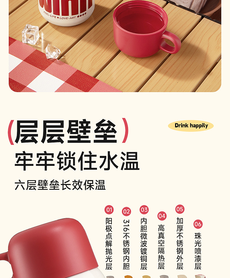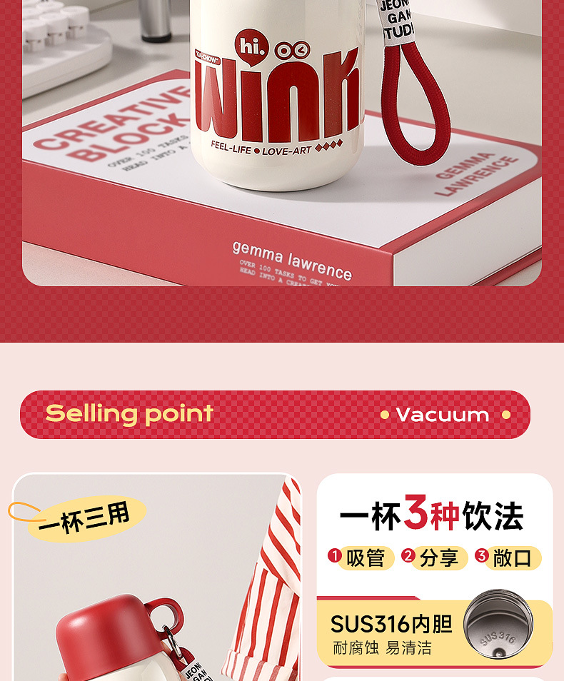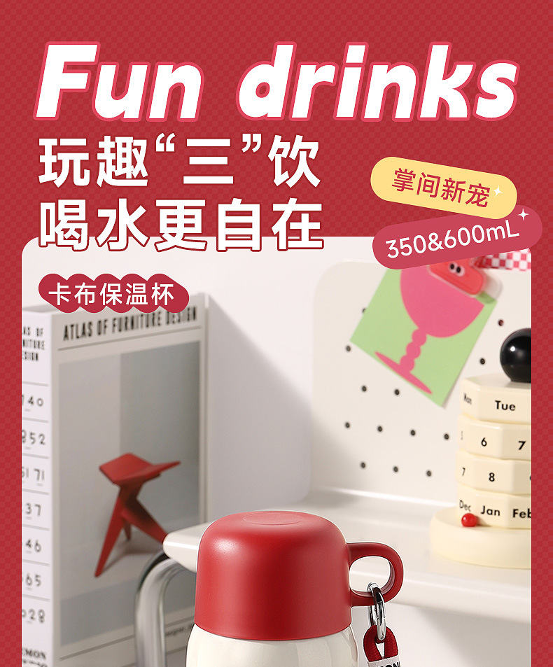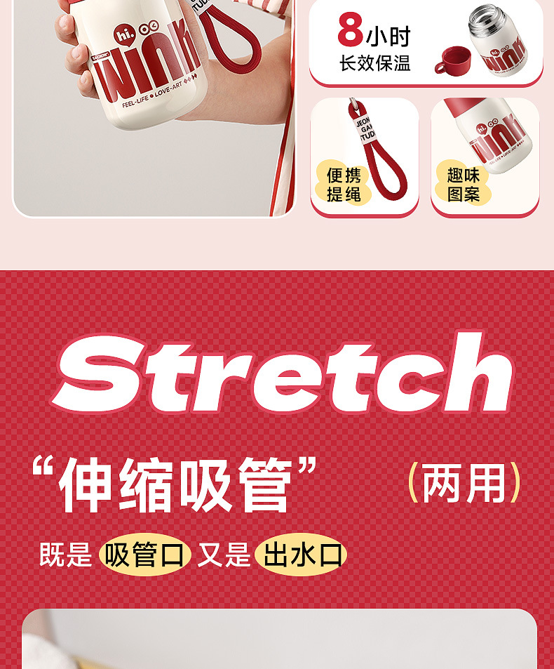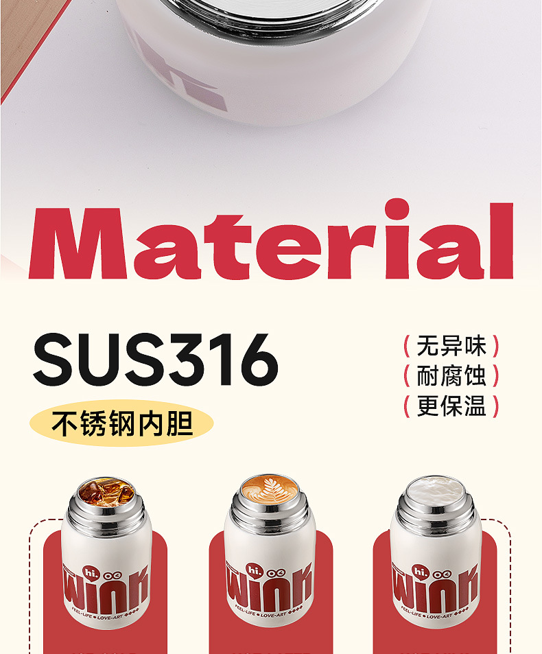 卡西诺保温杯女生高颜值小巧便携吸管水杯学生儿童316不锈钢杯子