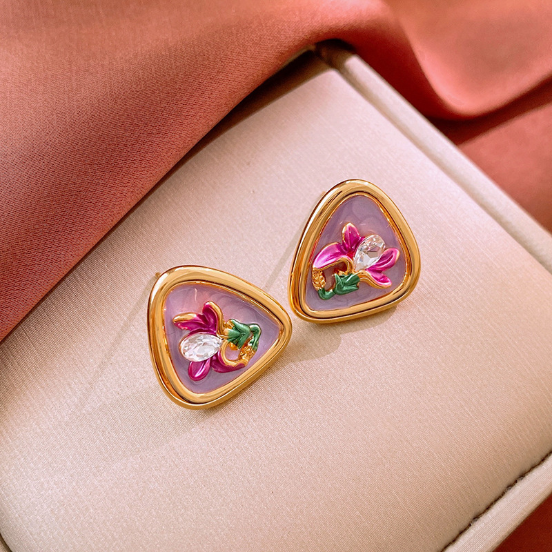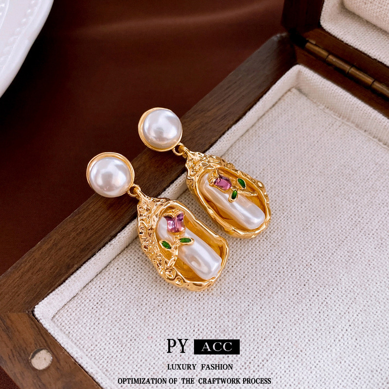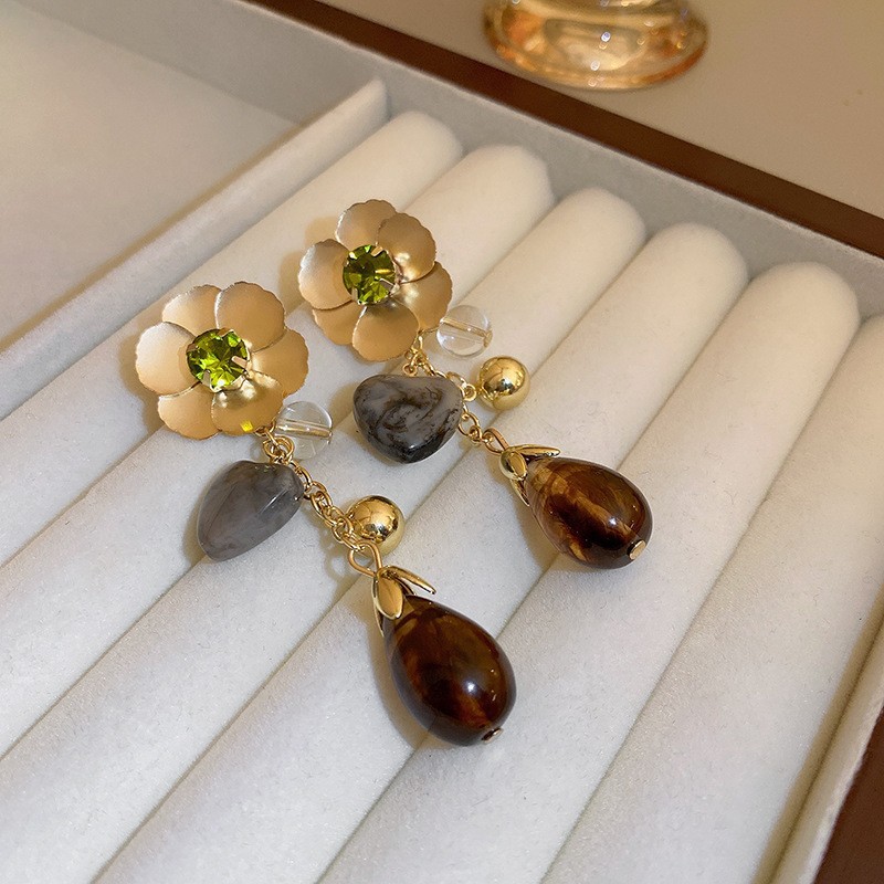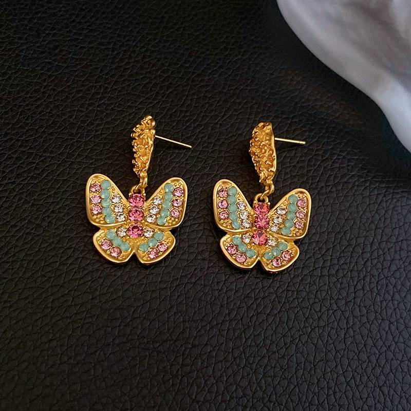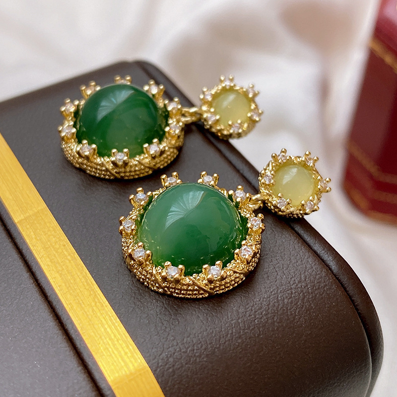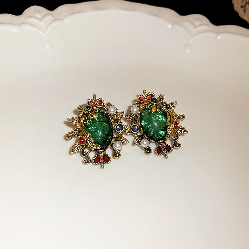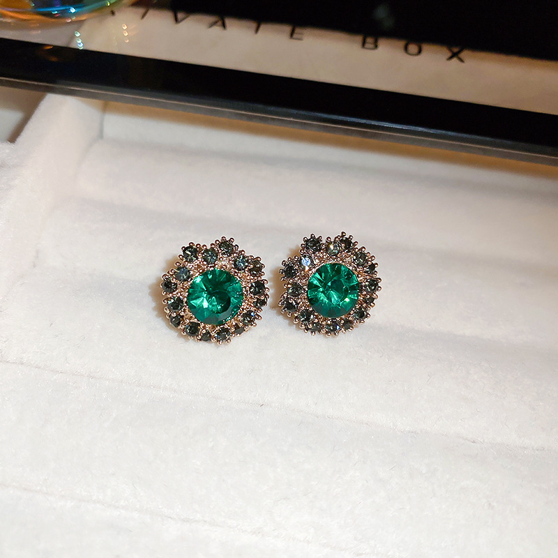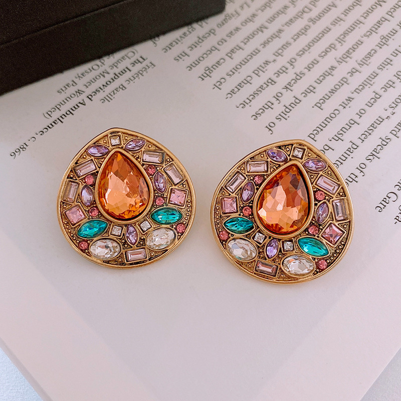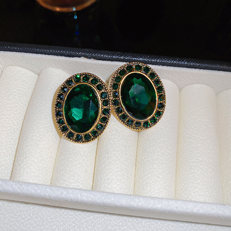 中古vintage银针锆石耳环复古轻奢宫廷风耳钉小众高级感耳饰批发
