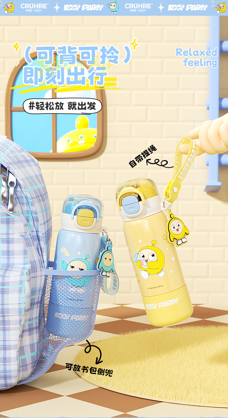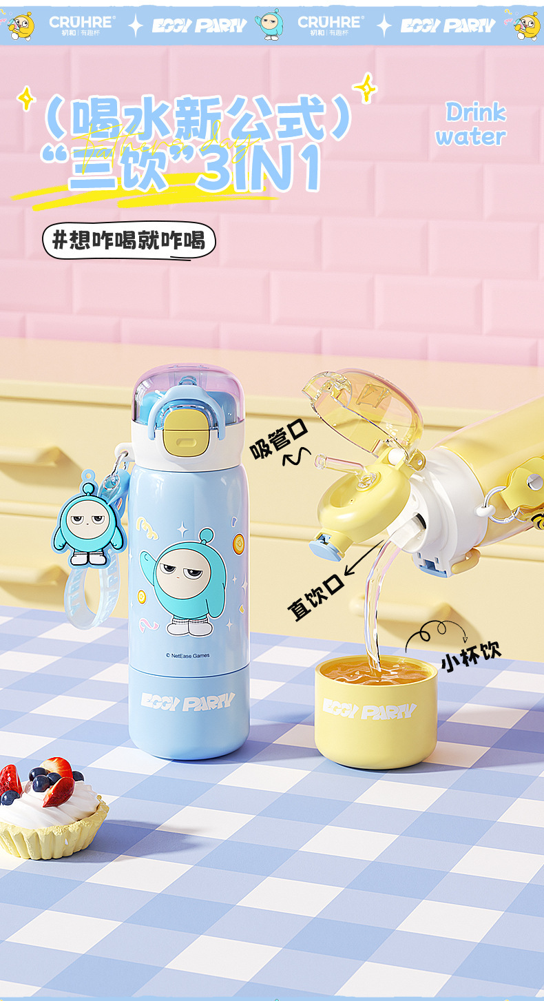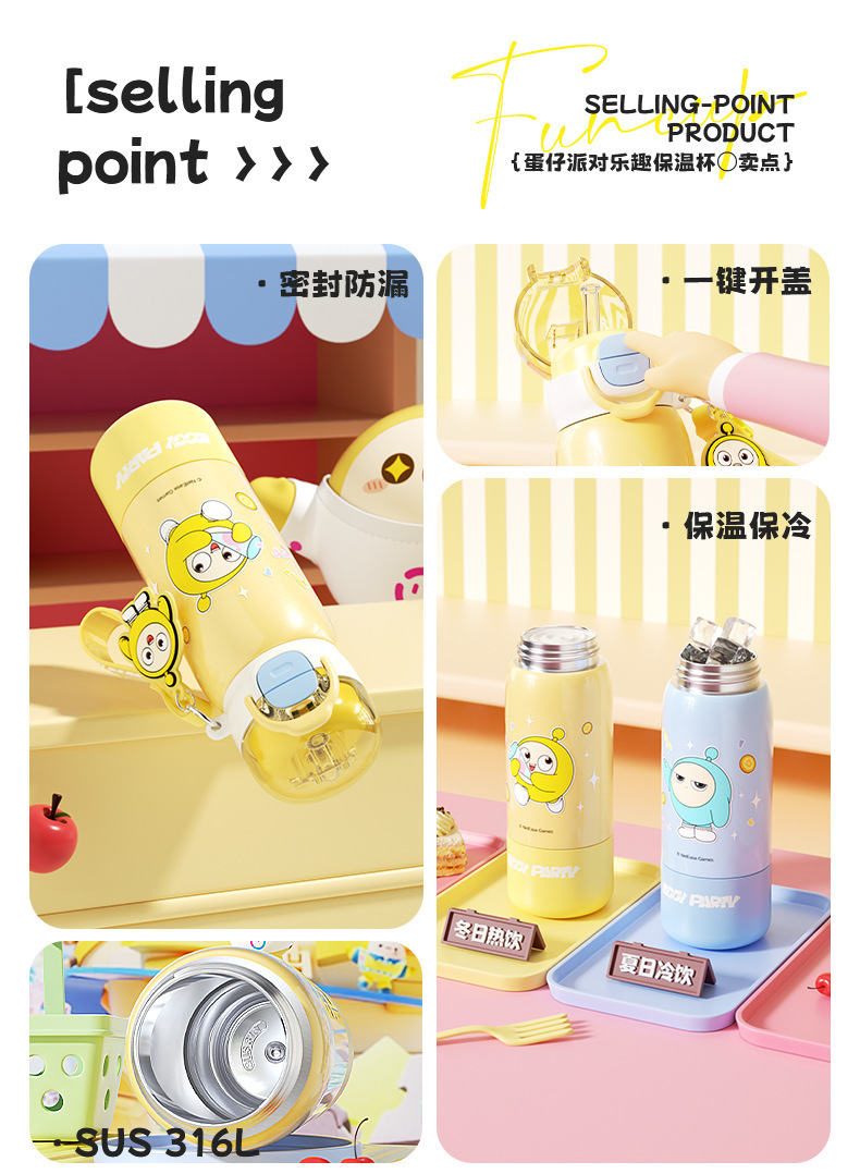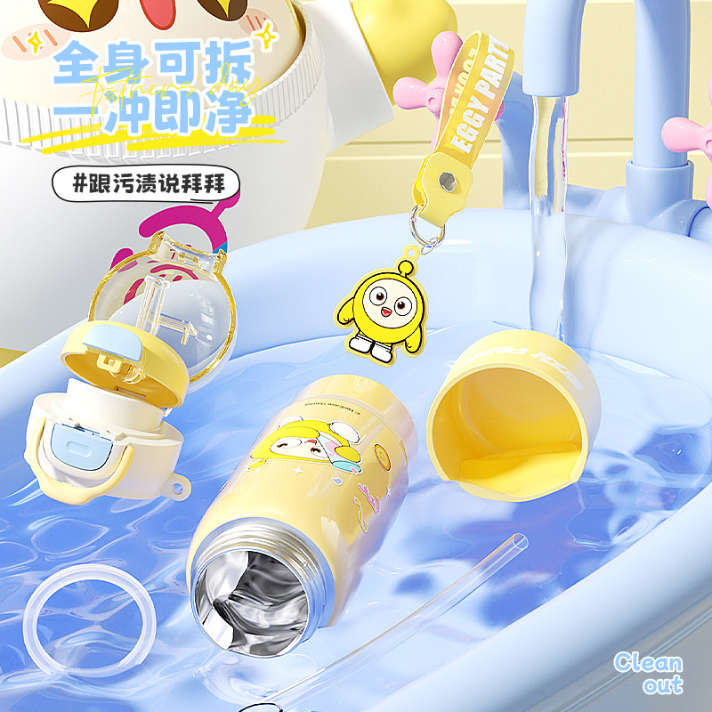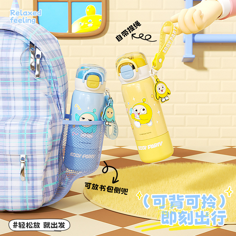 蛋仔派对家族系列儿童保温杯坚固提环双饮水杯书包侧兜男女学生