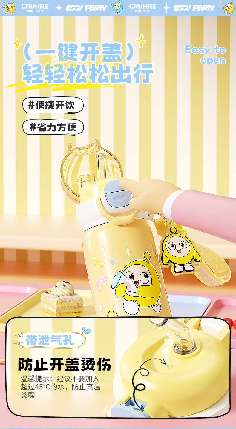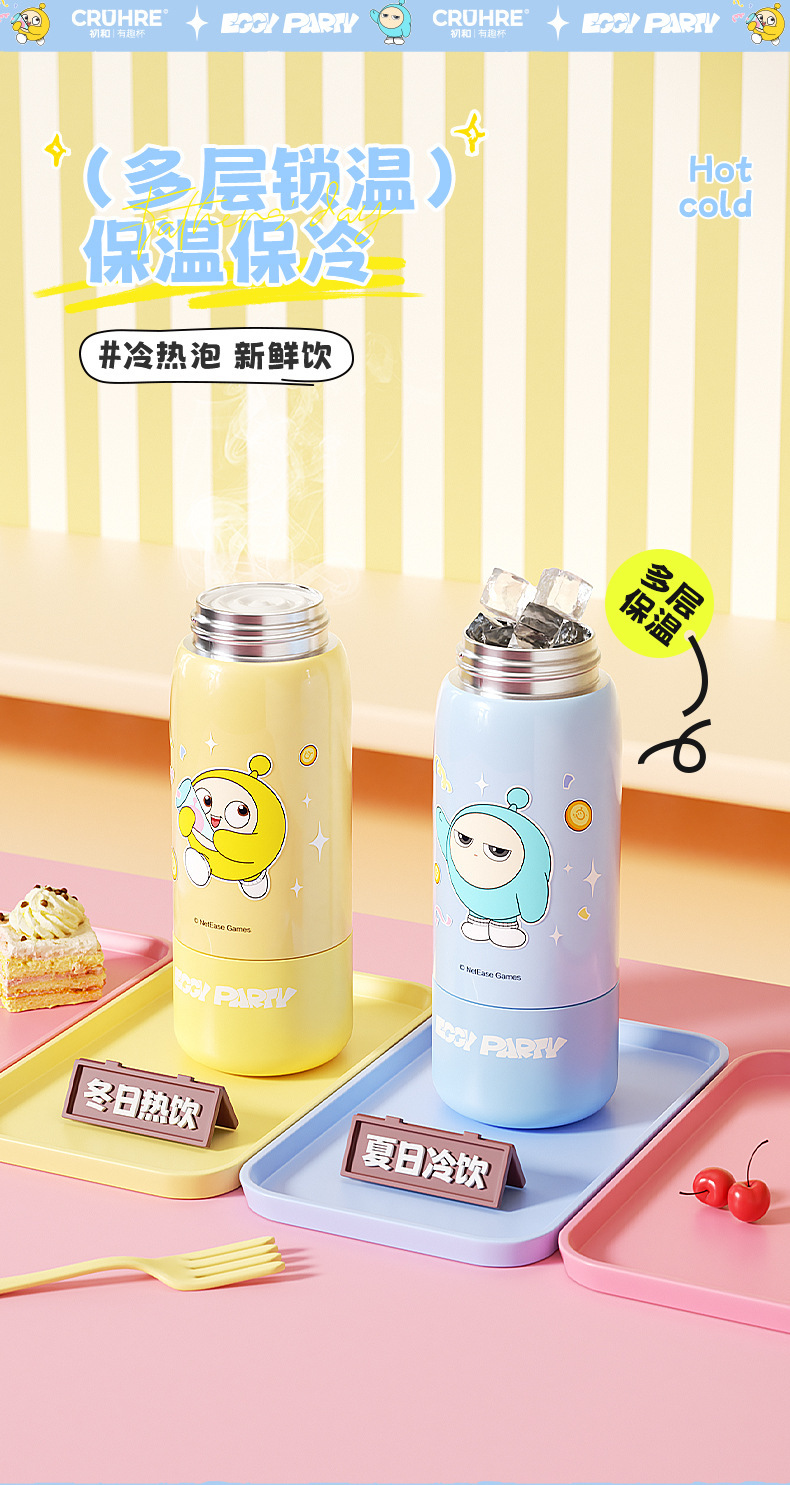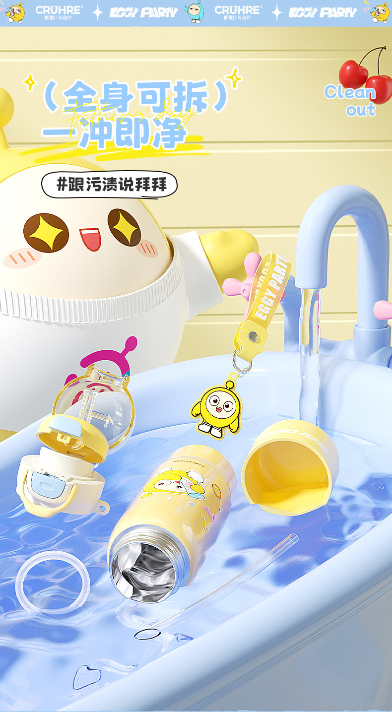 蛋仔派对家族系列儿童保温杯坚固提环双饮水杯书包侧兜男女学生