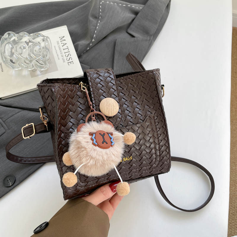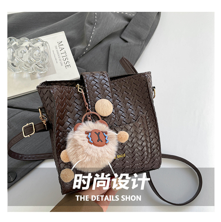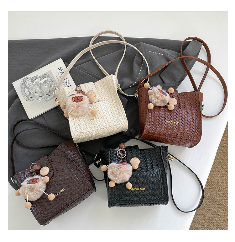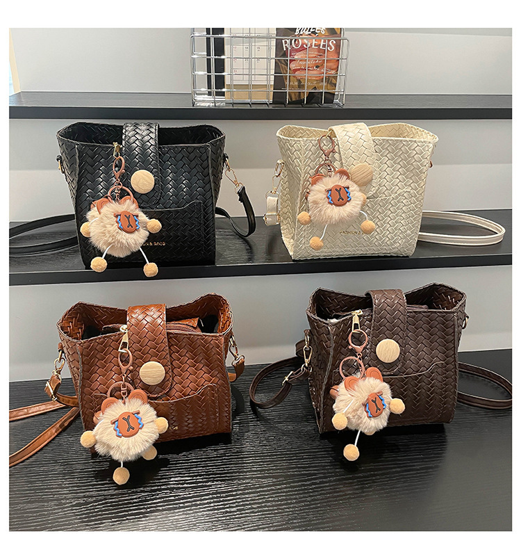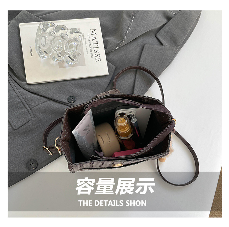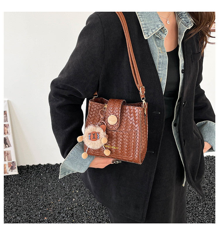 高级感百搭编织小包包女时尚通勤水桶包2026春季小众简约潮斜挎包
