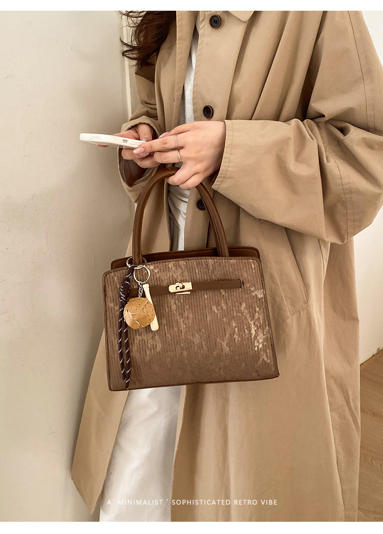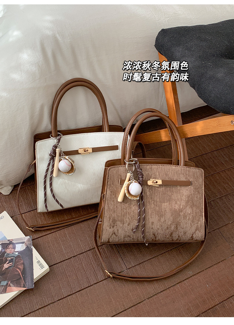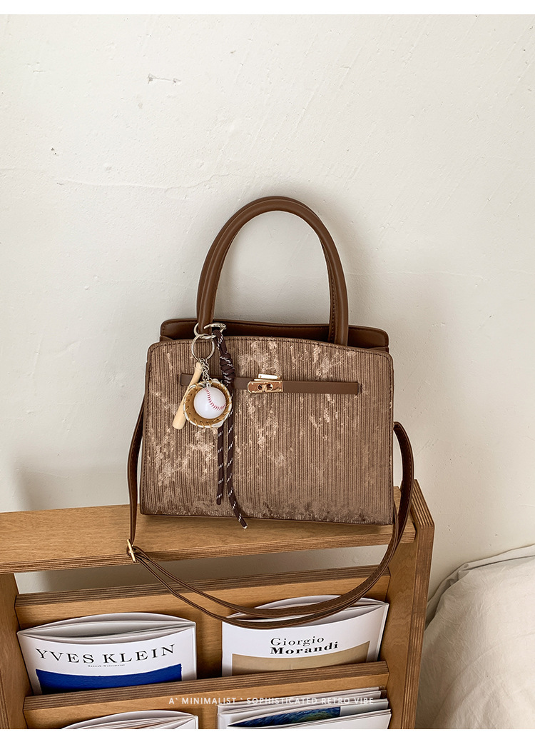 复古小众手提通勤包包女磨砂2026新款潮是麂皮绒方包单肩腋下包