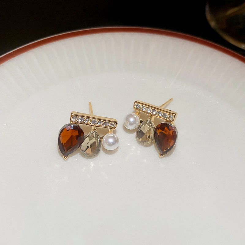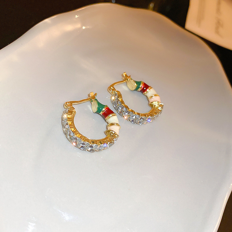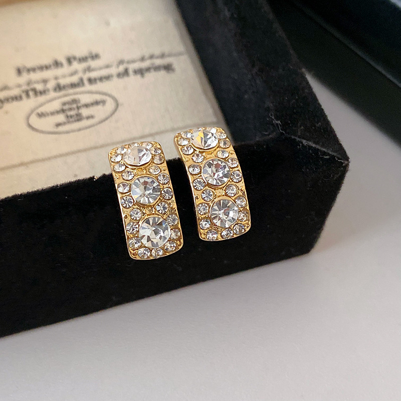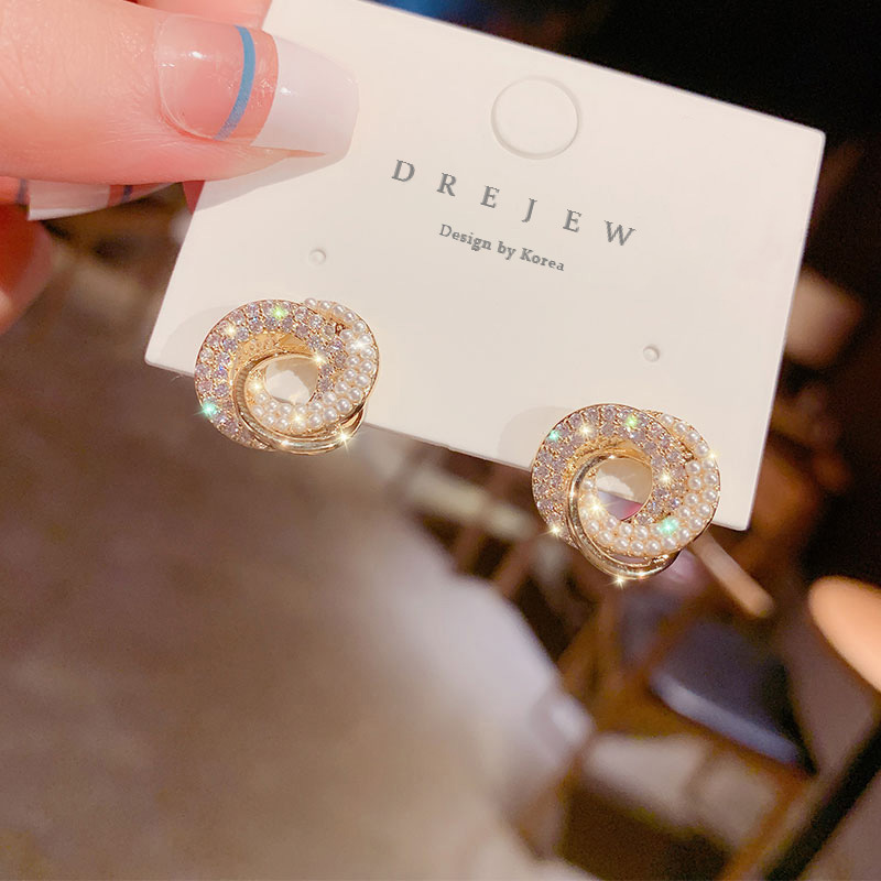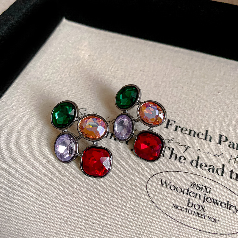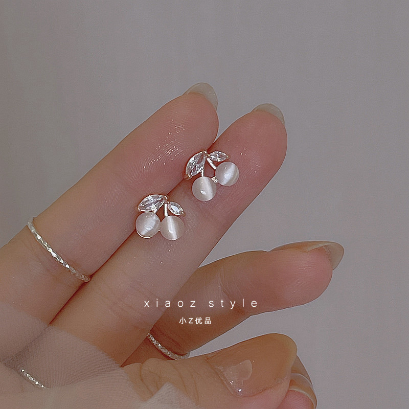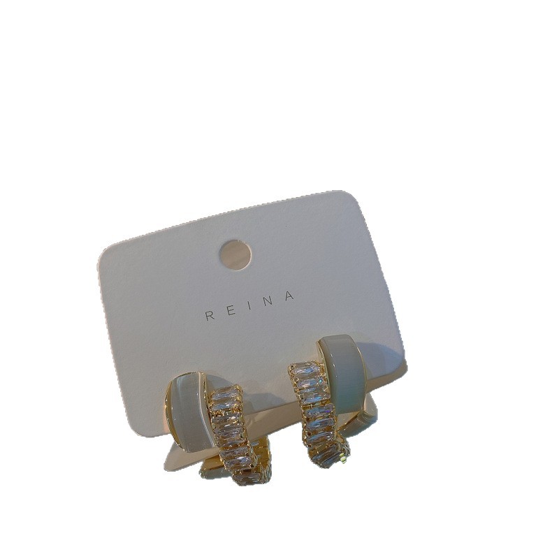 低价清仓~法式双层猫眼石锆石耳环轻奢高级感耳钉精致百搭耳饰女