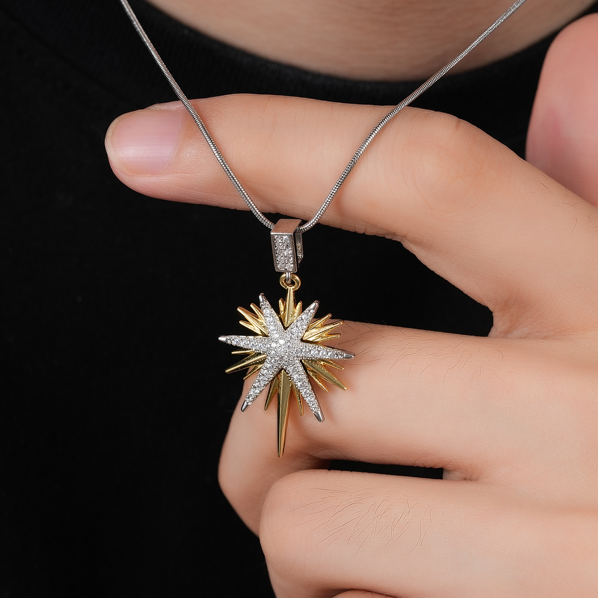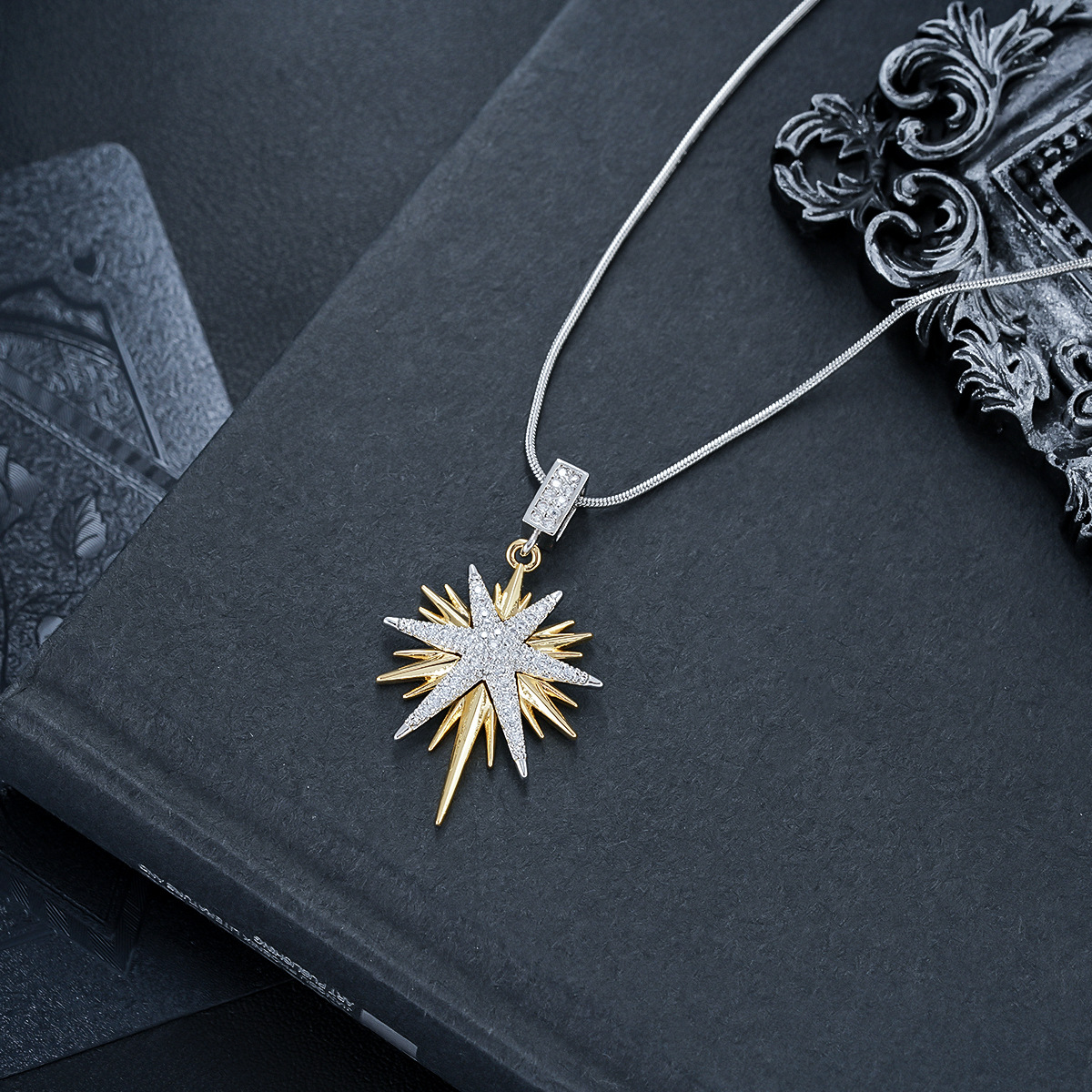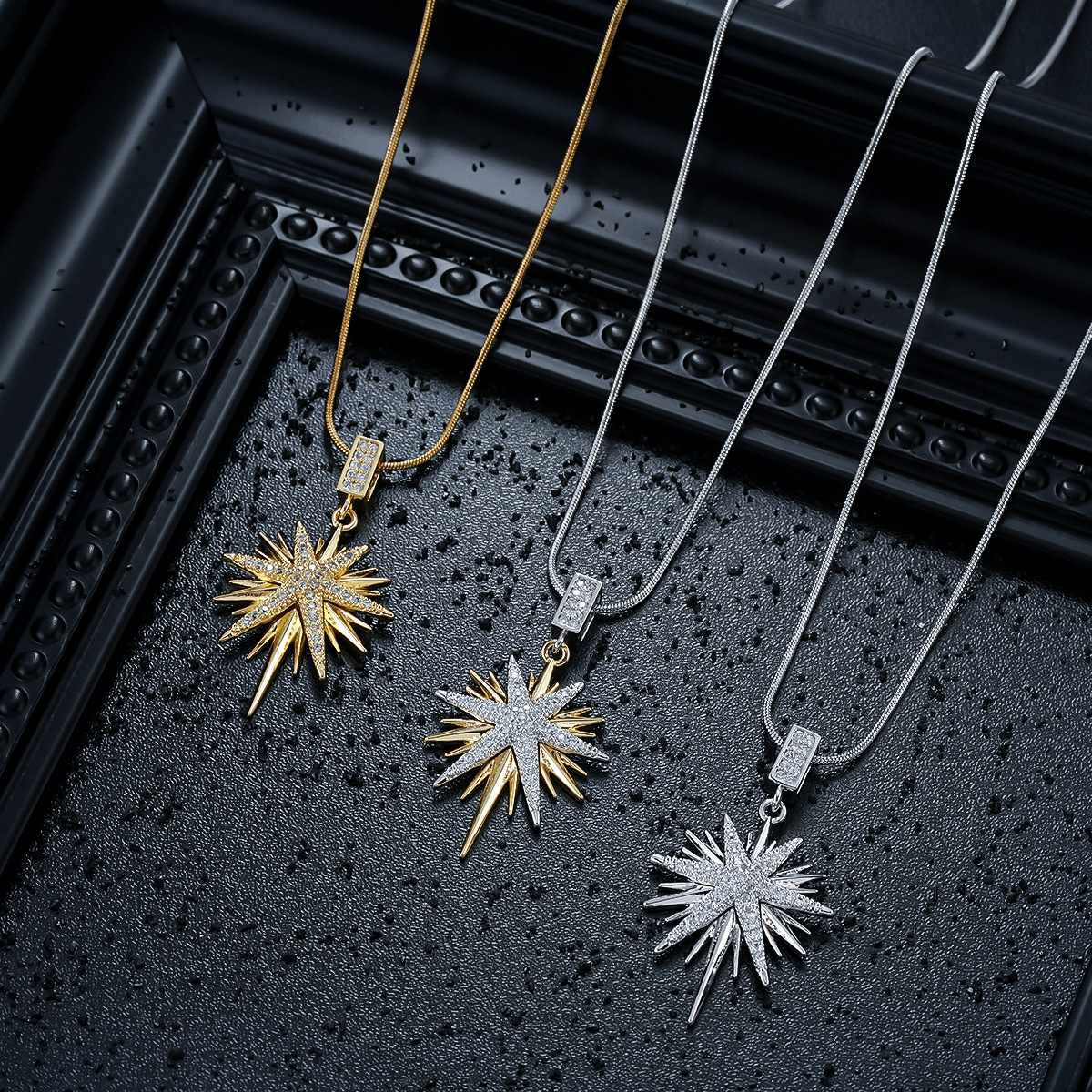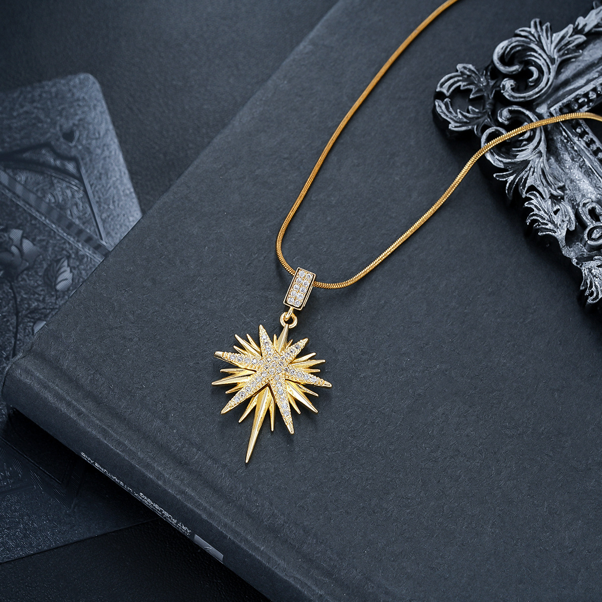 项链男女跨境新款时尚百搭八芒星铜镀金镶锆石吊坠颈链钛钢锁骨链