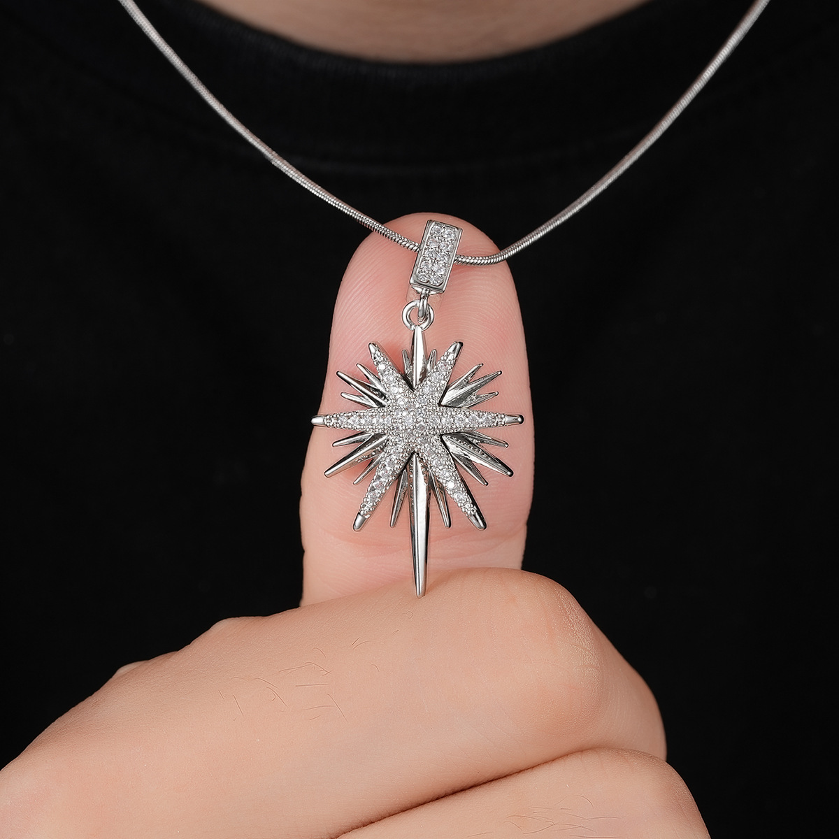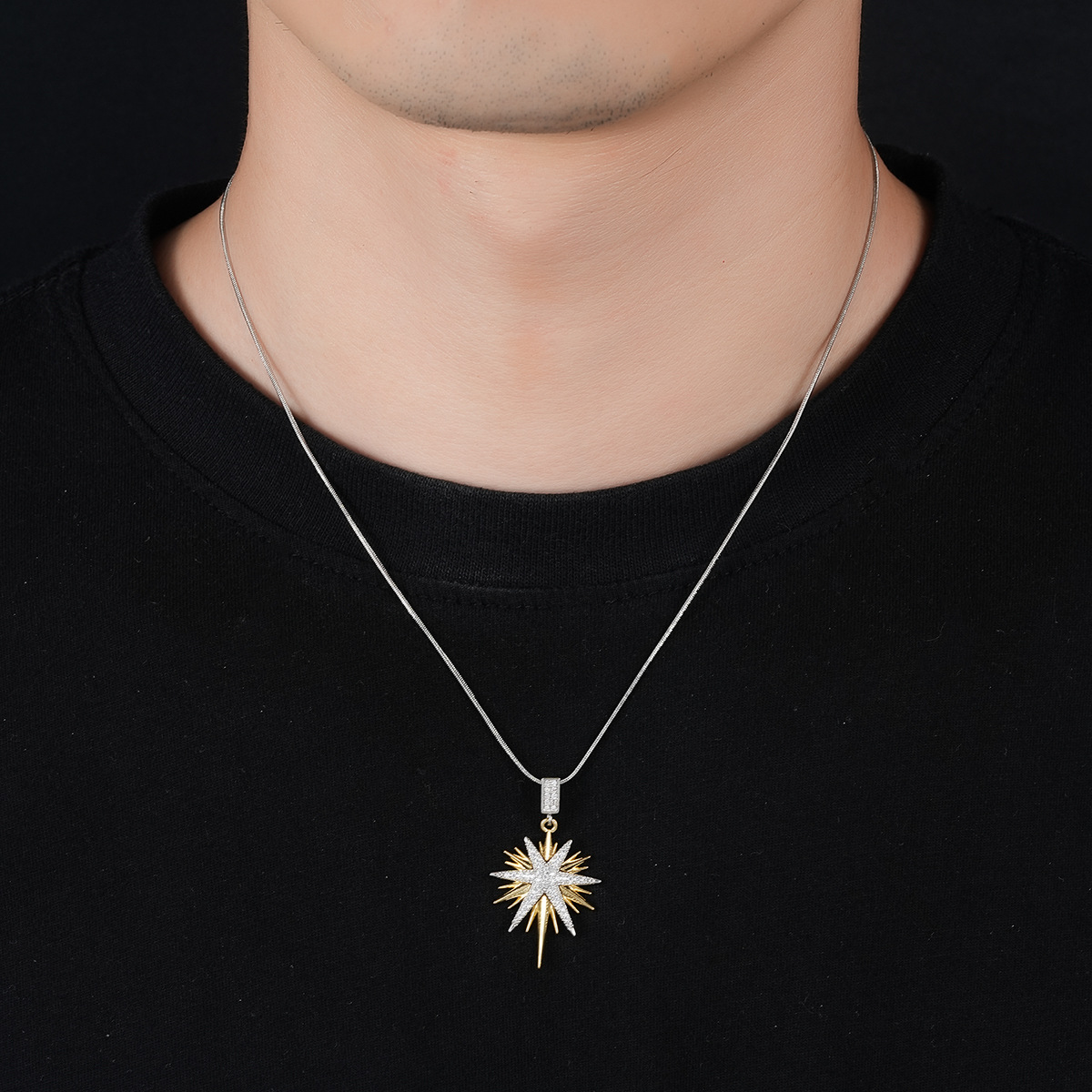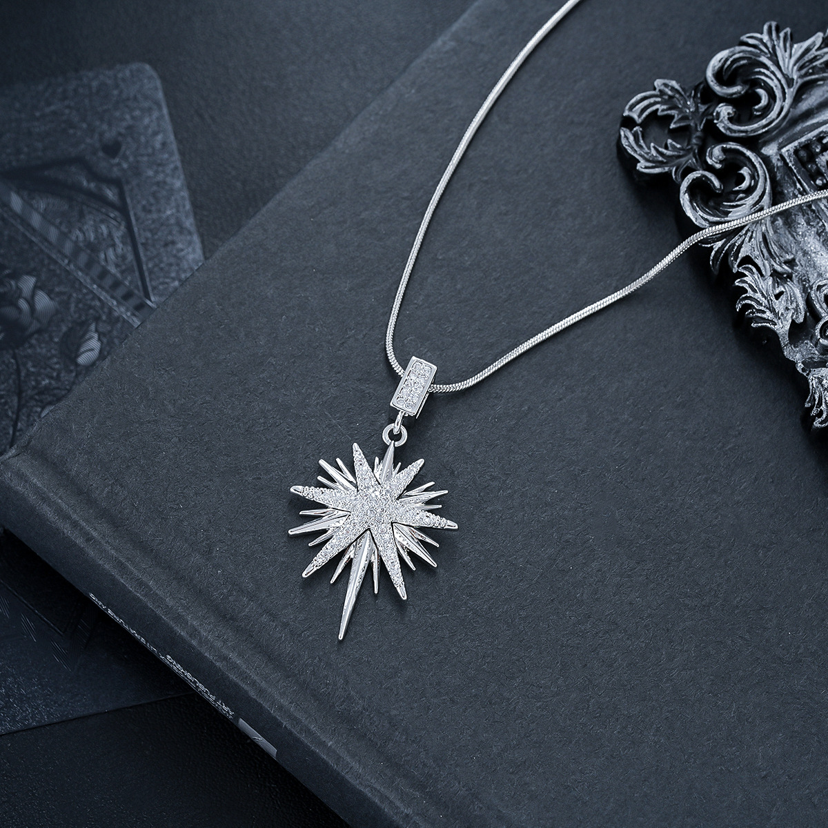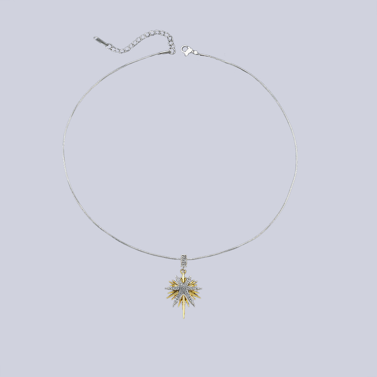 项链男女跨境新款时尚百搭八芒星铜镀金镶锆石吊坠颈链钛钢锁骨链