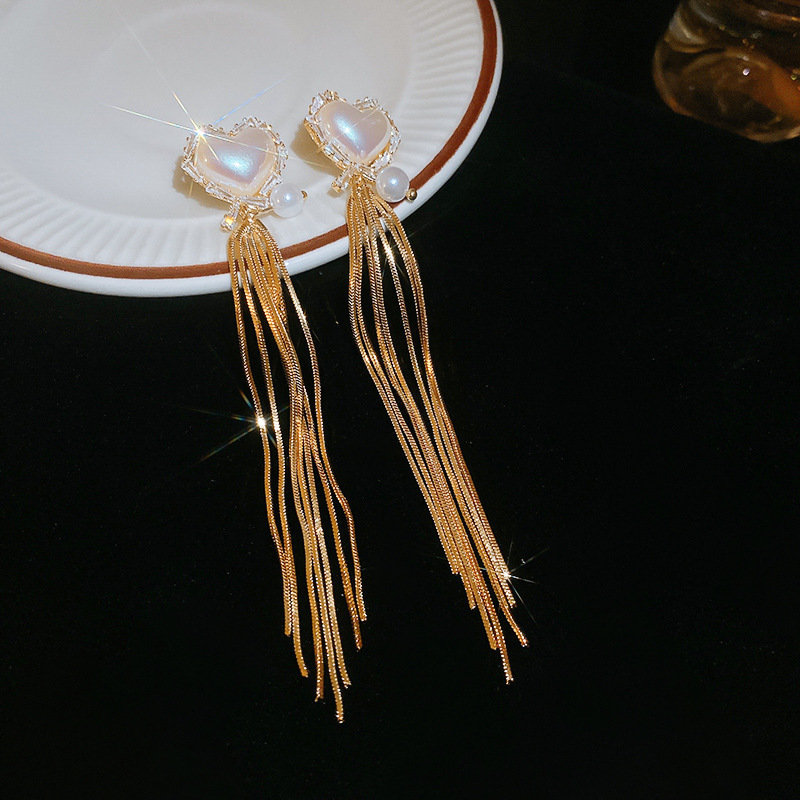 法式复古珍珠流苏耳环夸张小众高级感耳坠时尚百搭气质耳饰批发女