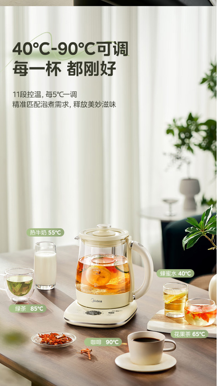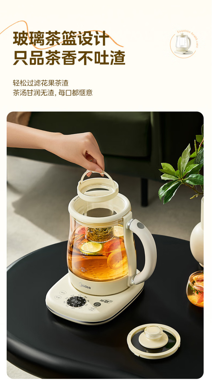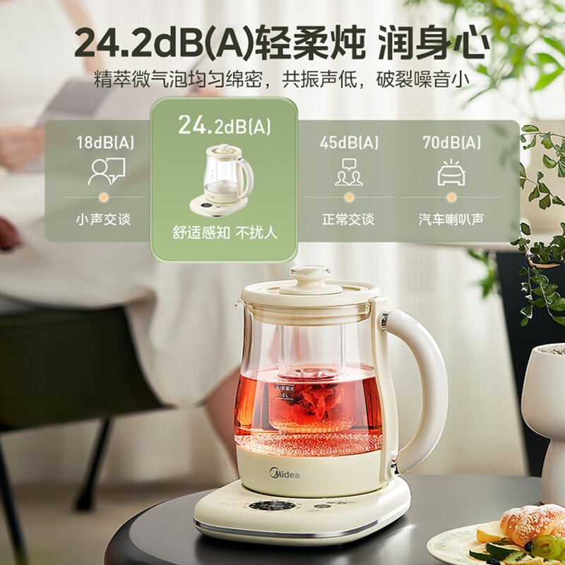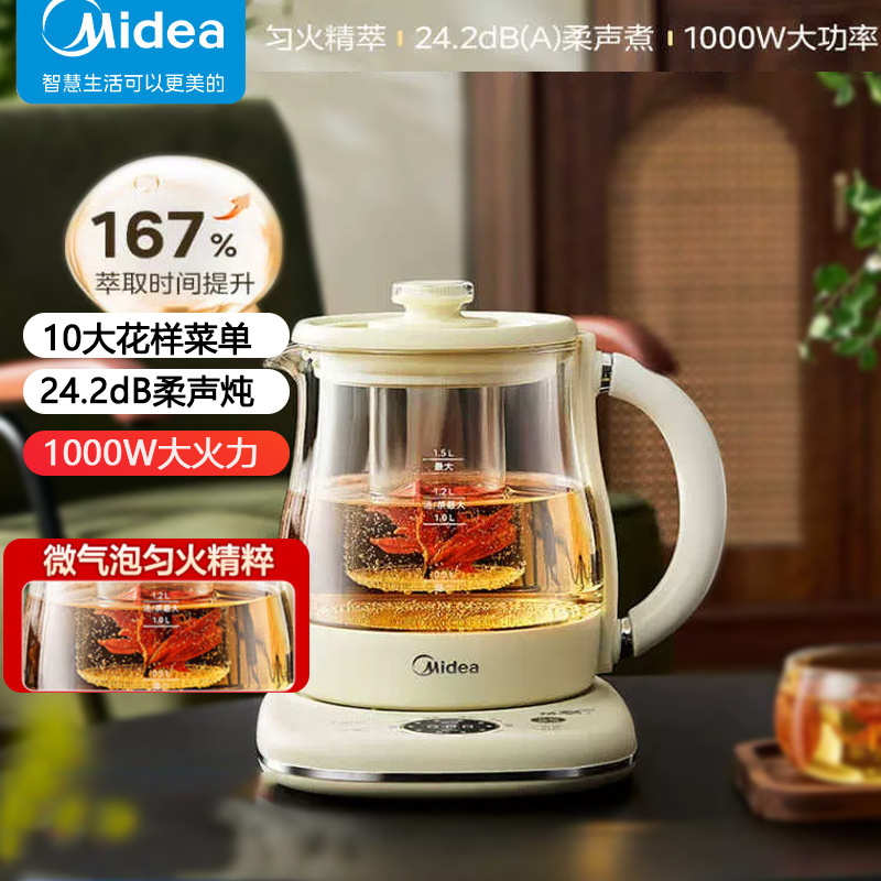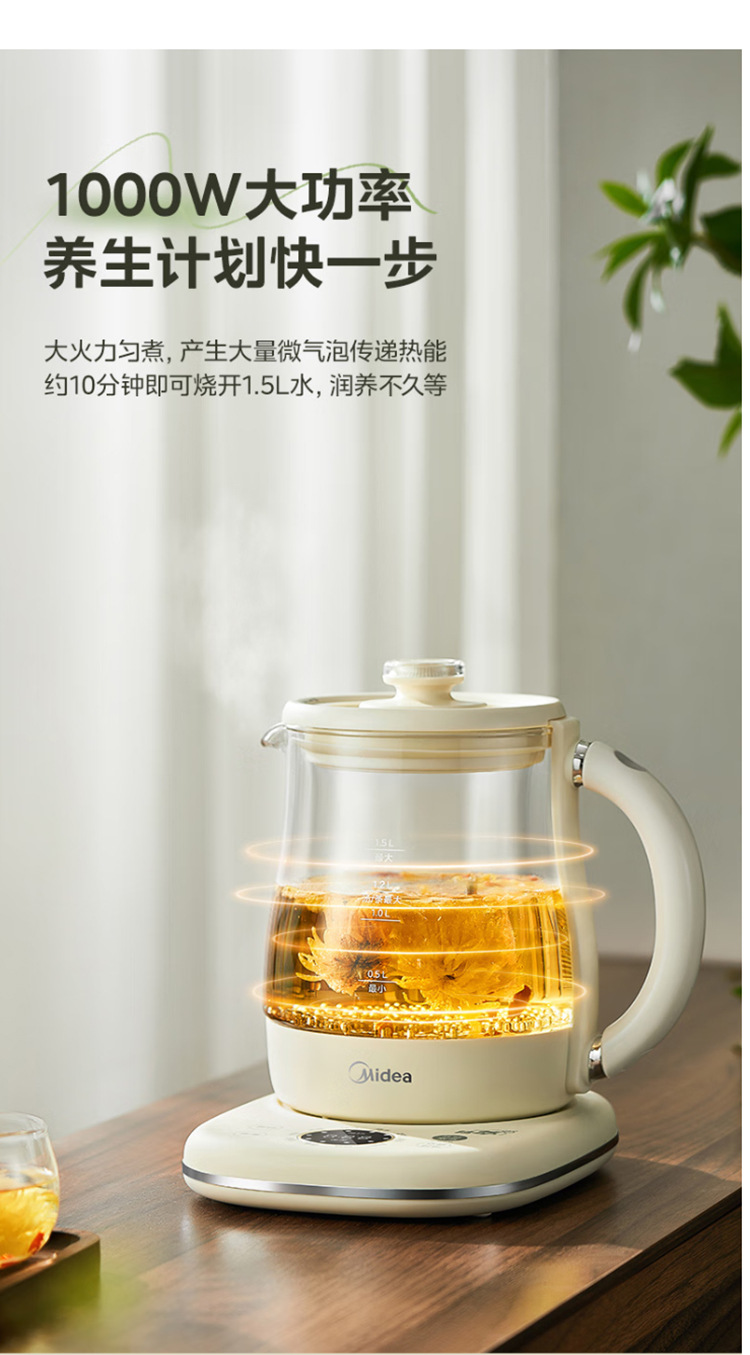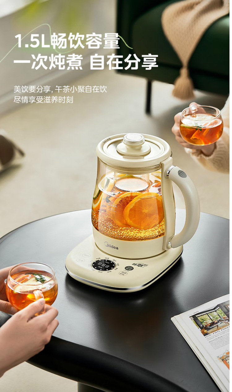 美的电热养生壶办公室家用全自动加厚玻璃保温多功能煮烧水壶