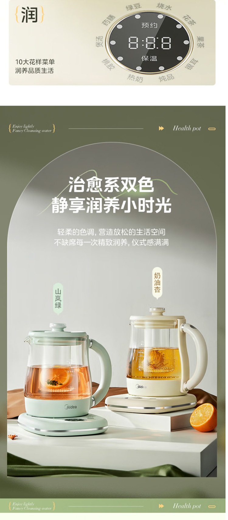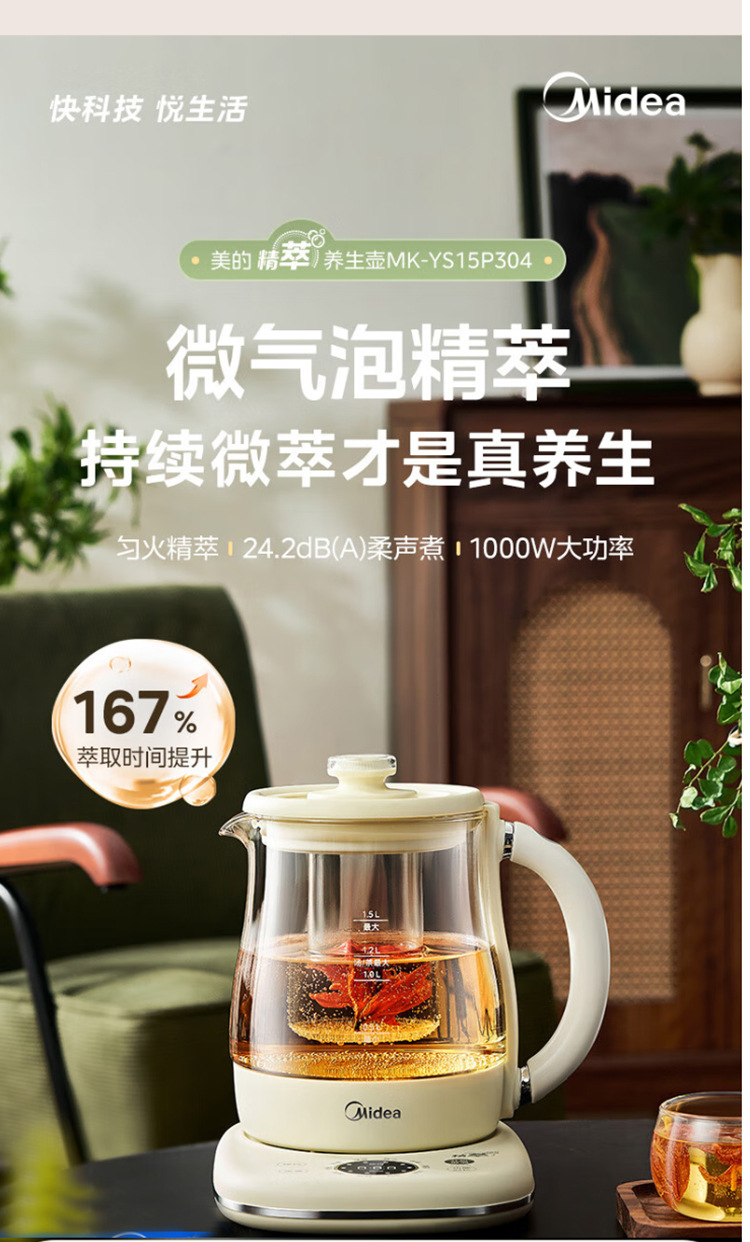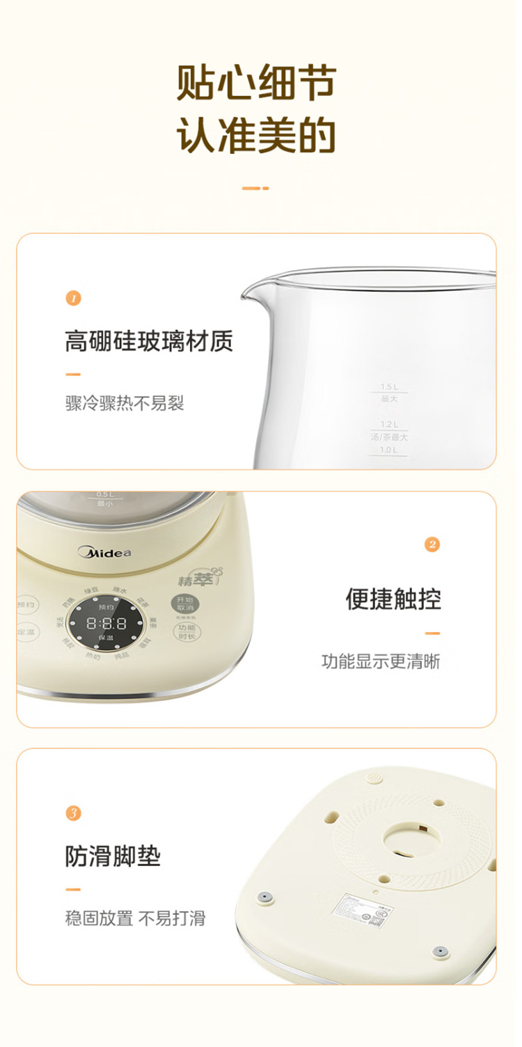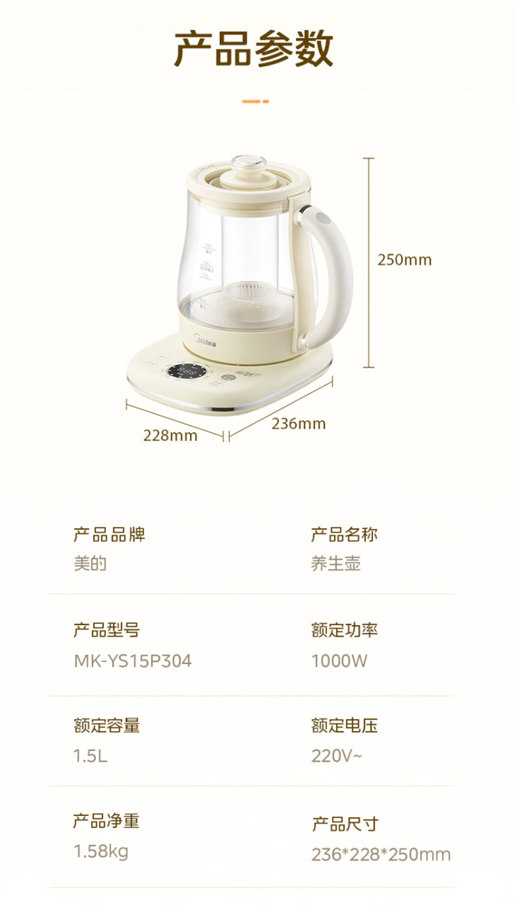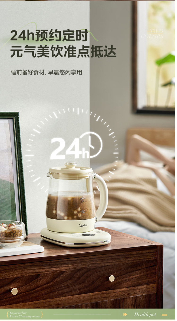 美的电热养生壶办公室家用全自动加厚玻璃保温多功能煮烧水壶