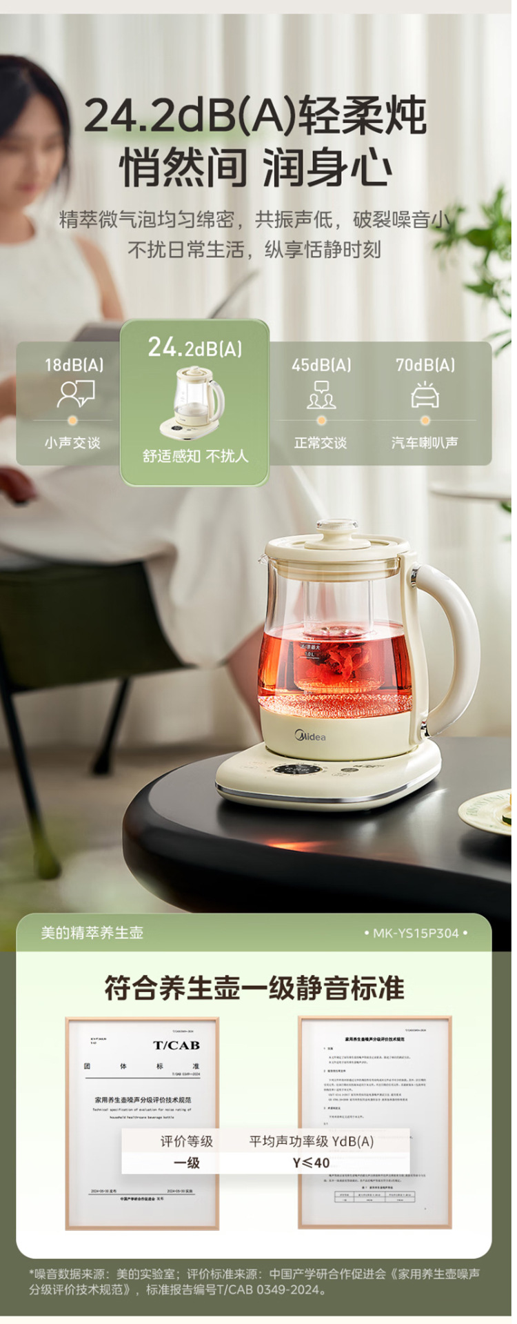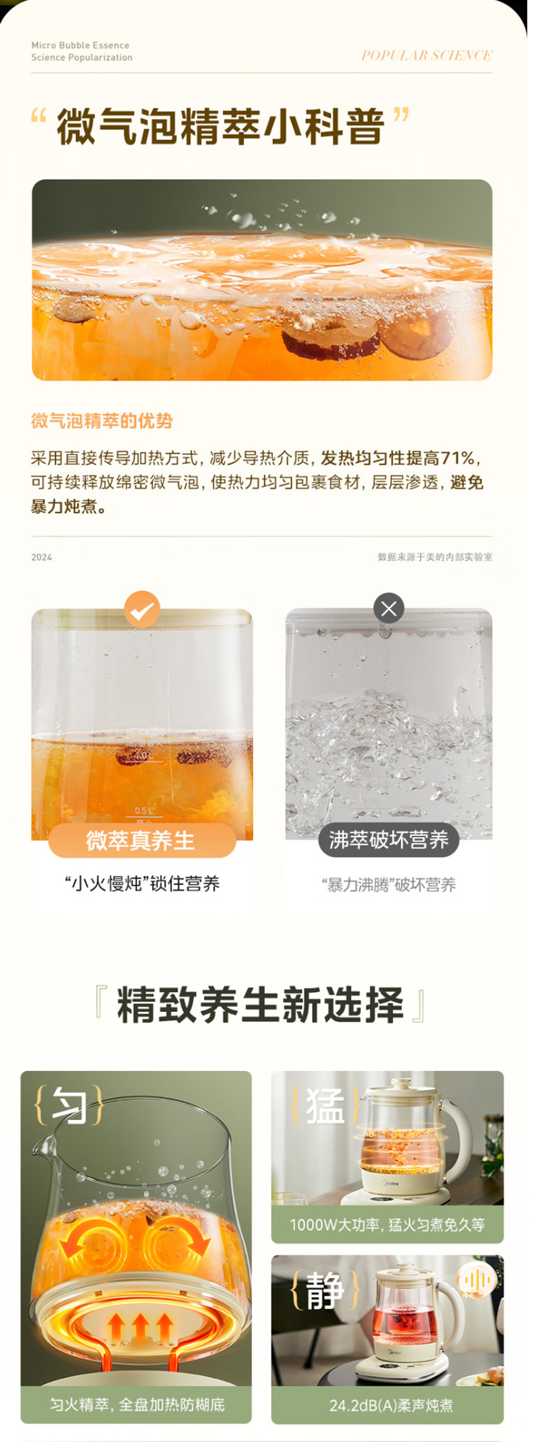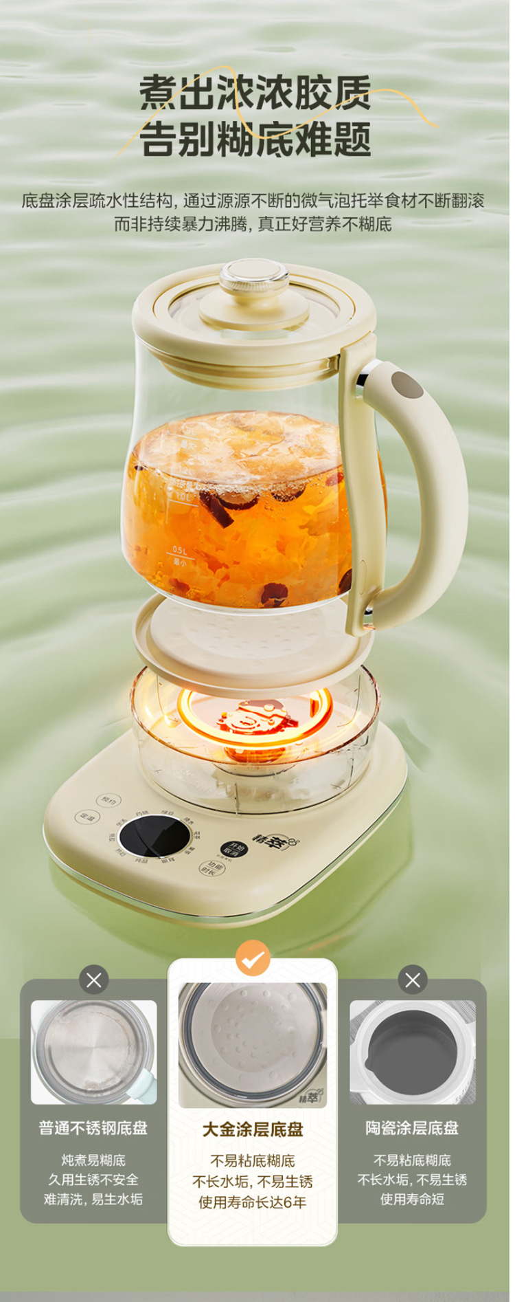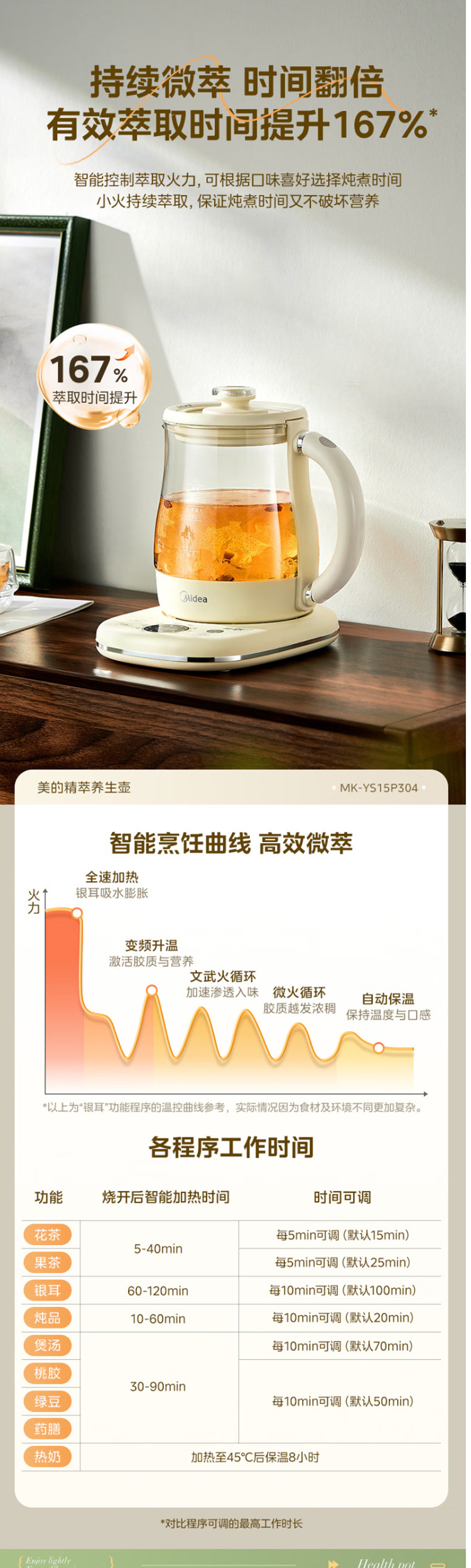 美的电热养生壶办公室家用全自动加厚玻璃保温多功能煮烧水壶