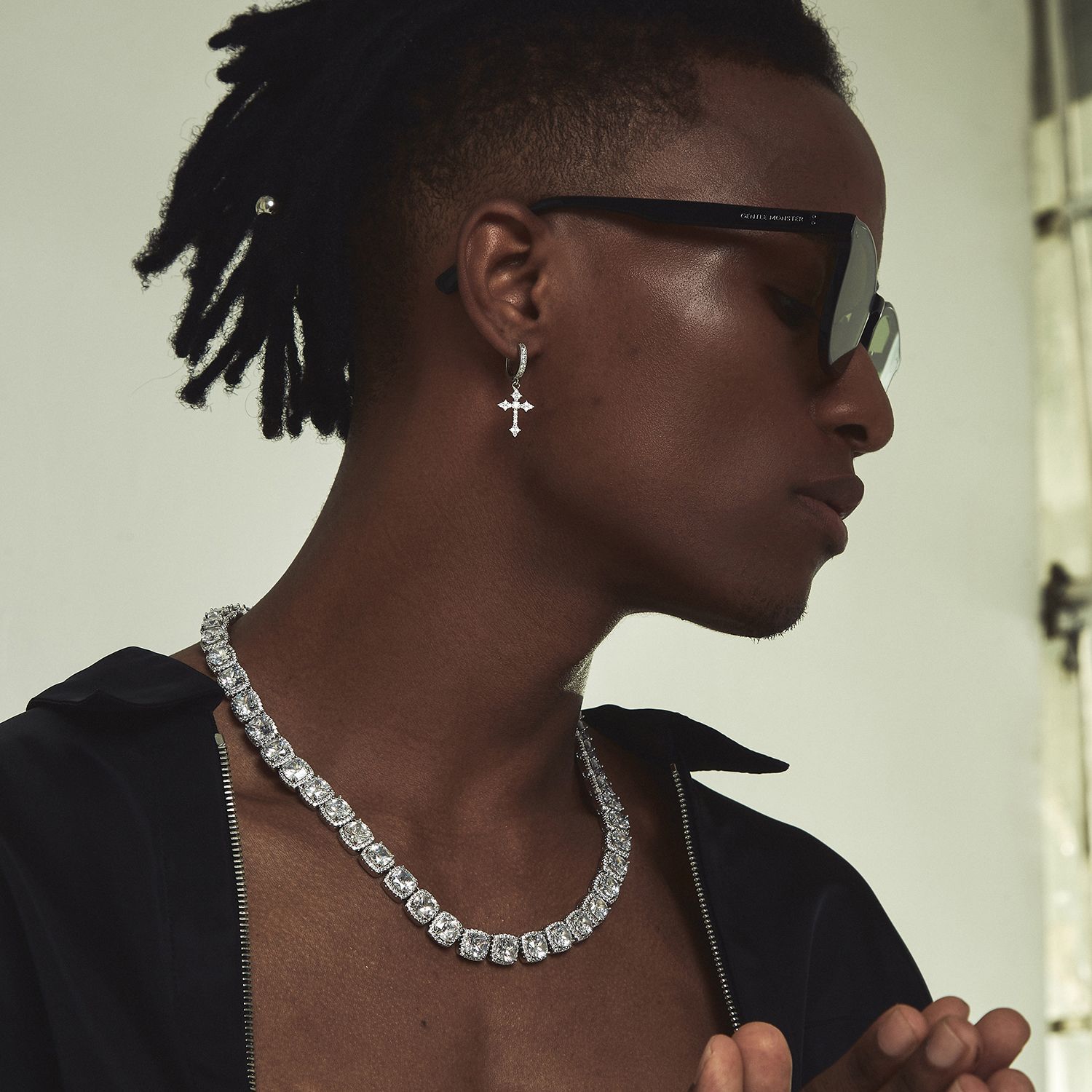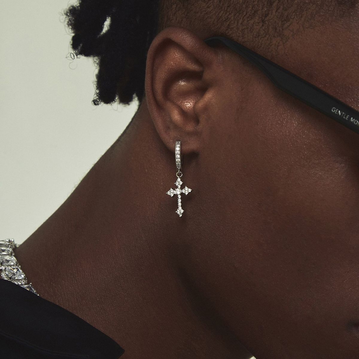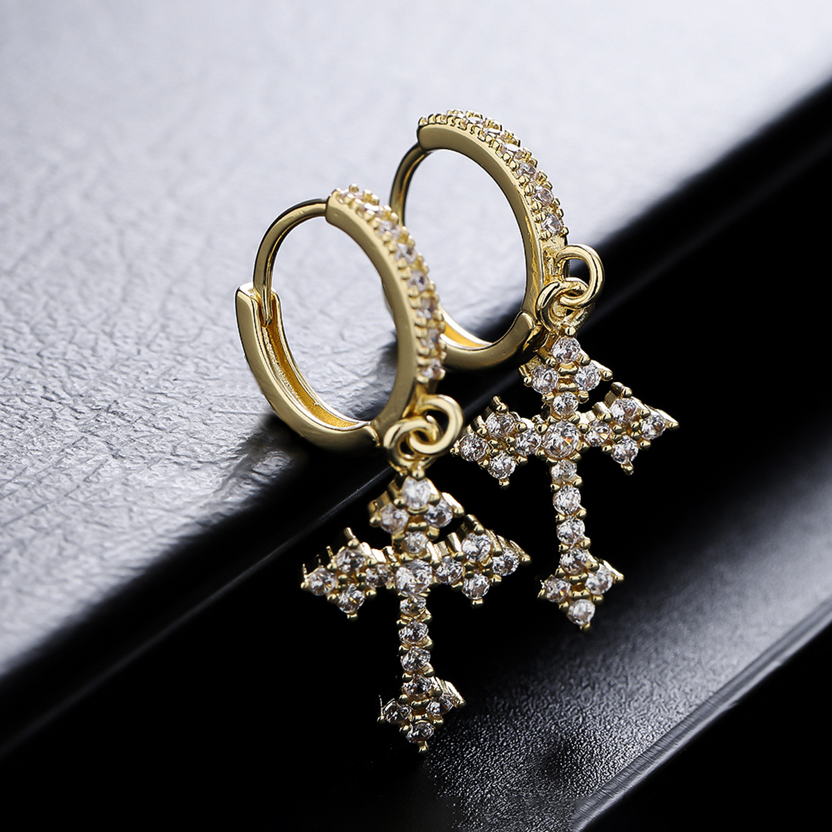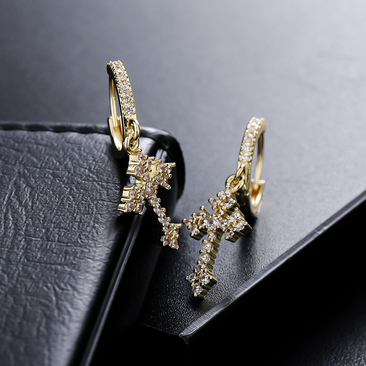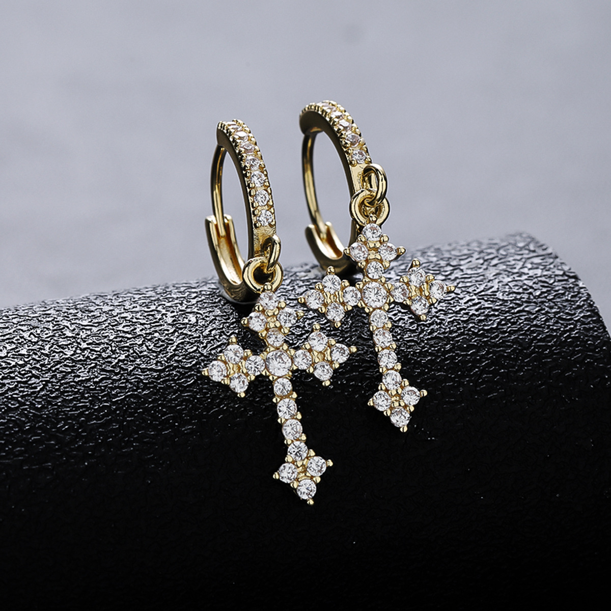 十字架耳钉男时尚欧美风小众潮流嘻哈个性男士耳扣设计高级感耳饰