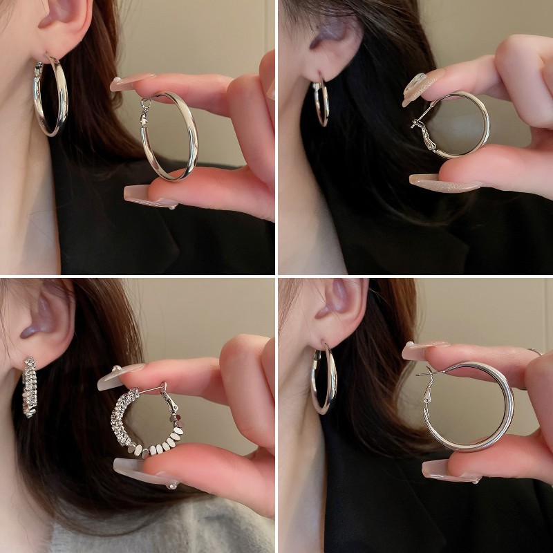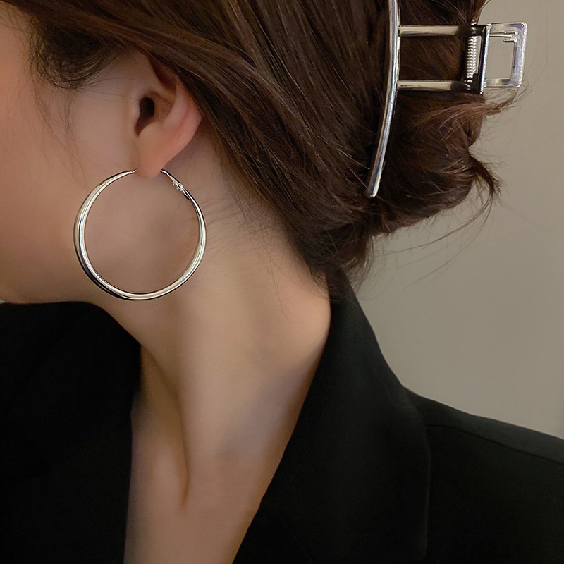 欧美银针冷淡风素圈耳环ins夸张高级感耳圈小众简约气质耳饰批发