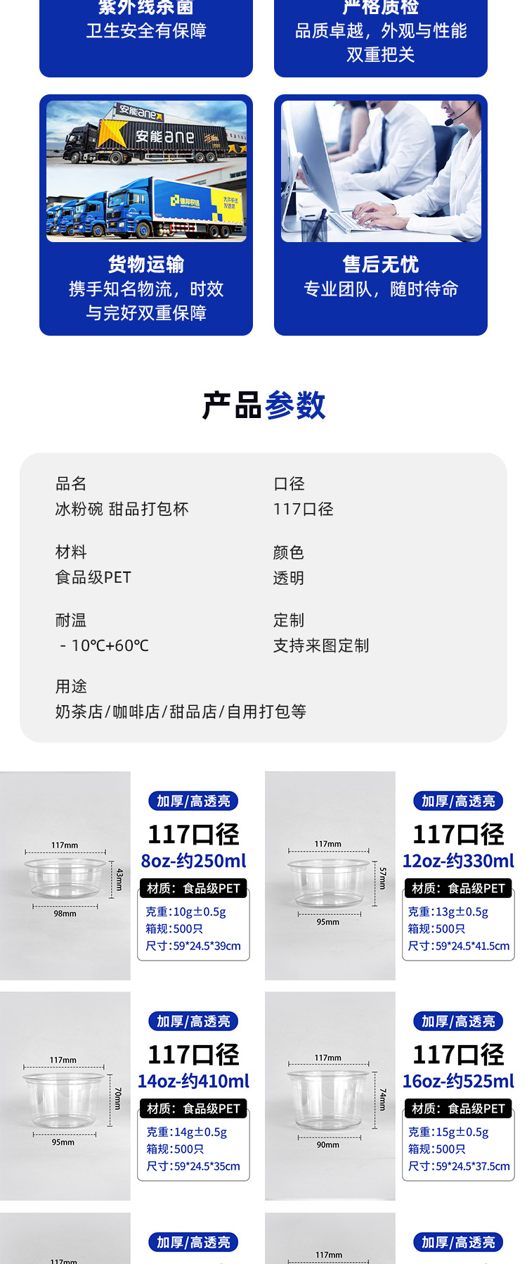 117口沙拉碗定制一次性冰粉杯子批有盖子打包杯碗甜品杯奶茶杯