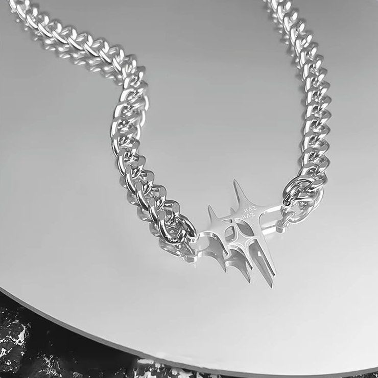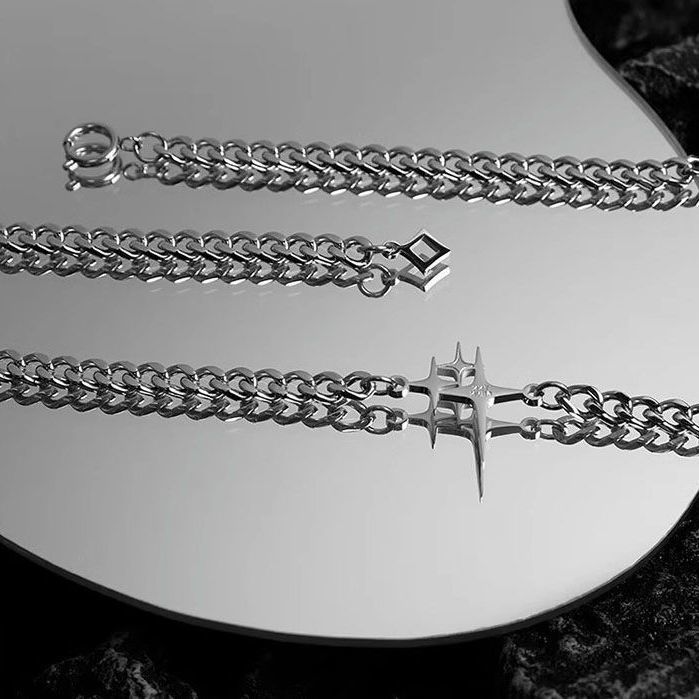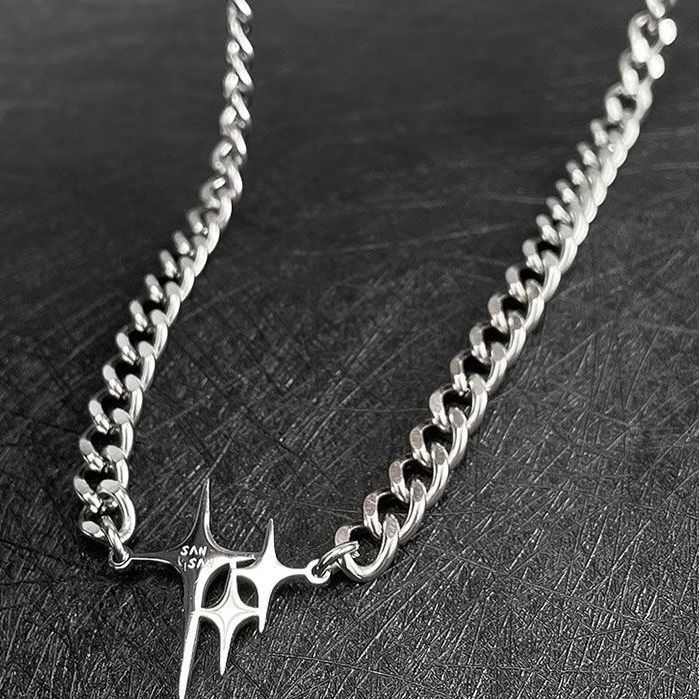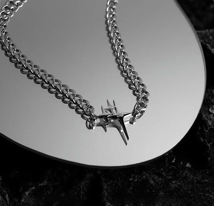 简约项链星芒百搭古巴吊坠设计小众高级感嘻哈痞帅钛钢男士配饰