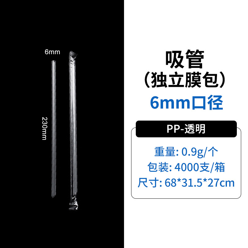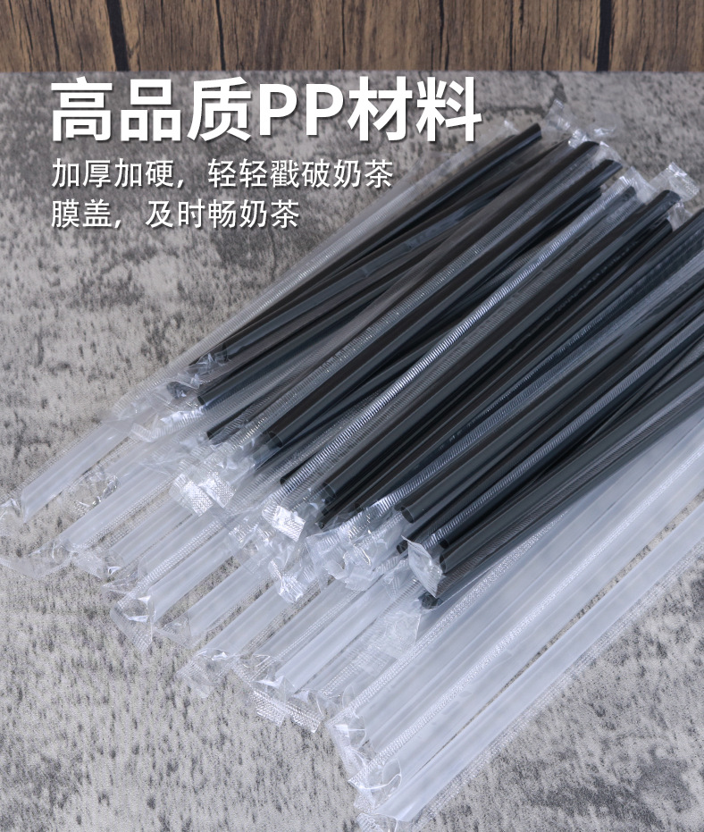 吸管独立包装PP透明塑料黑色珍珠奶茶粗23cmPP材质独立包装吸管