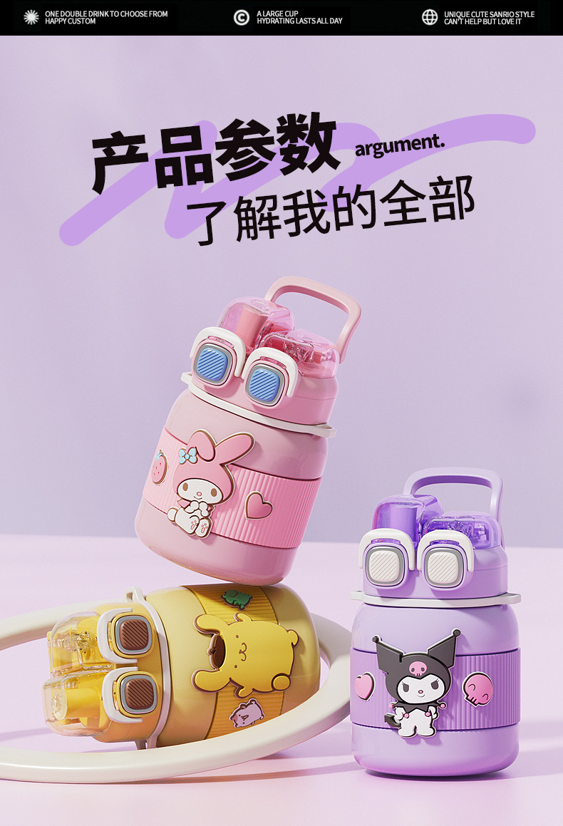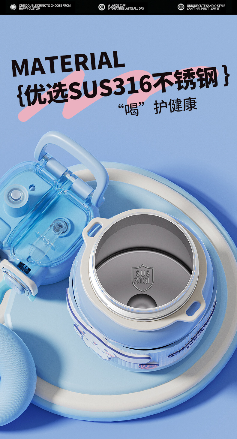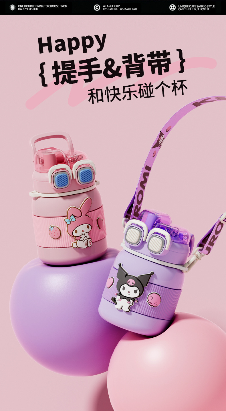三丽鸥库洛米保温杯便携随身杯容量学生运动水壶双饮杯子生日