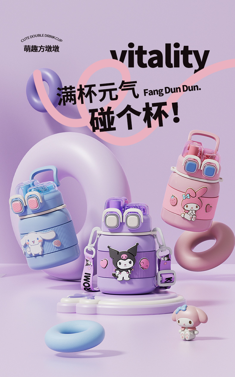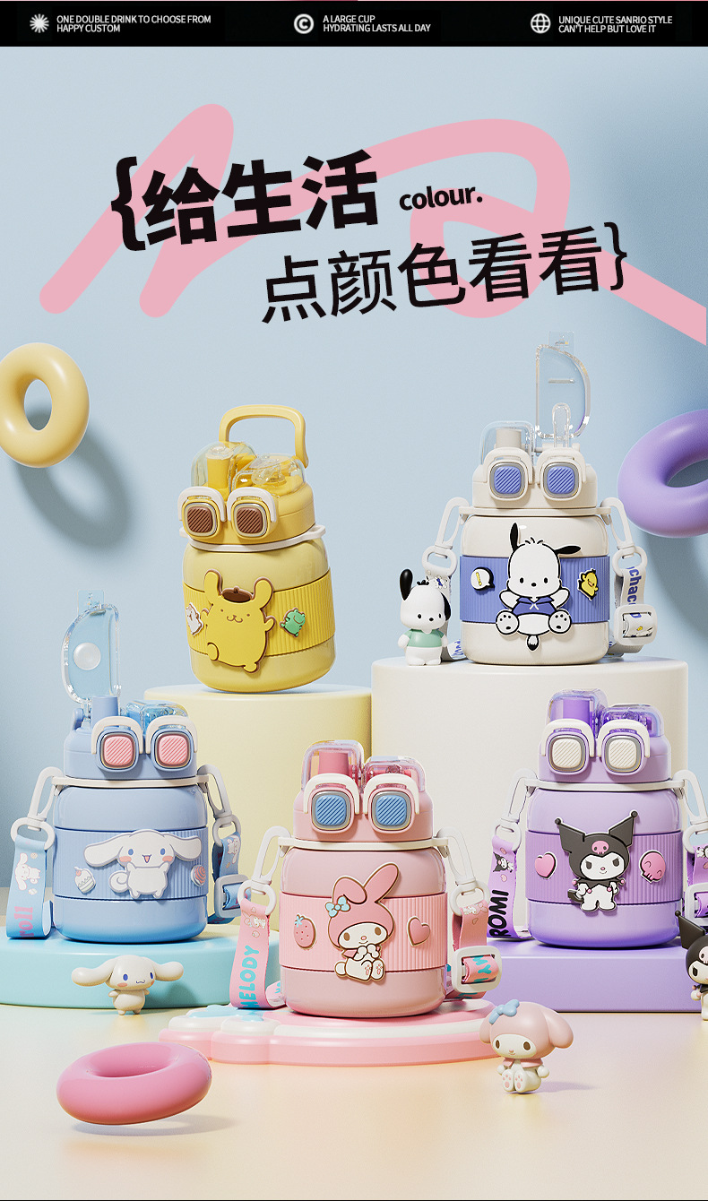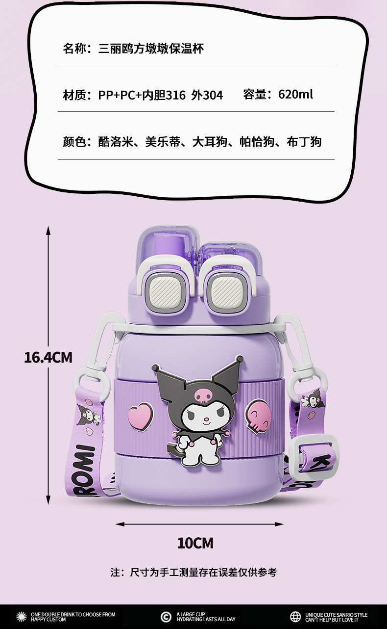 三丽鸥库洛米保温杯便携随身杯容量学生运动水壶双饮杯子生日