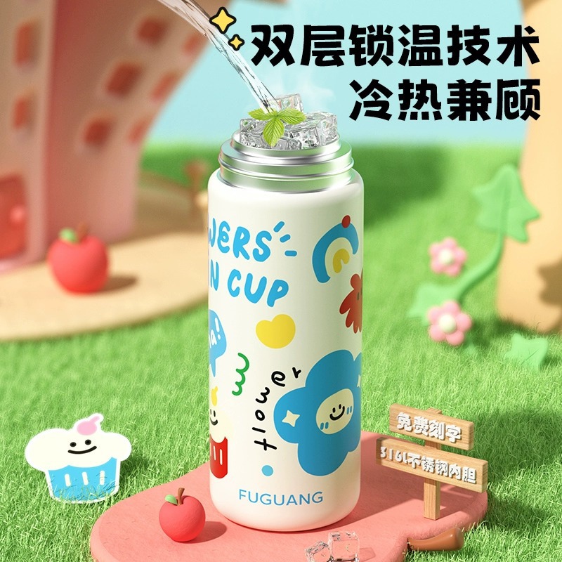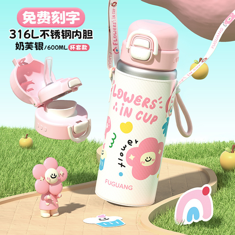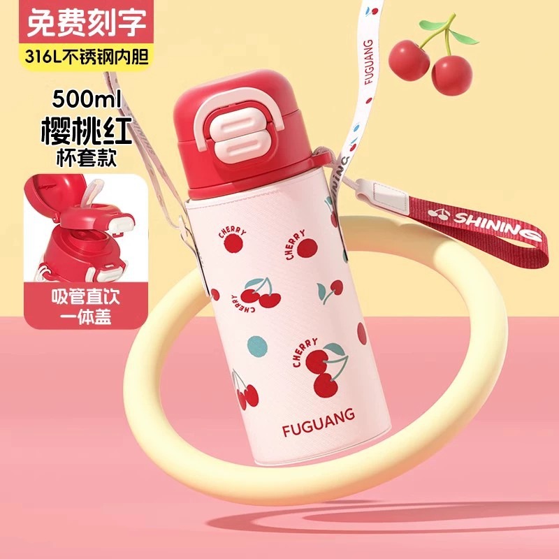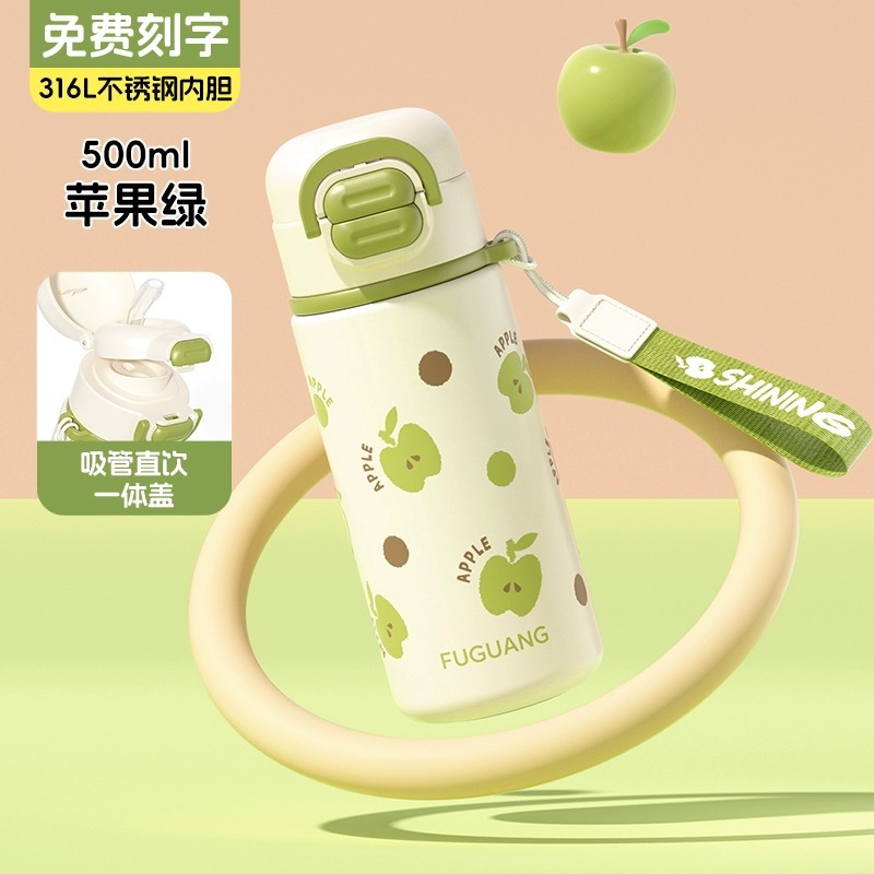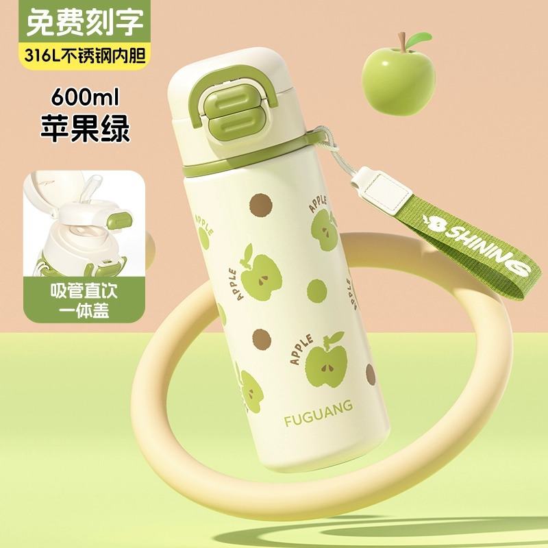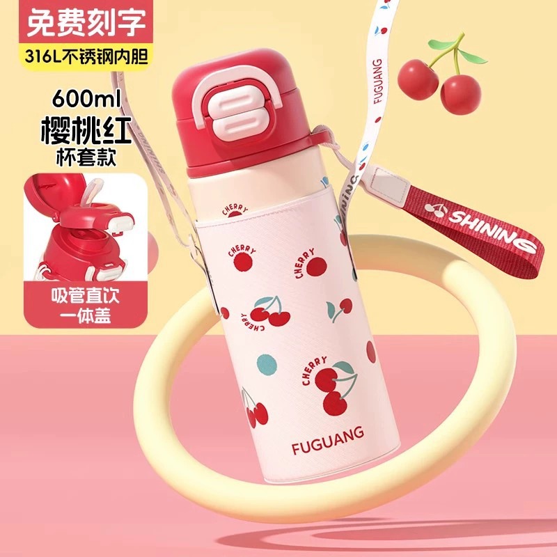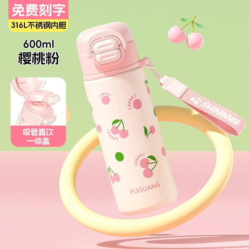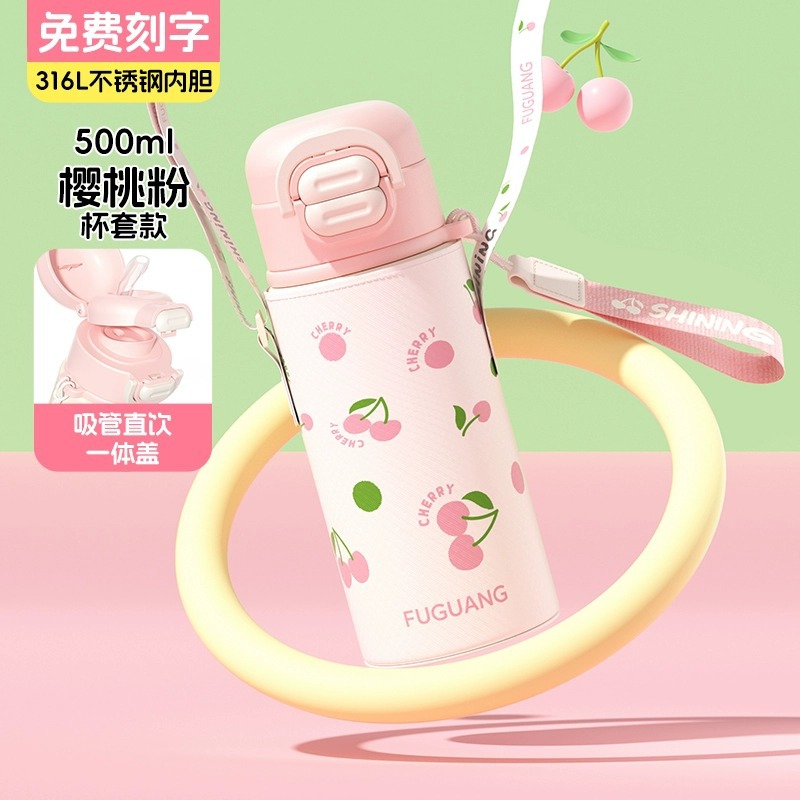 富光双饮保温杯316L不锈钢杯子男女学生专用户外便携提绳水杯吸管