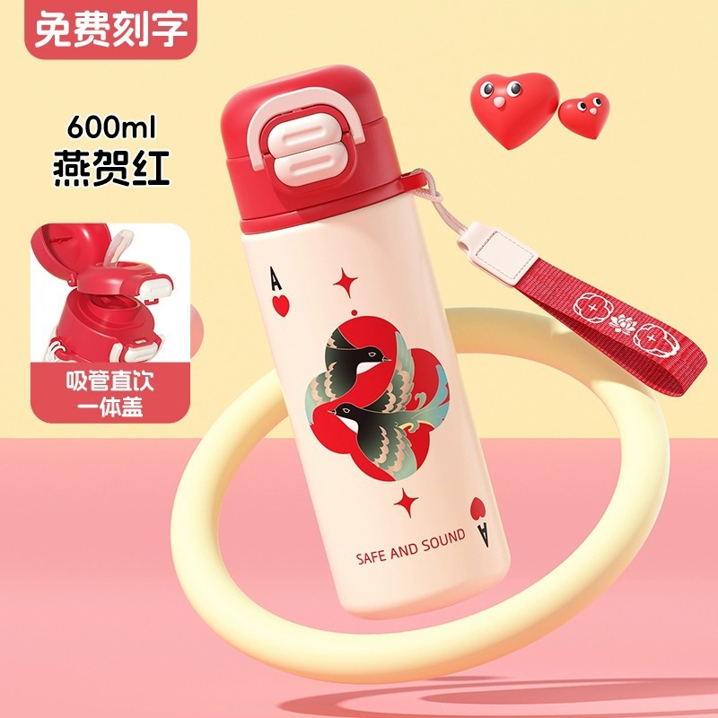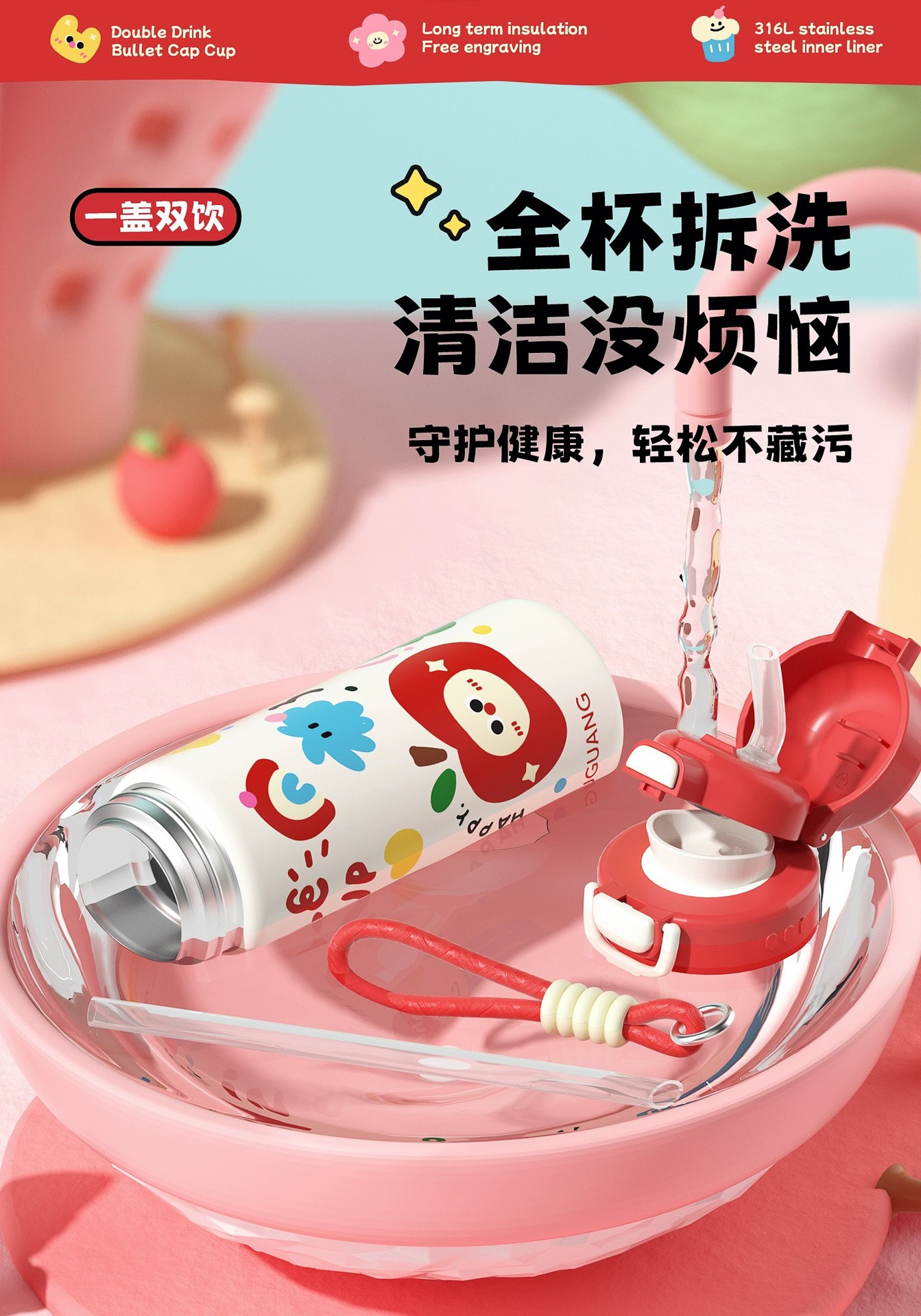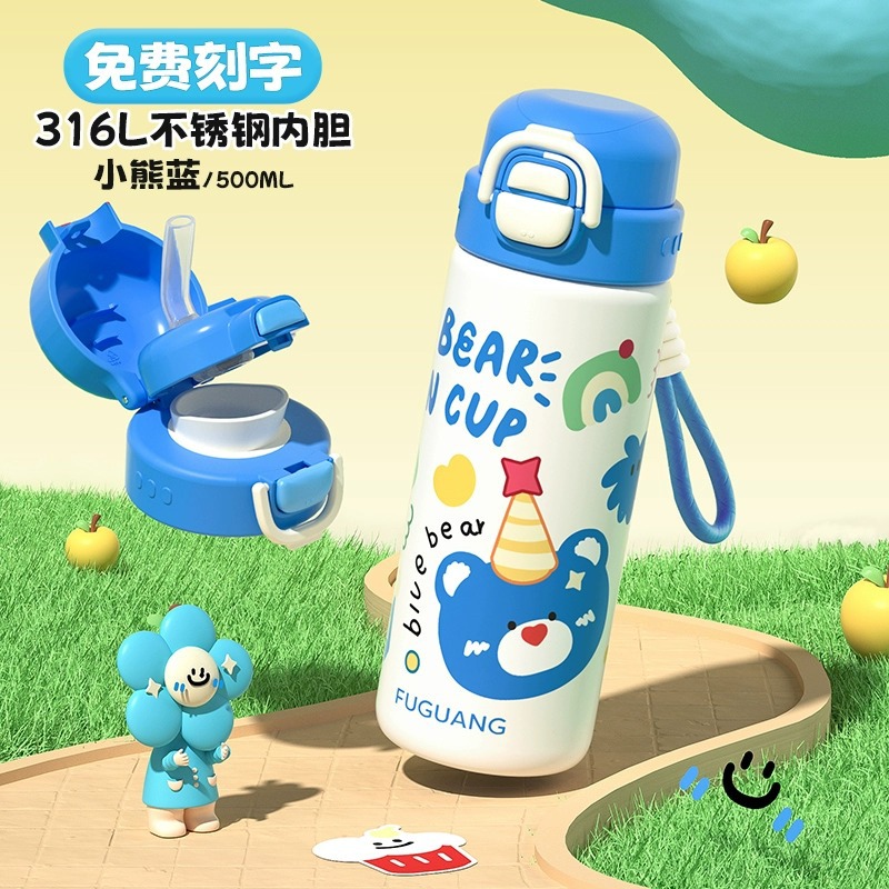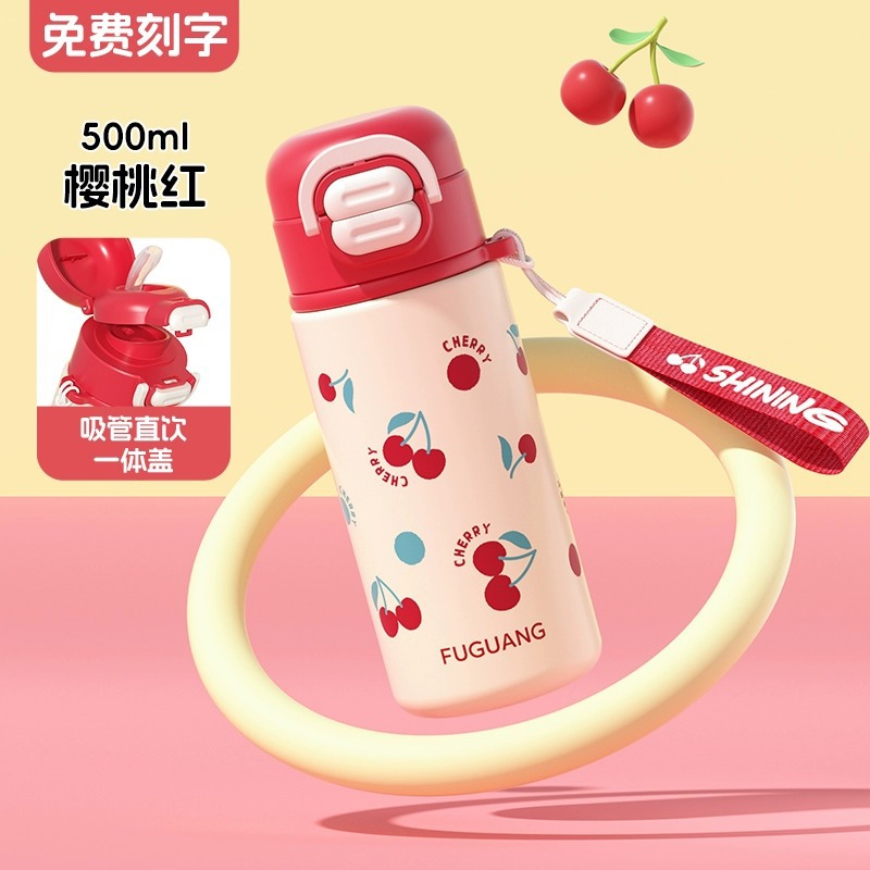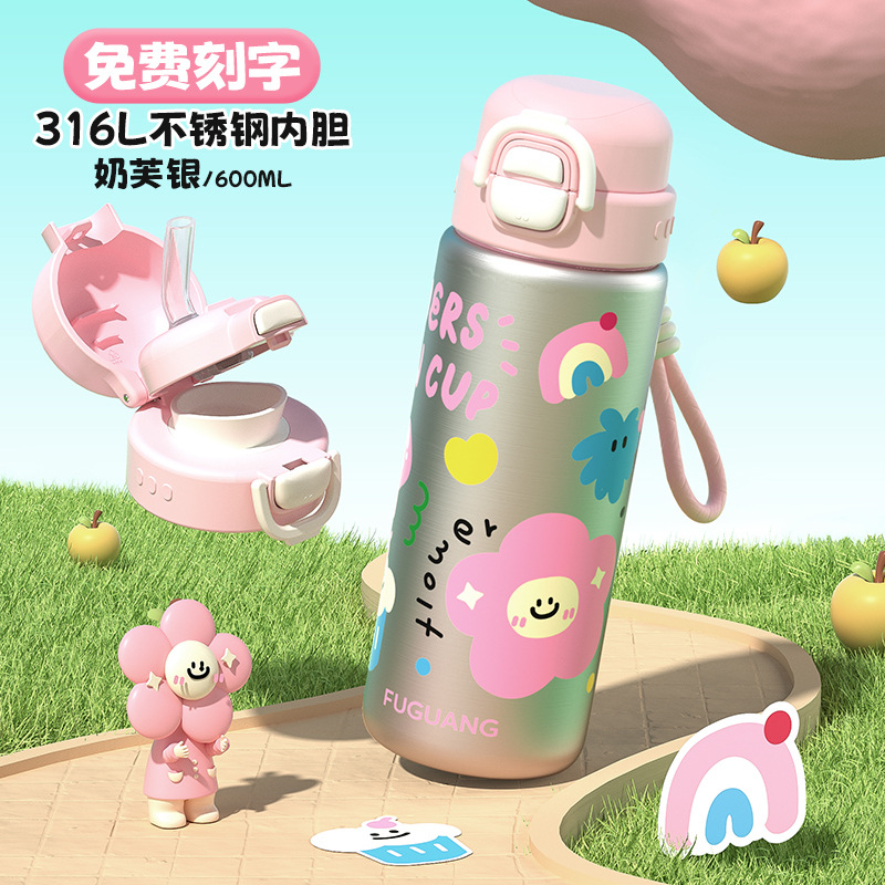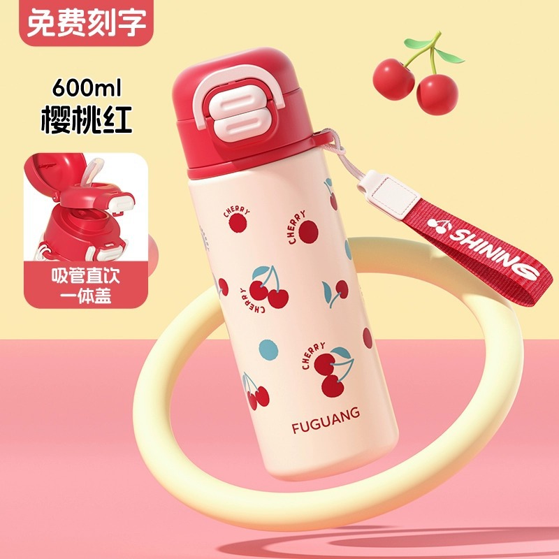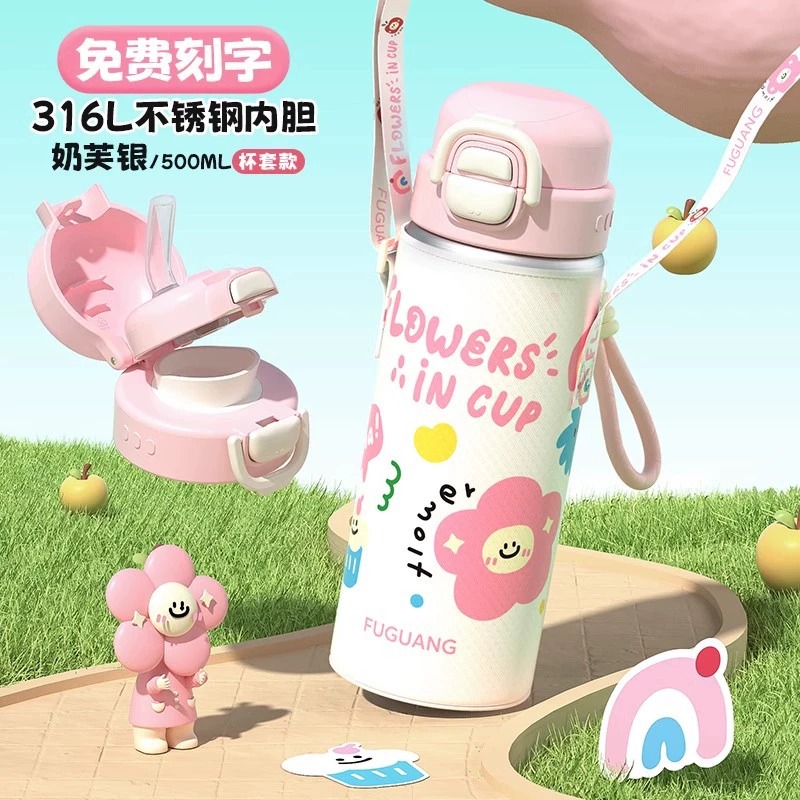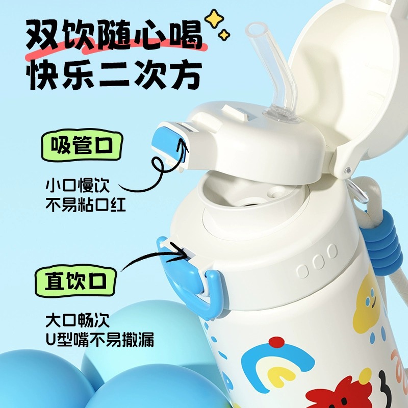 富光双饮保温杯316L不锈钢杯子男女学生专用户外便携提绳水杯吸管