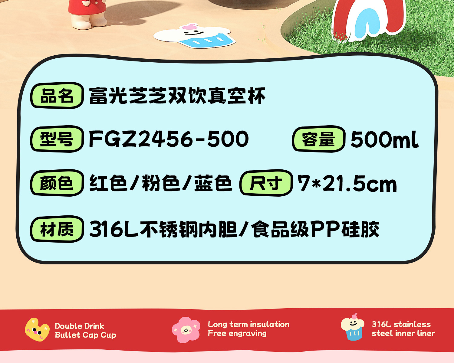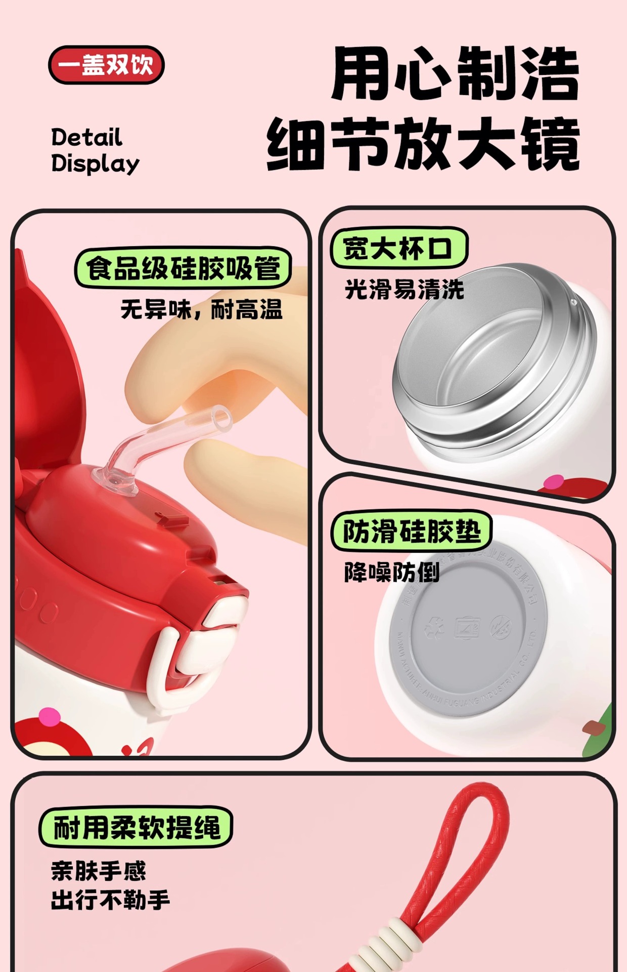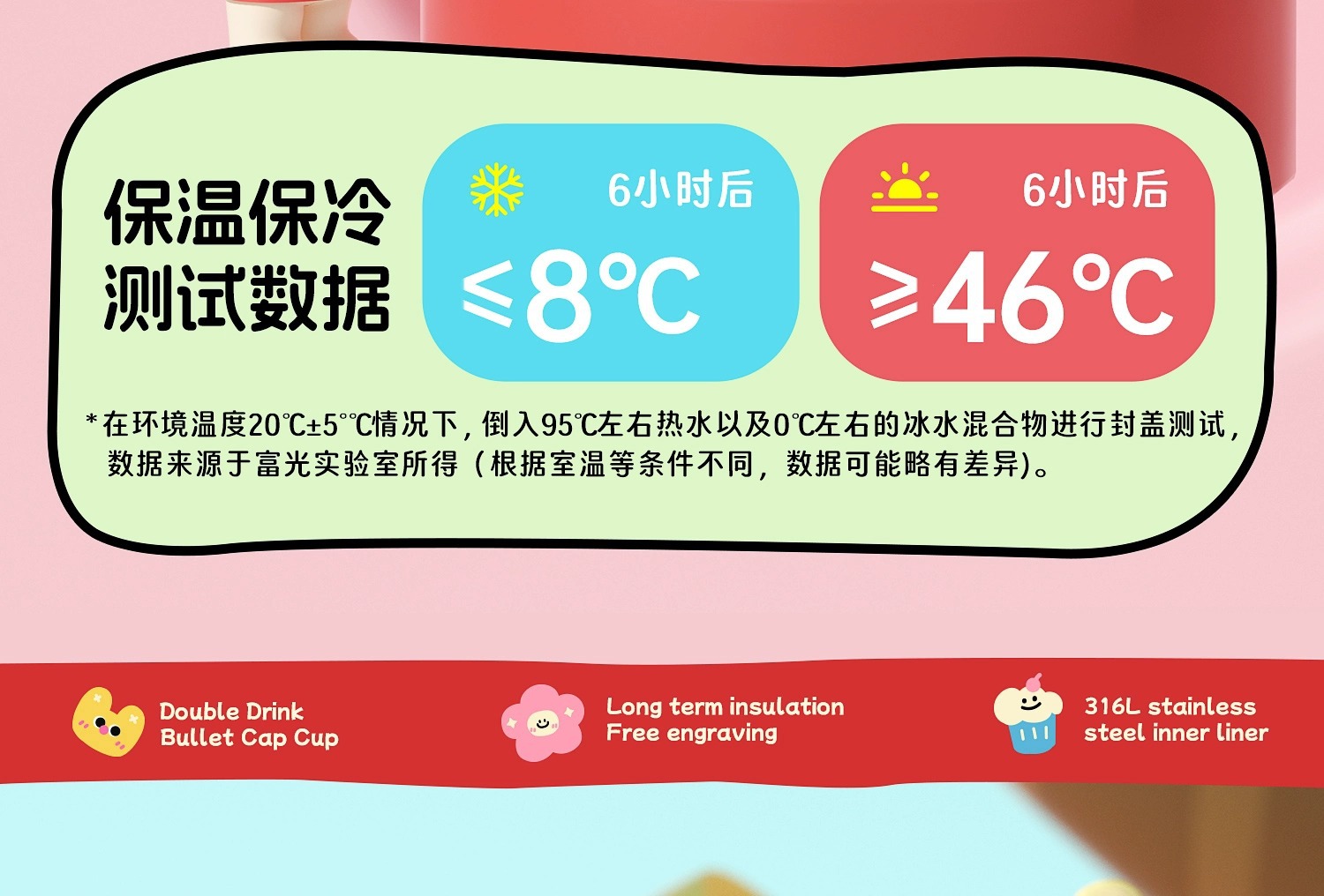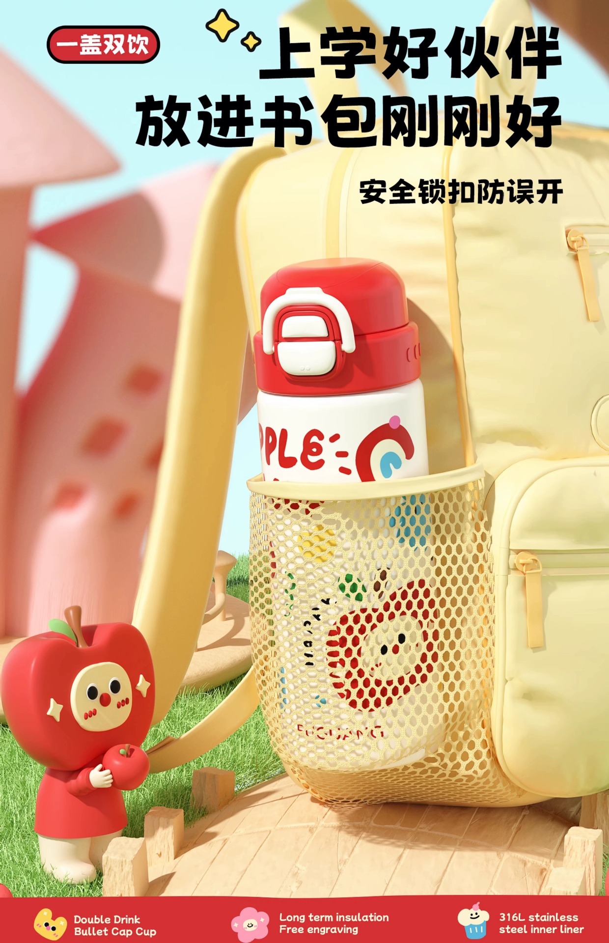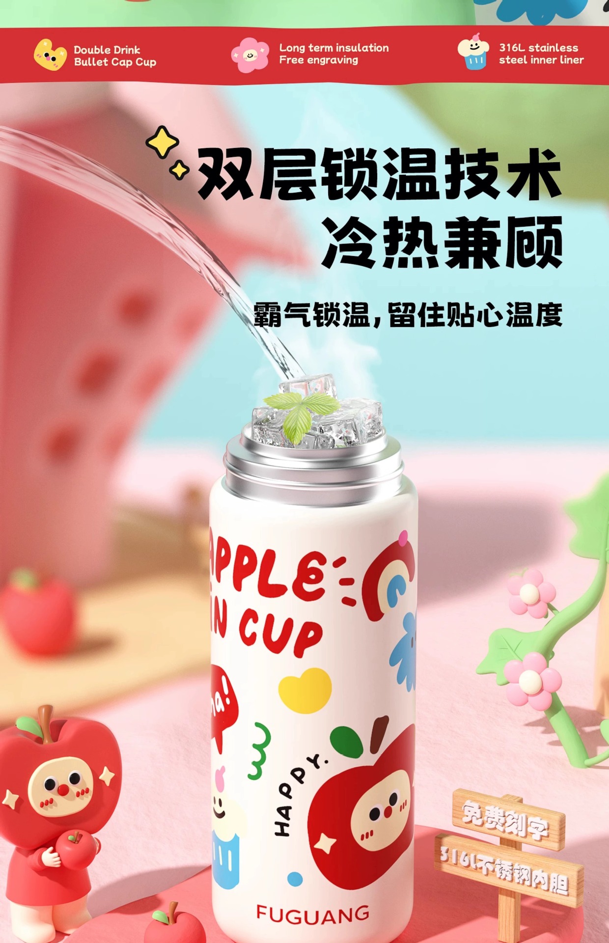 富光双饮保温杯316L不锈钢杯子男女学生专用户外便携提绳水杯吸管